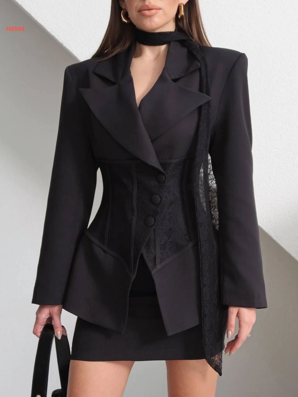 طقم تنورة قصير وبليزر بدانتيل