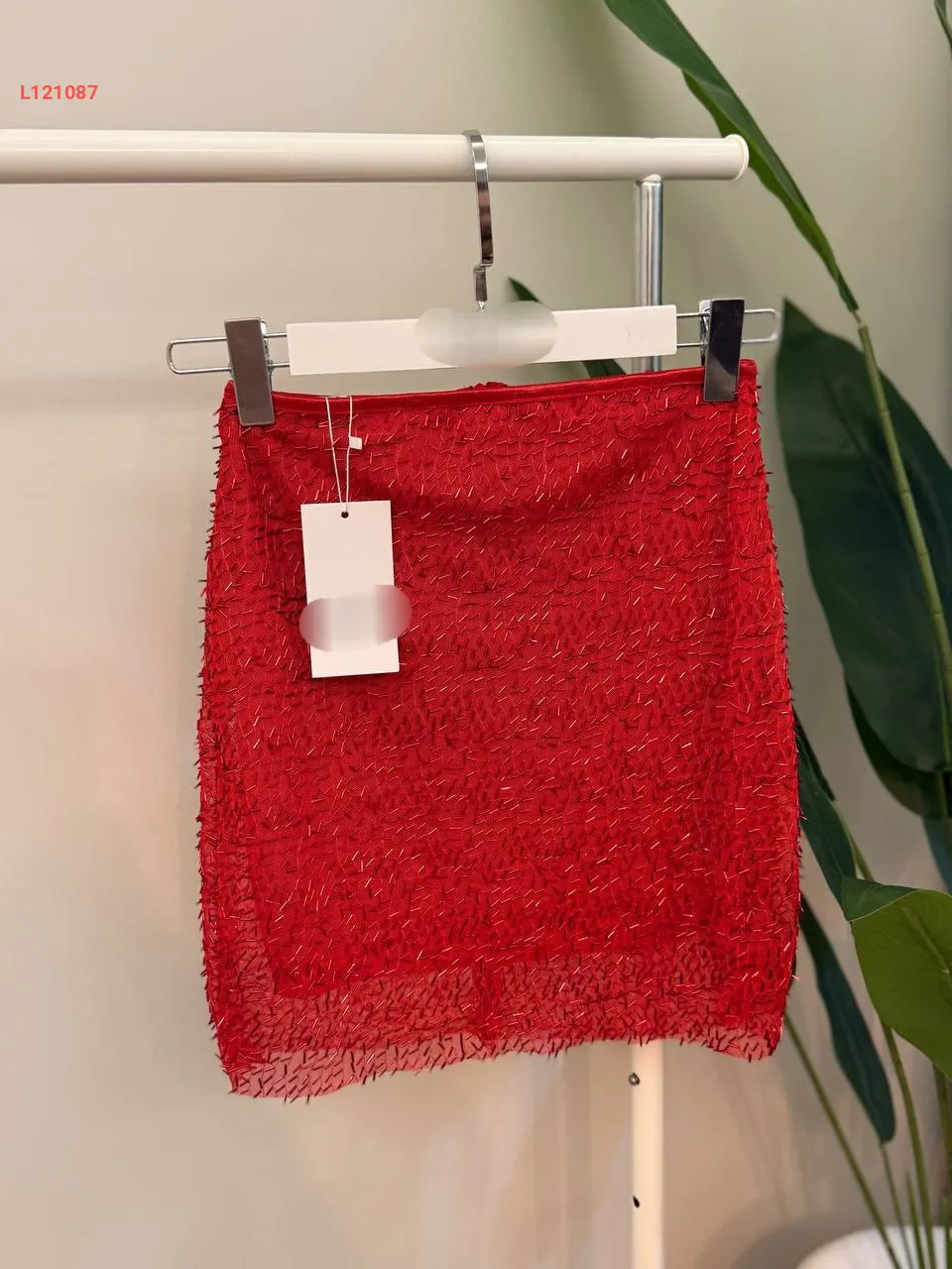 تنورة قصيرة بتفاصيل تطريز مرصعة