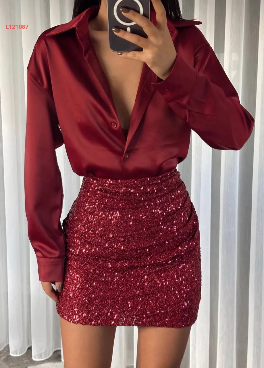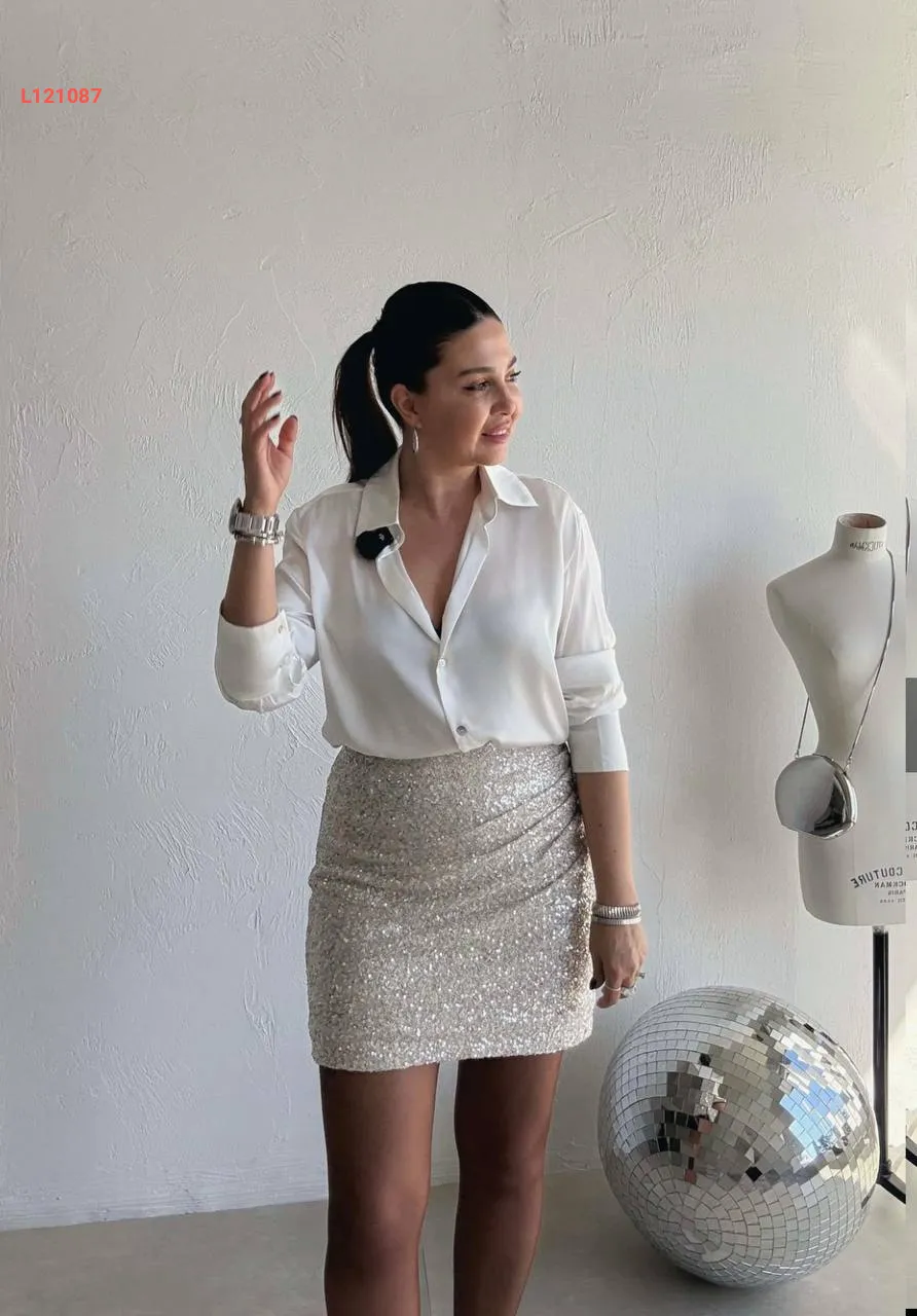 تنورة قصيرة باييت مجمعة