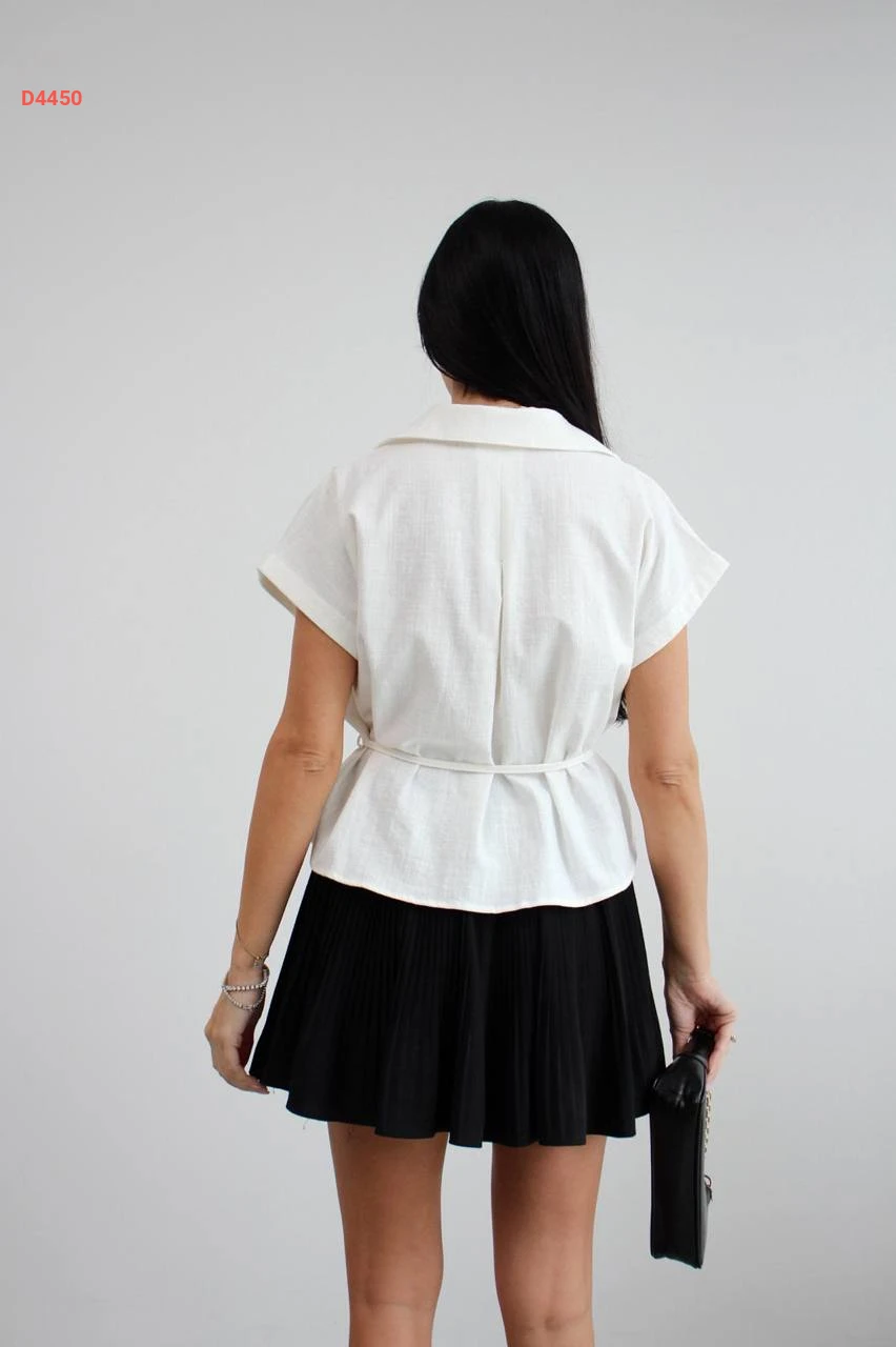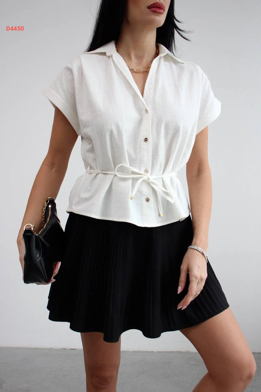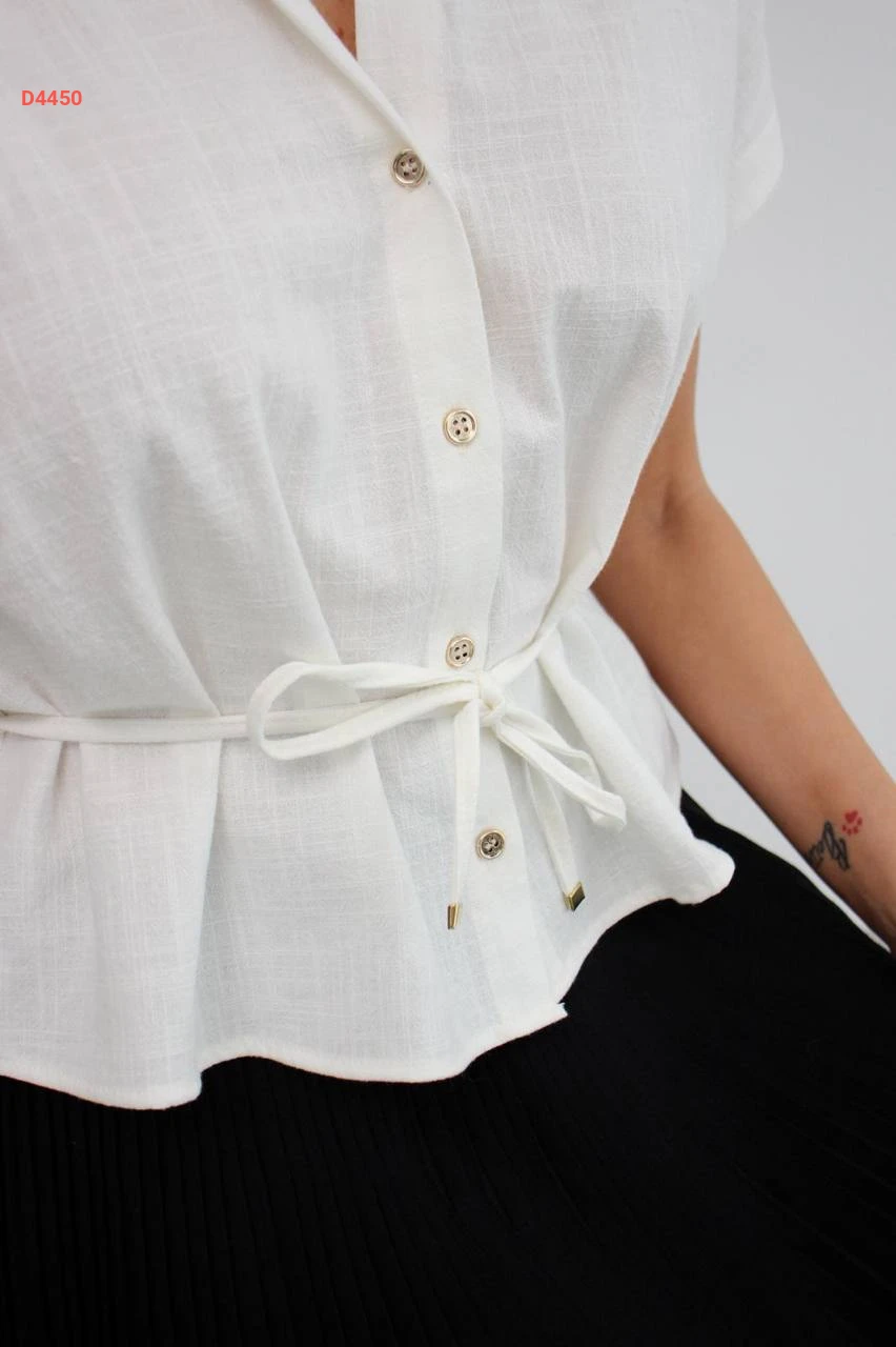 قميص نصف كم قصير بأزرار سادة مع ربطة خصر