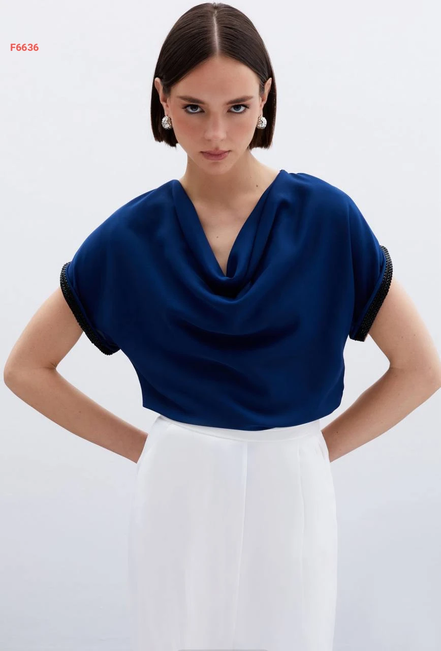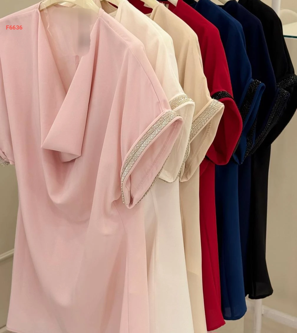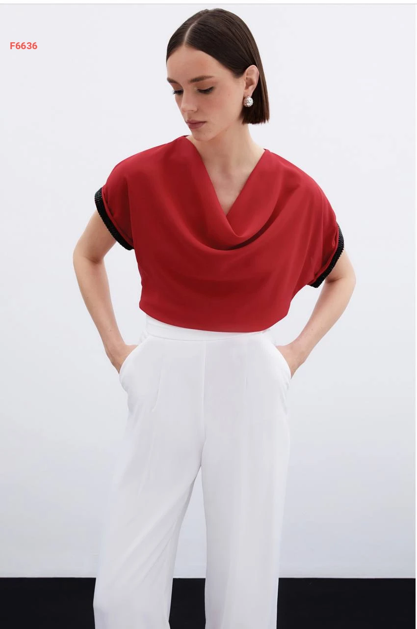 بلوزة بأكمام قصيرة مطرزة