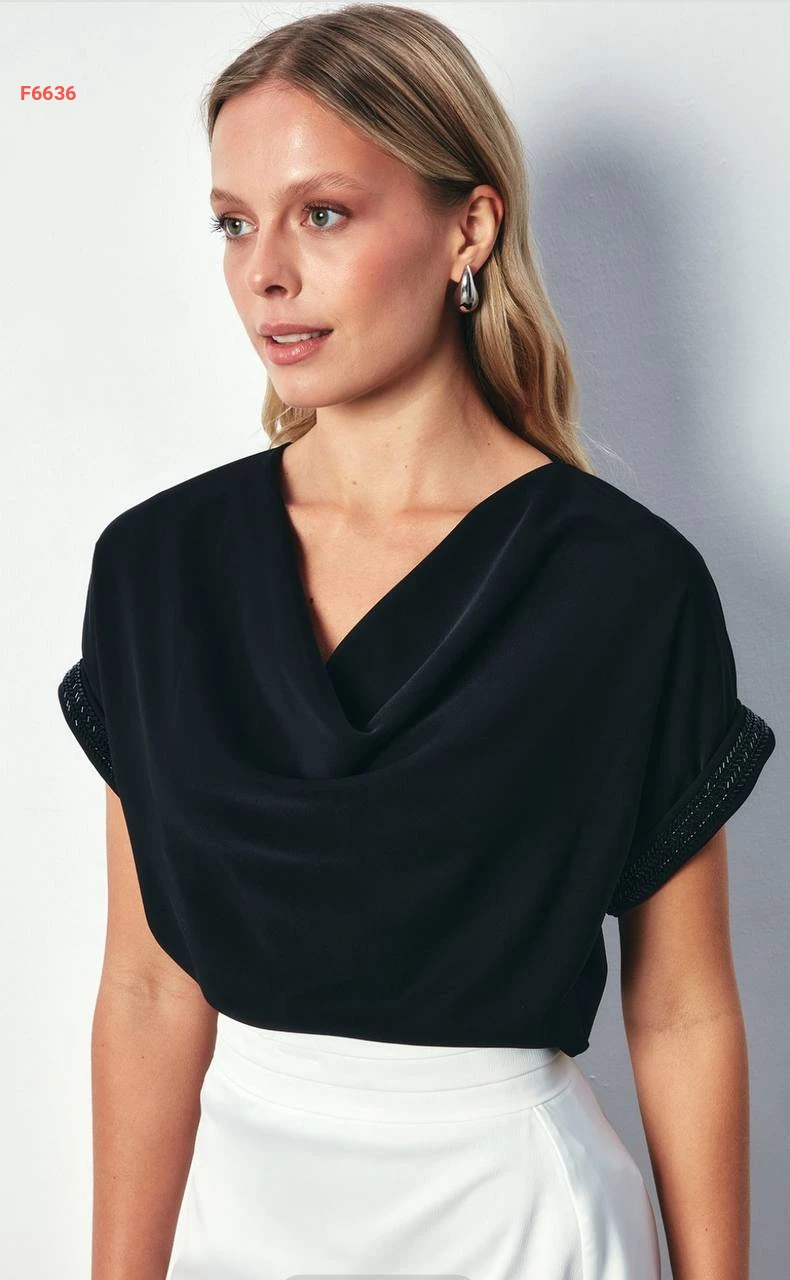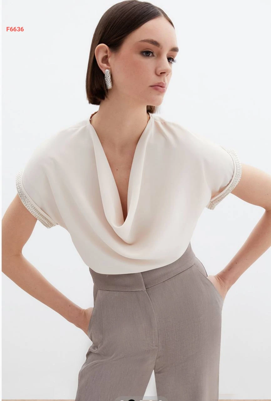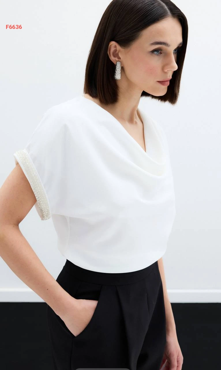 بلوزة بأكمام قصيرة مطرزة