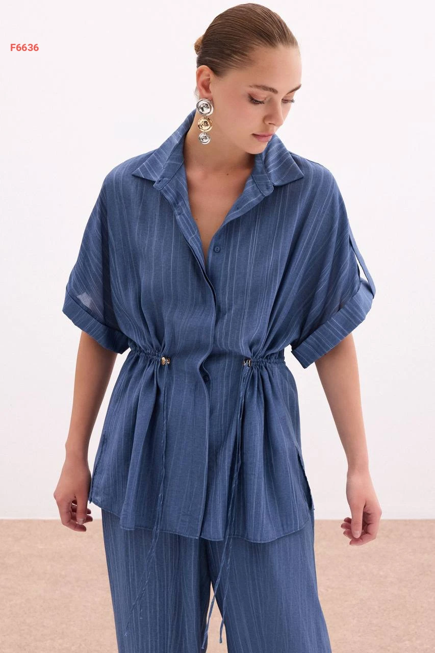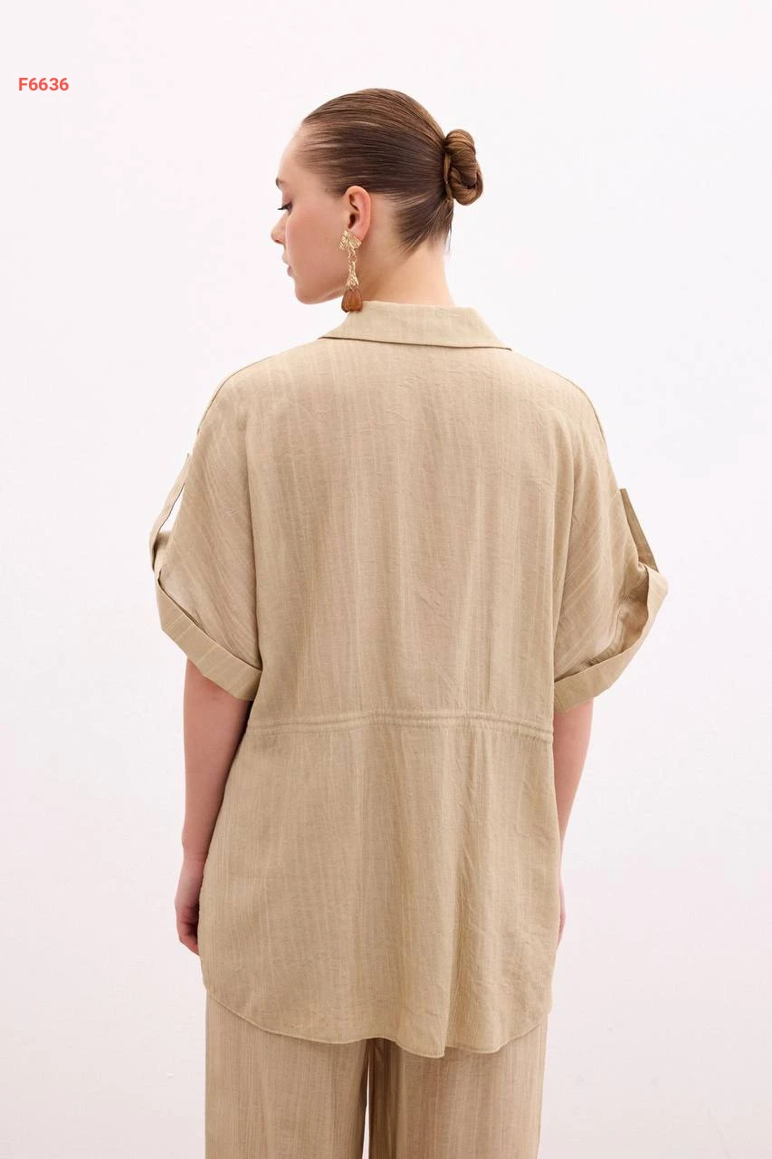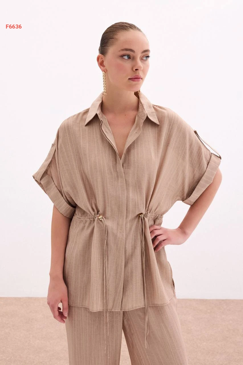 قميص زم عالخصر بأكمام قصيرة مطوية