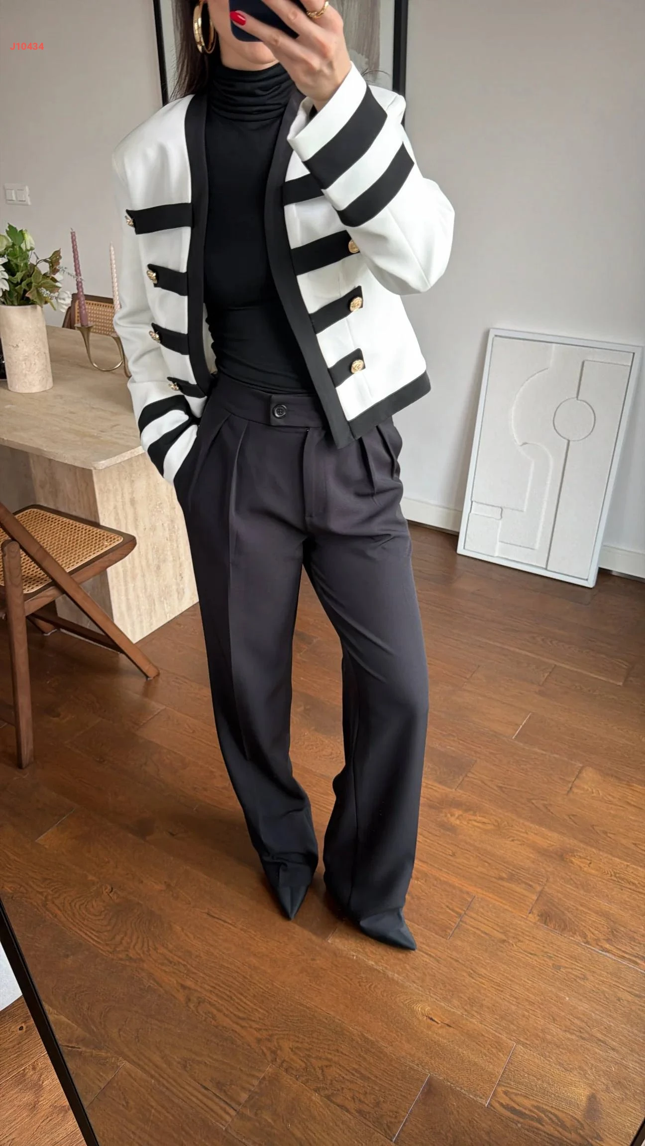 جاكيت قصير مخطط بأزرار دهبي