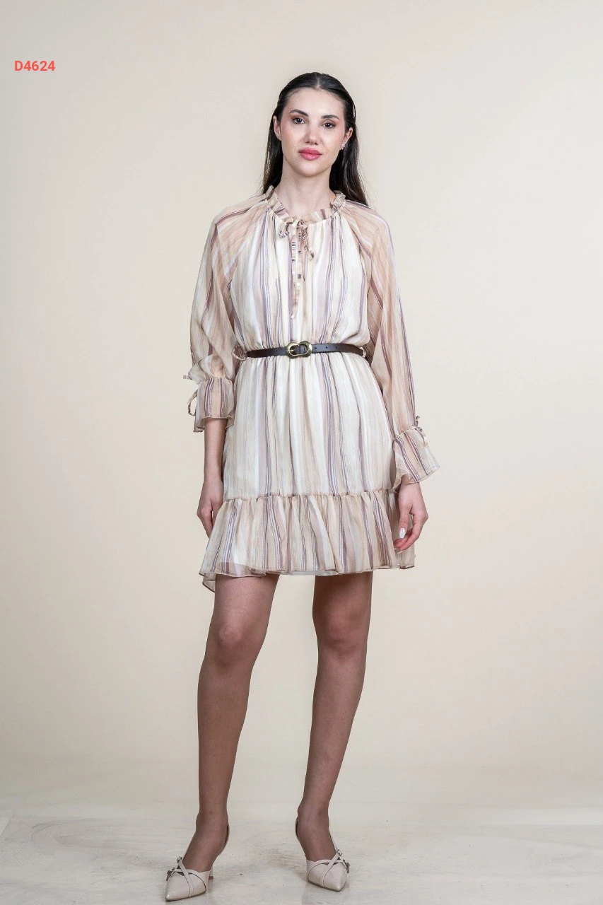 فستان قصير شفاف مبطن مع ربطات
