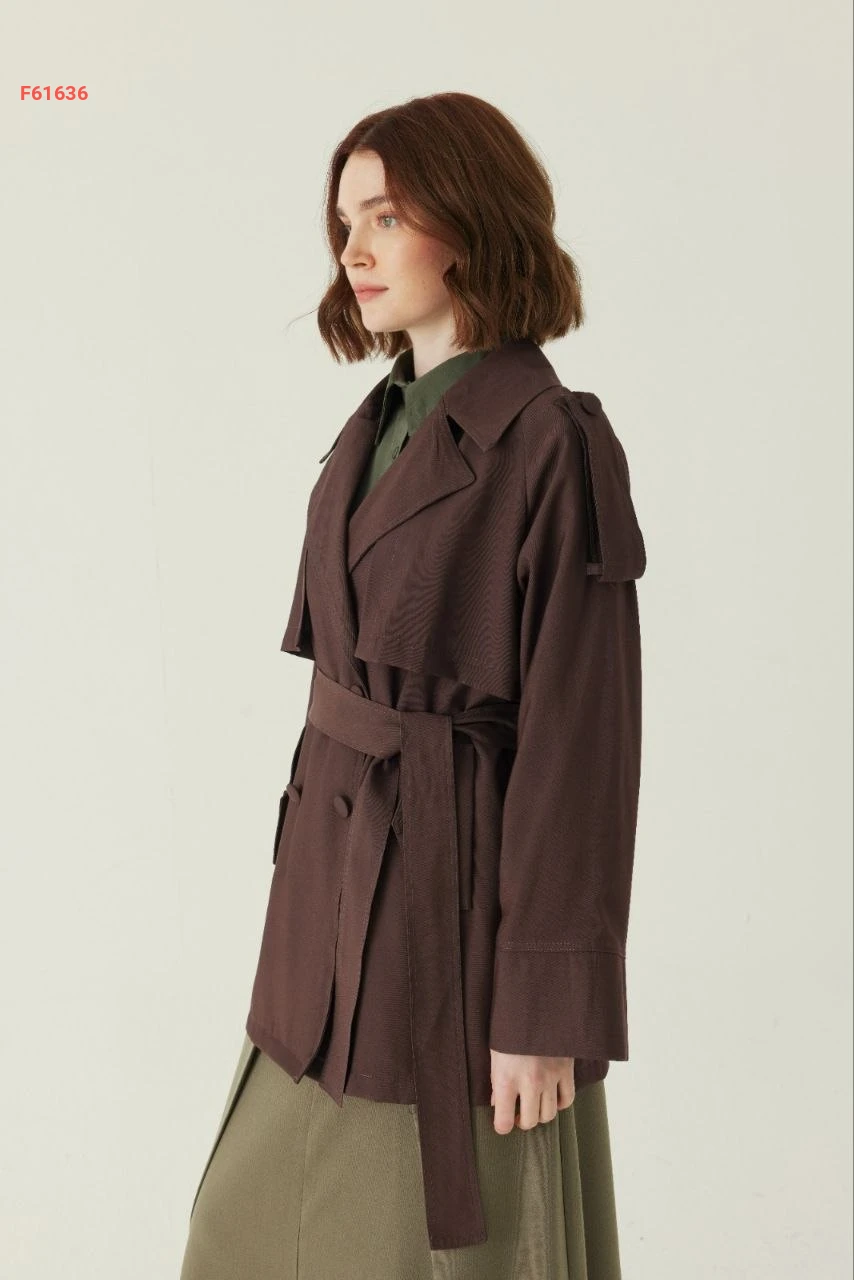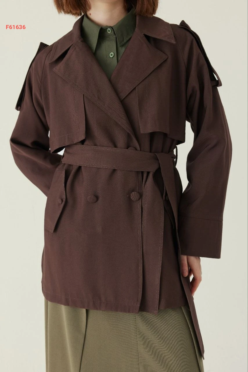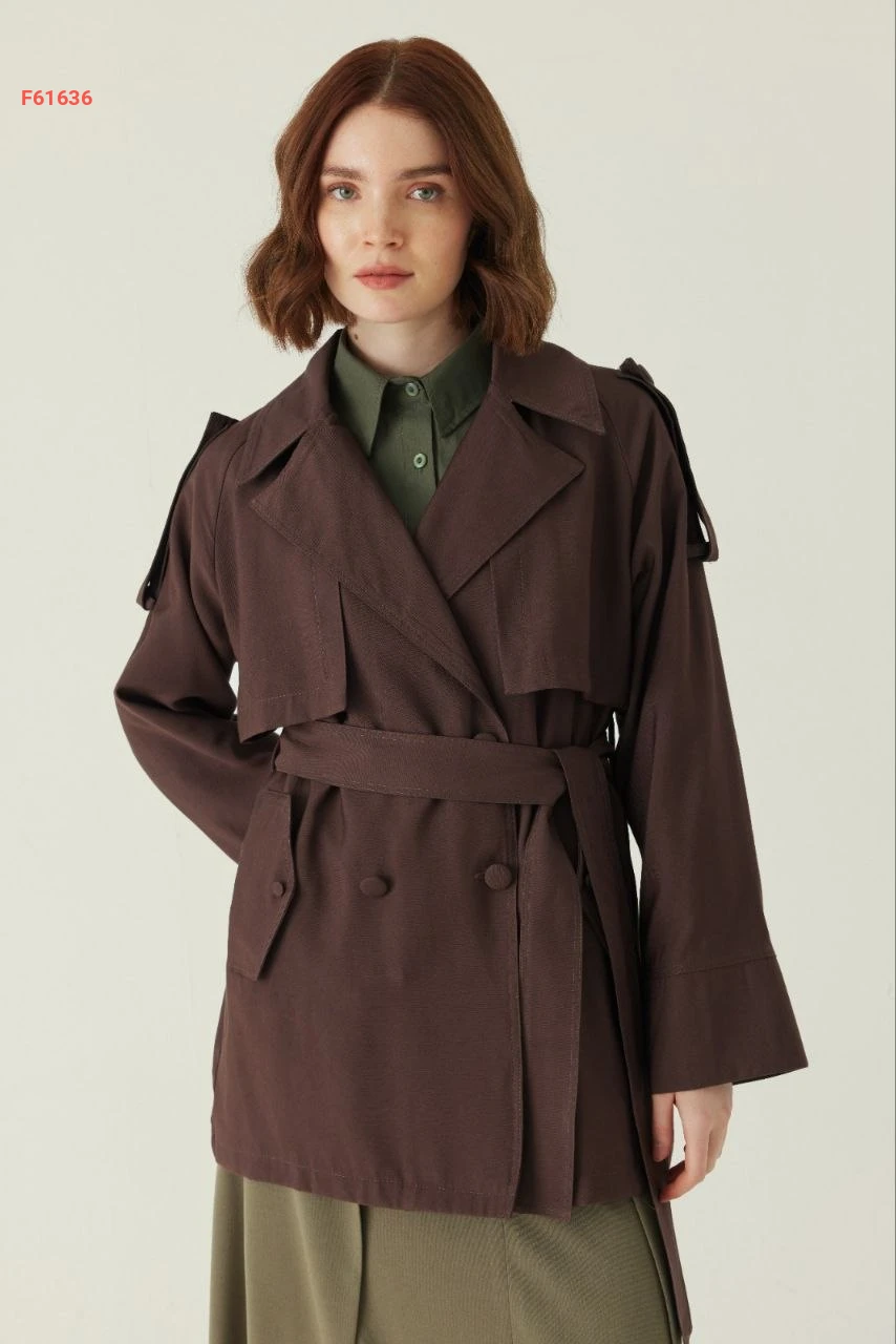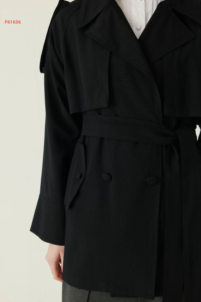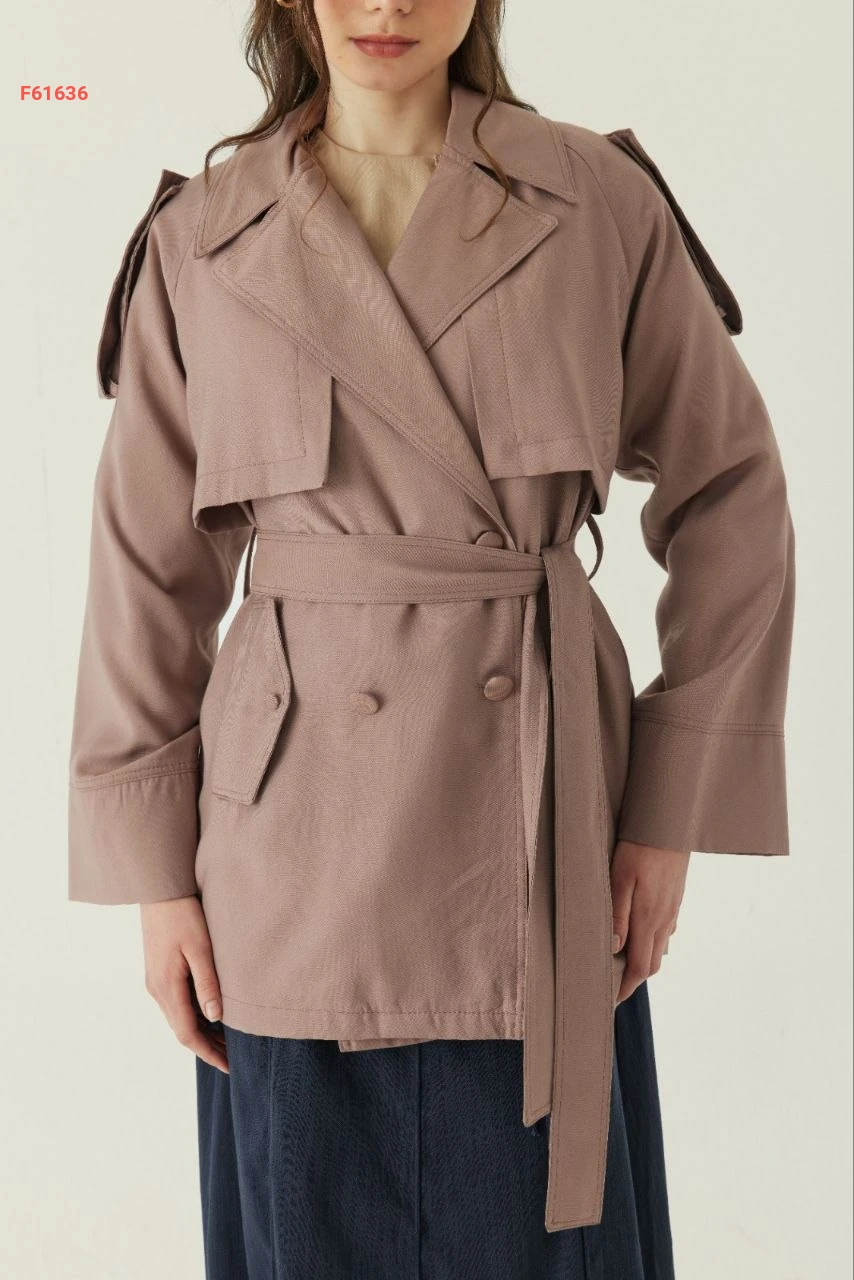 ترانشكوت قصير بأزرار مزدوجة مع يب وحزام