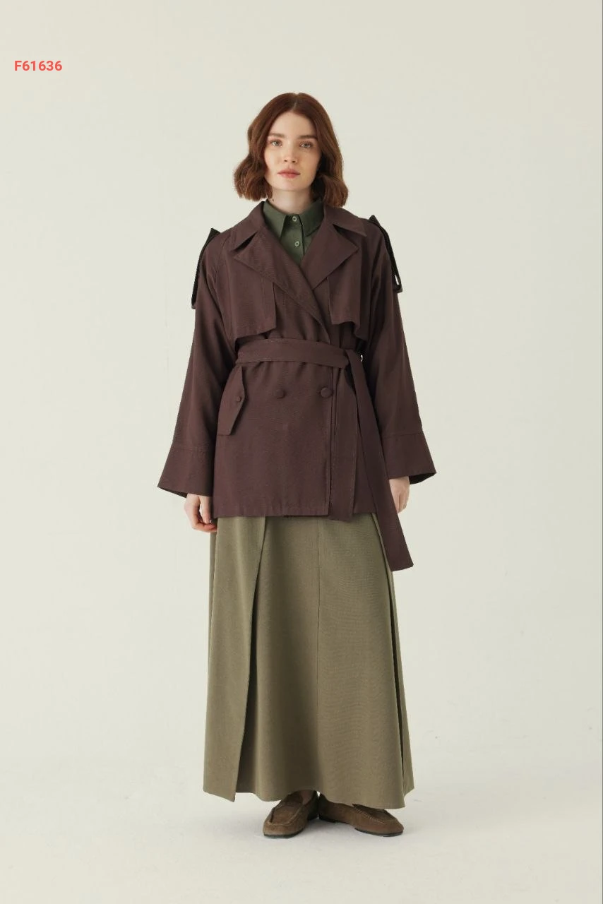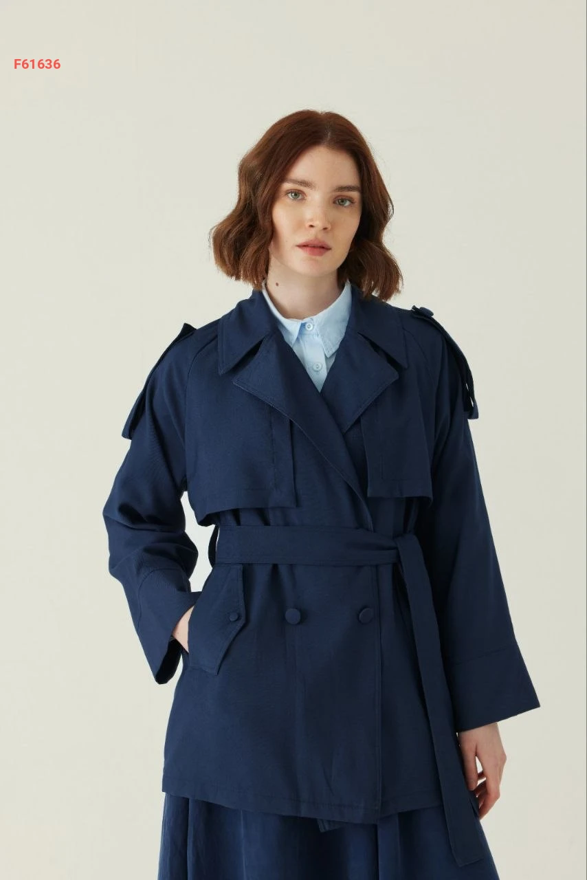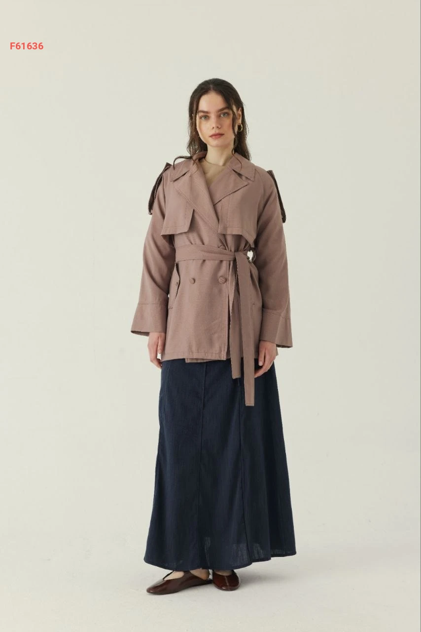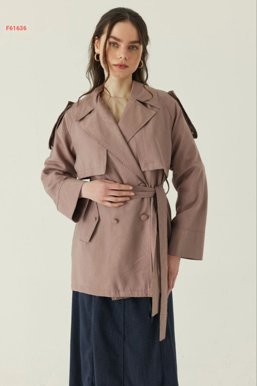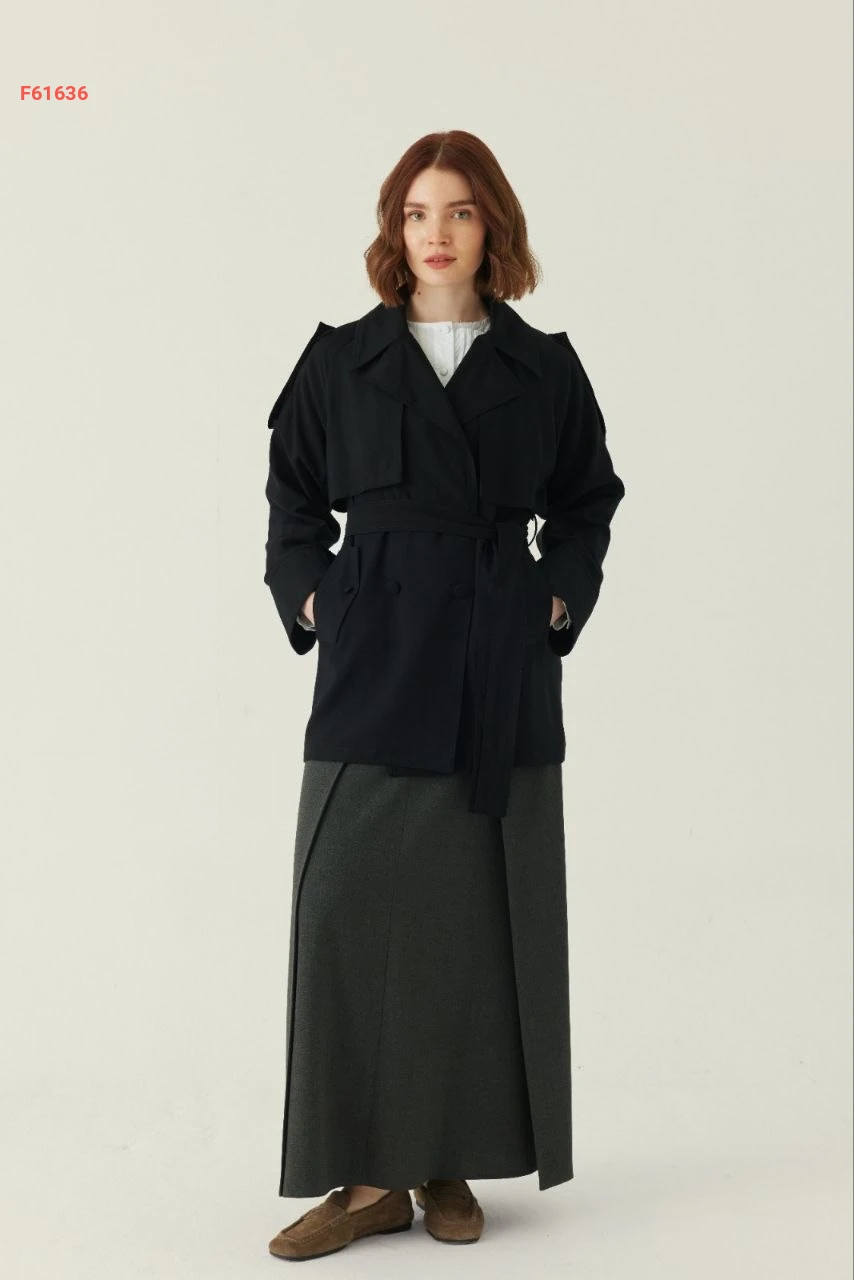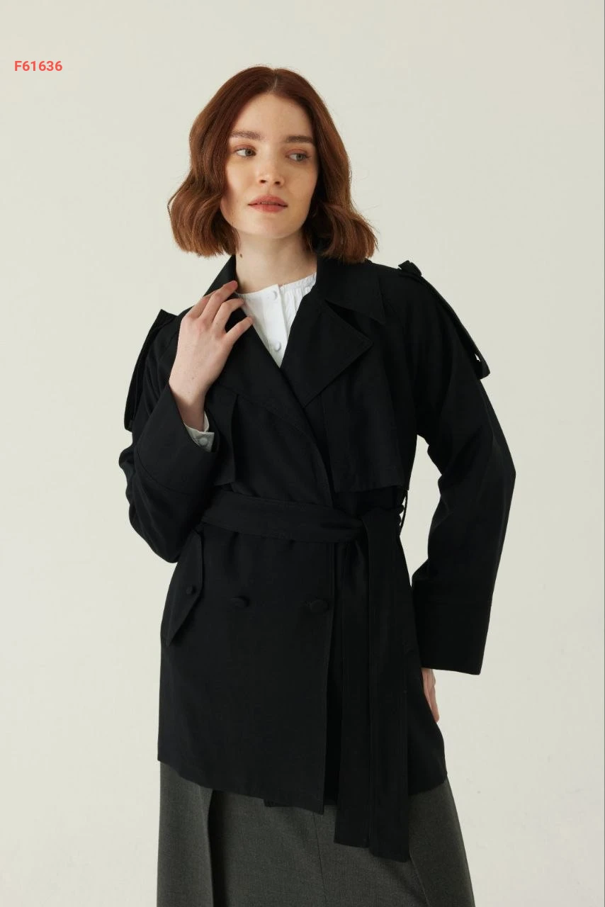 ترانشكوت قصير بأزرار مزدوجة مع يب وحزام