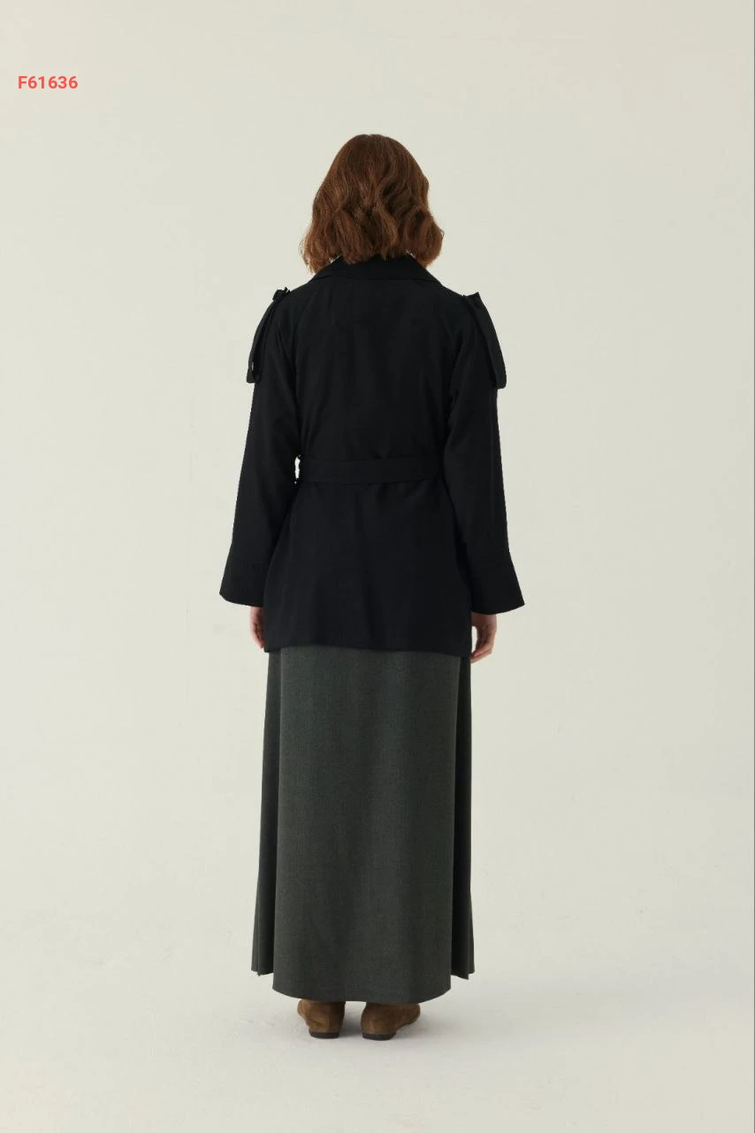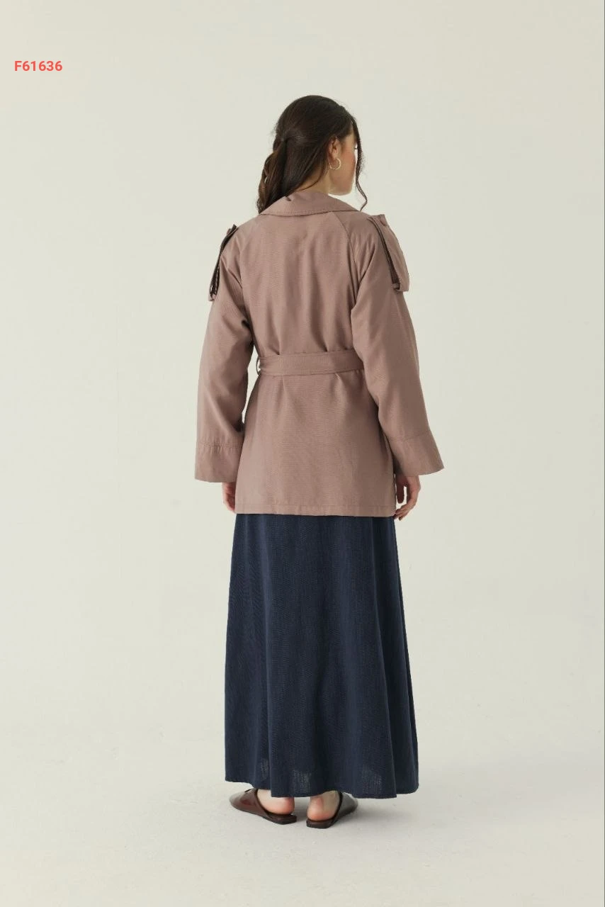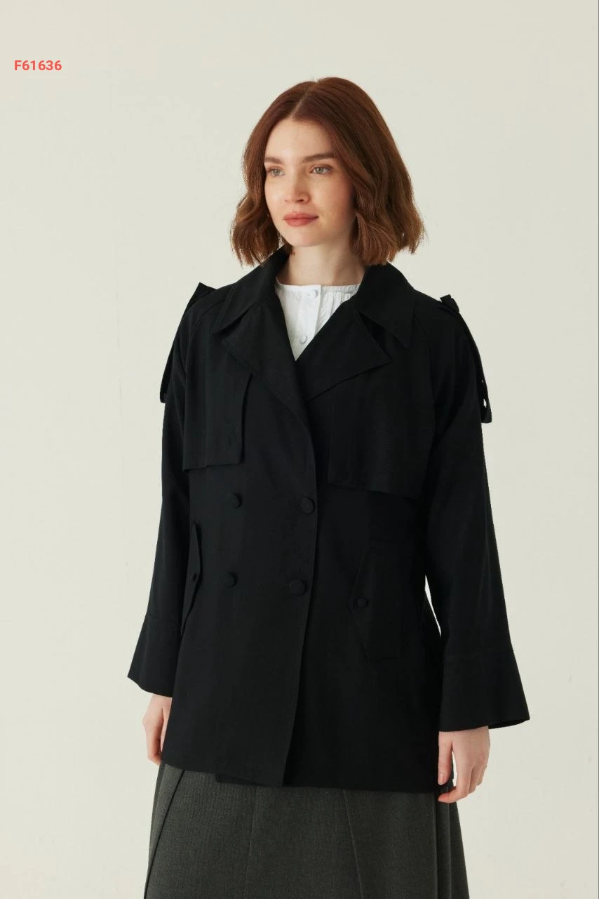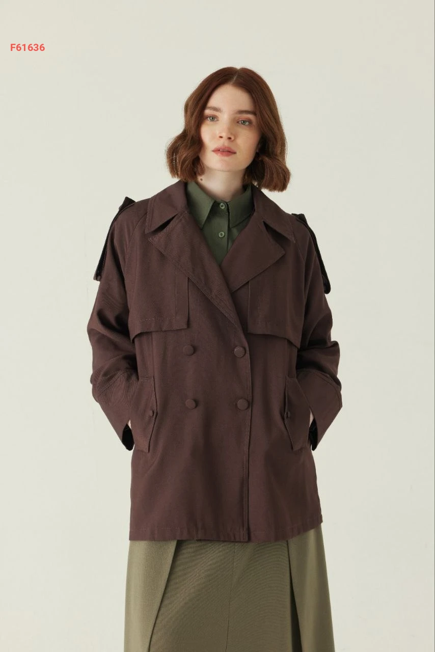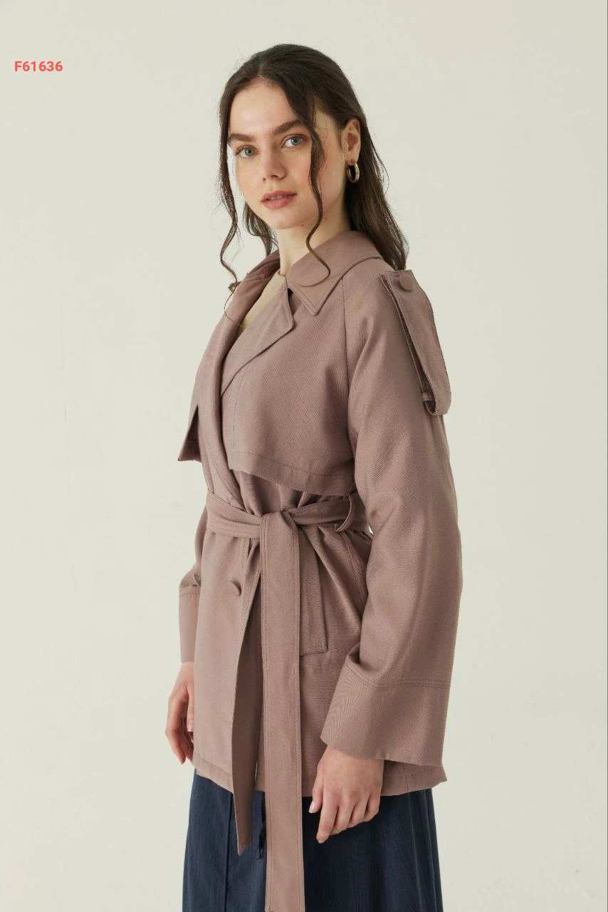 ترانشكوت قصير بأزرار مزدوجة مع يب وحزام