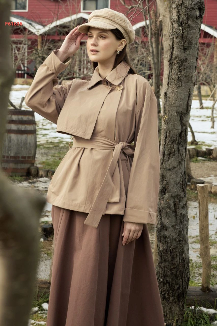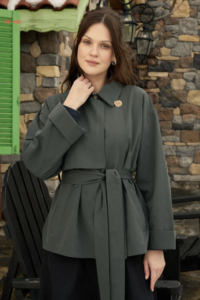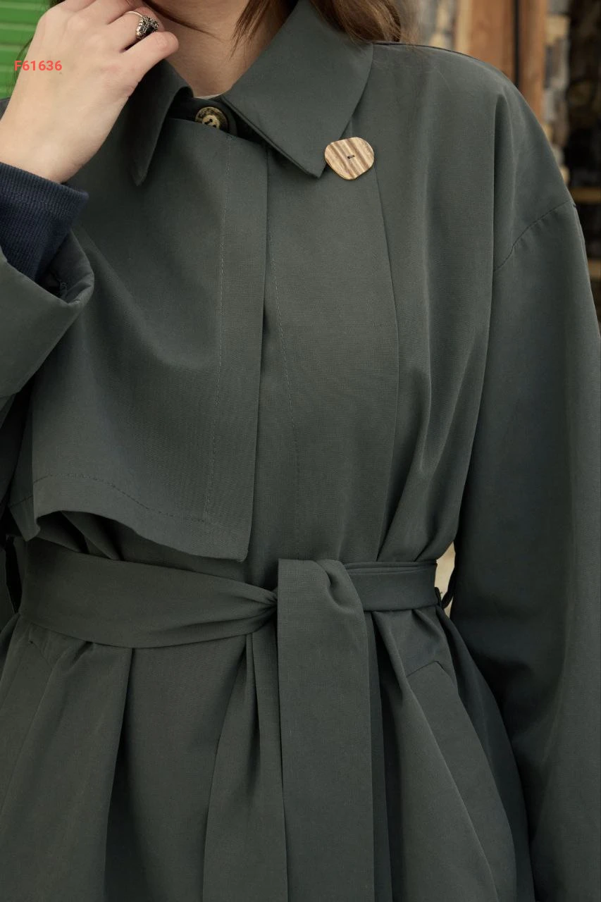 ترانشكوت قصير ، بأزرار جانبية مع حزام