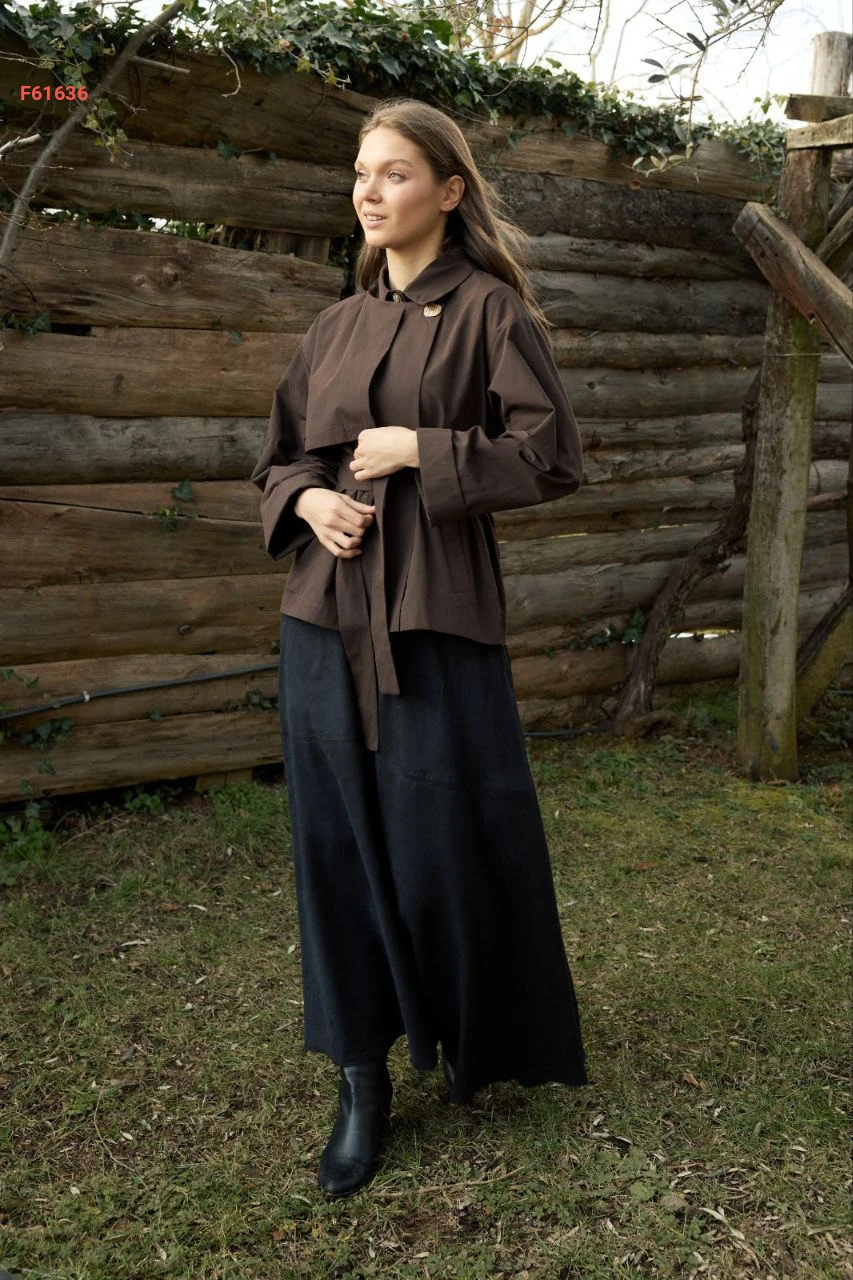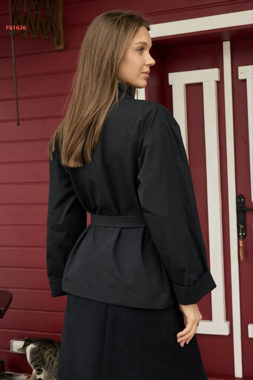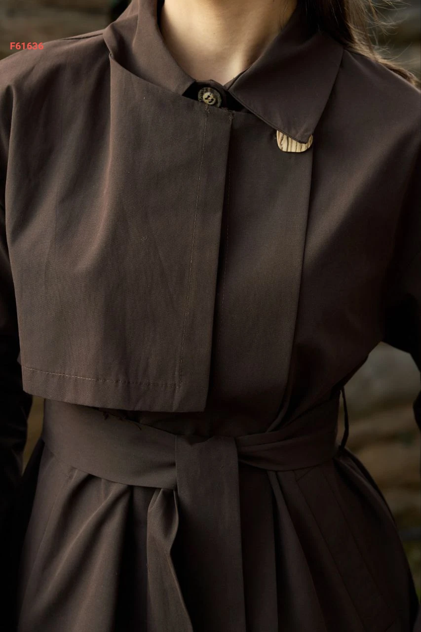 ترانشكوت قصير ، بأزرار جانبية مع حزام