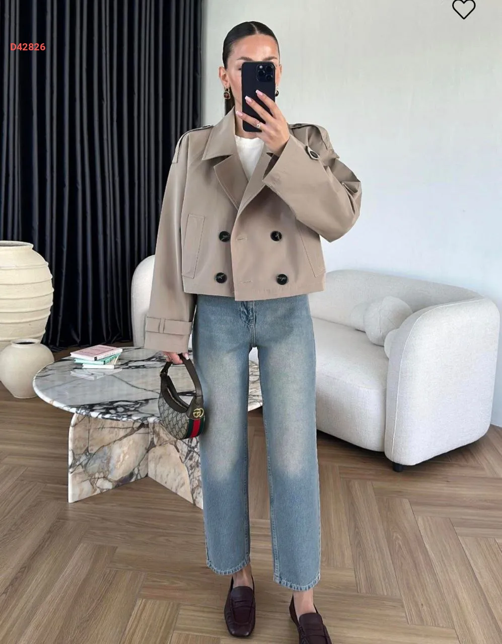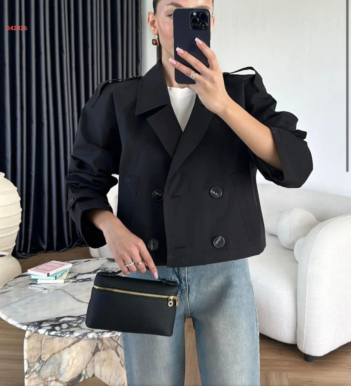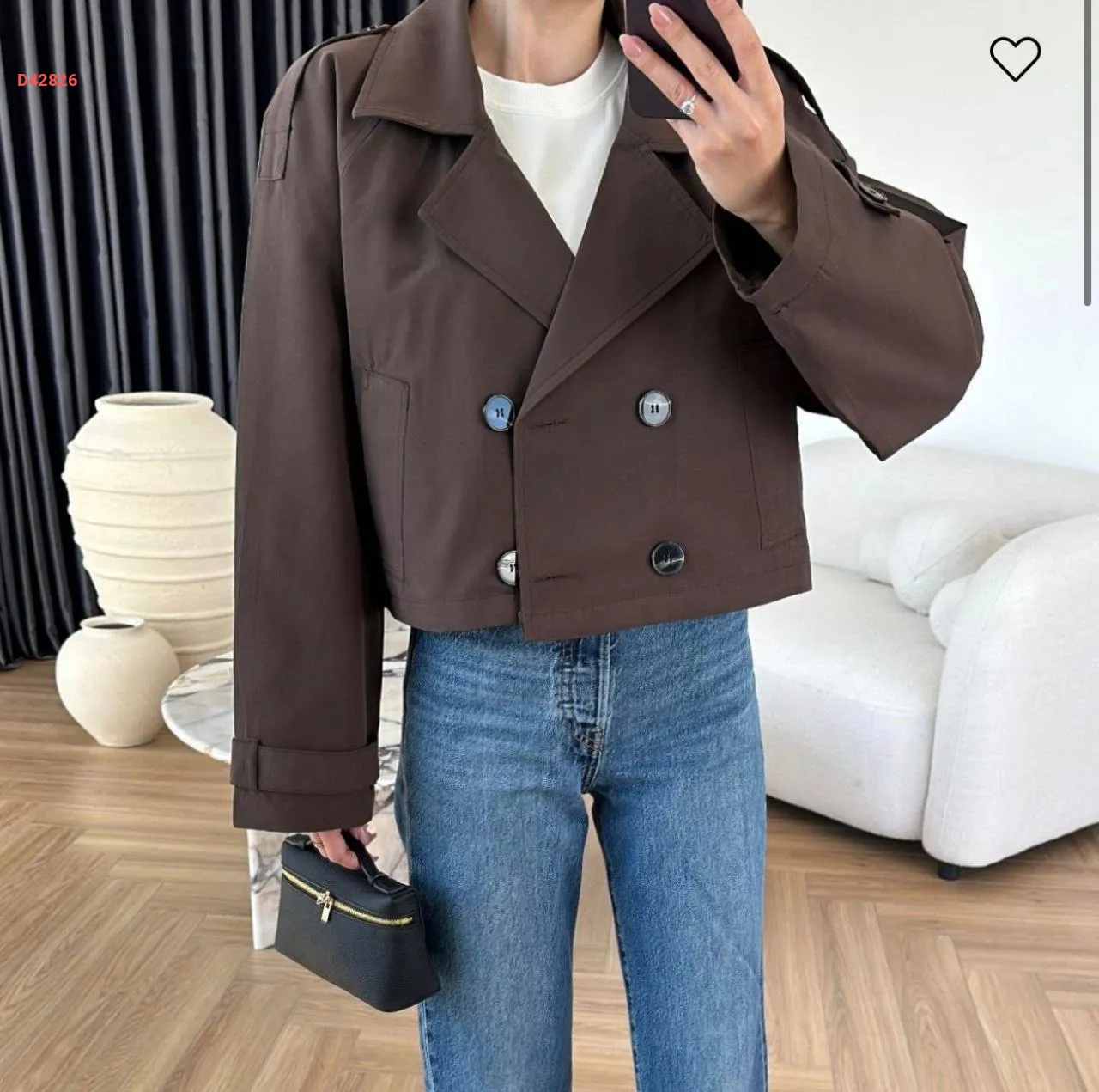 ترنشكوت قصير، مزدوج الصدر بأزرار، مع جيب