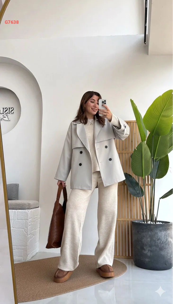 جاكيت تريكو مكلف جلد مع زنار...