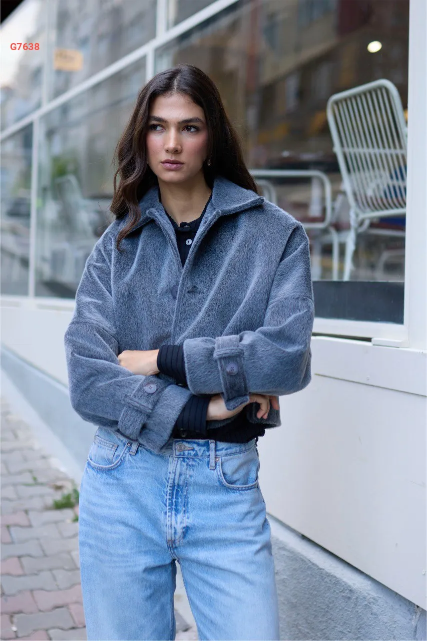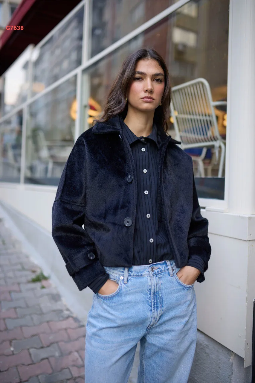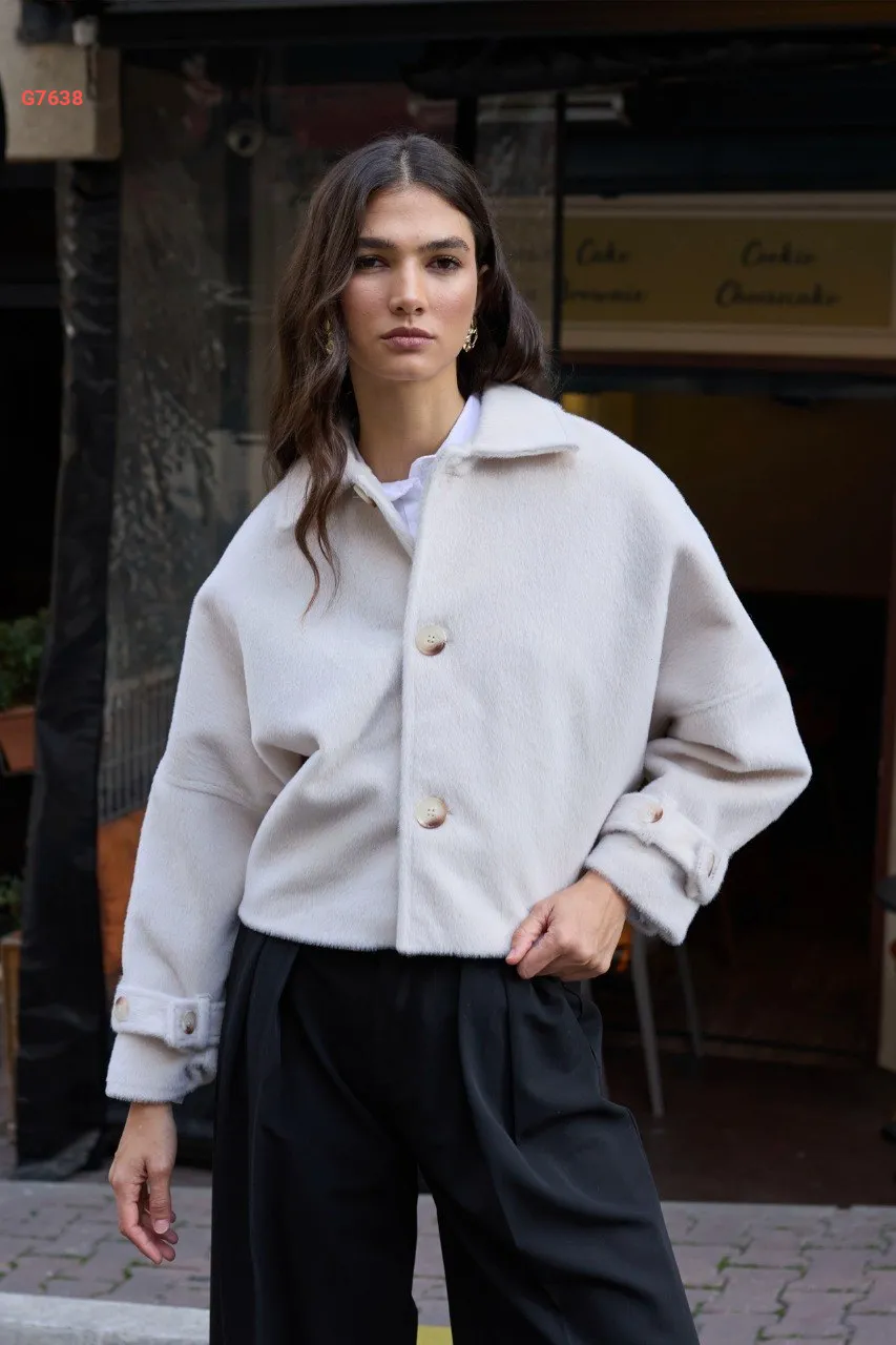جاكيت شتوي قصير بأزرار