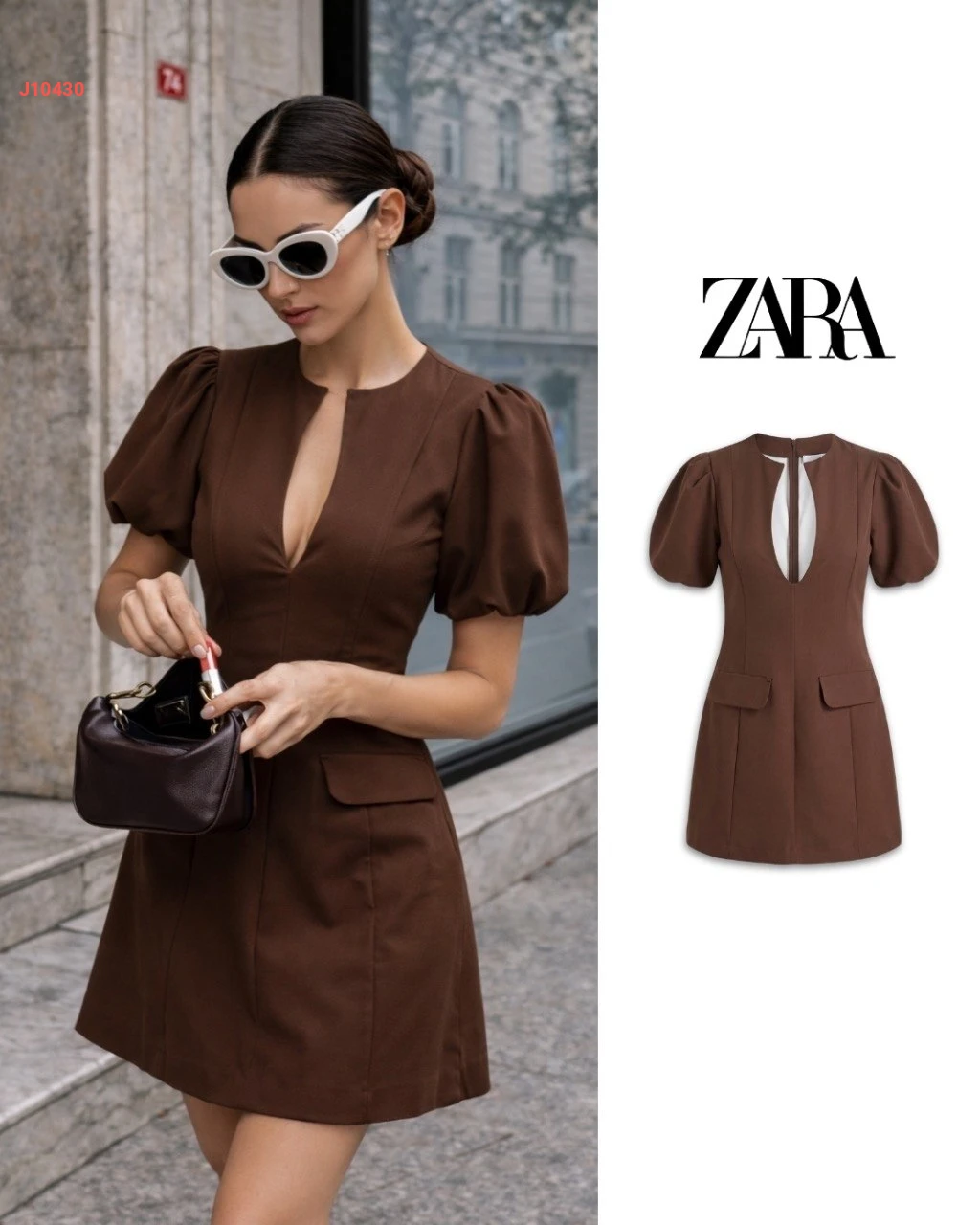 فستان قصير زارا بأكمام قصيرة