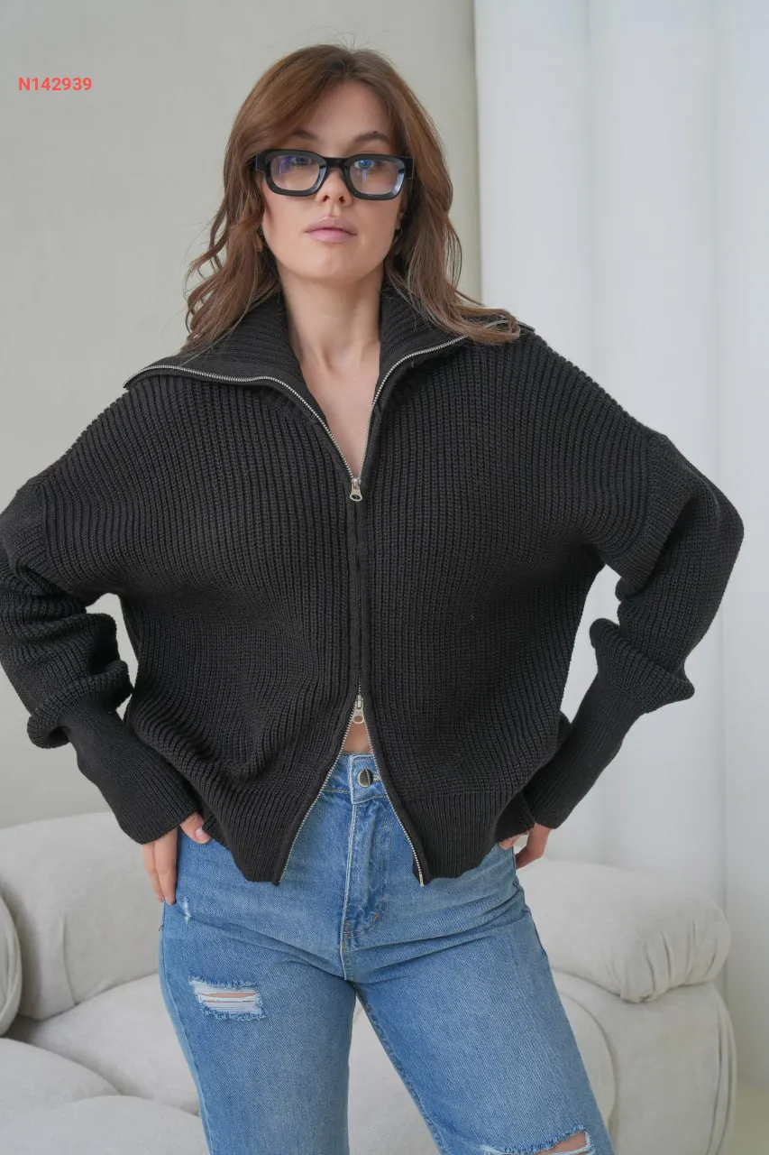 جاكيت صوف بسحاب قصير