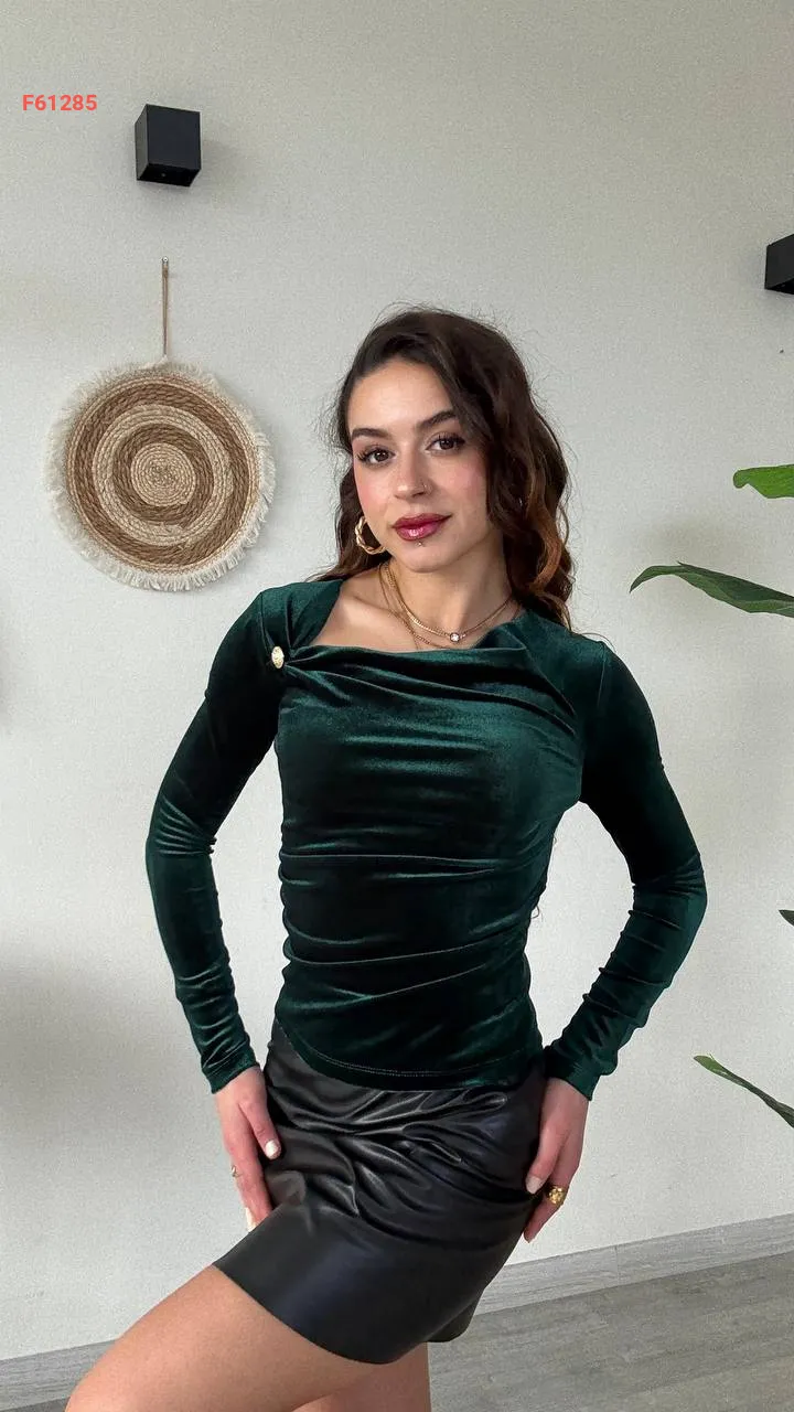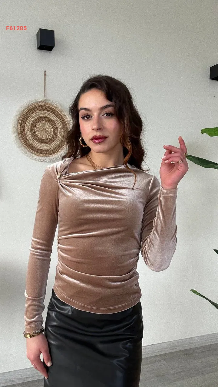 بلوزة مخمل مجمعة