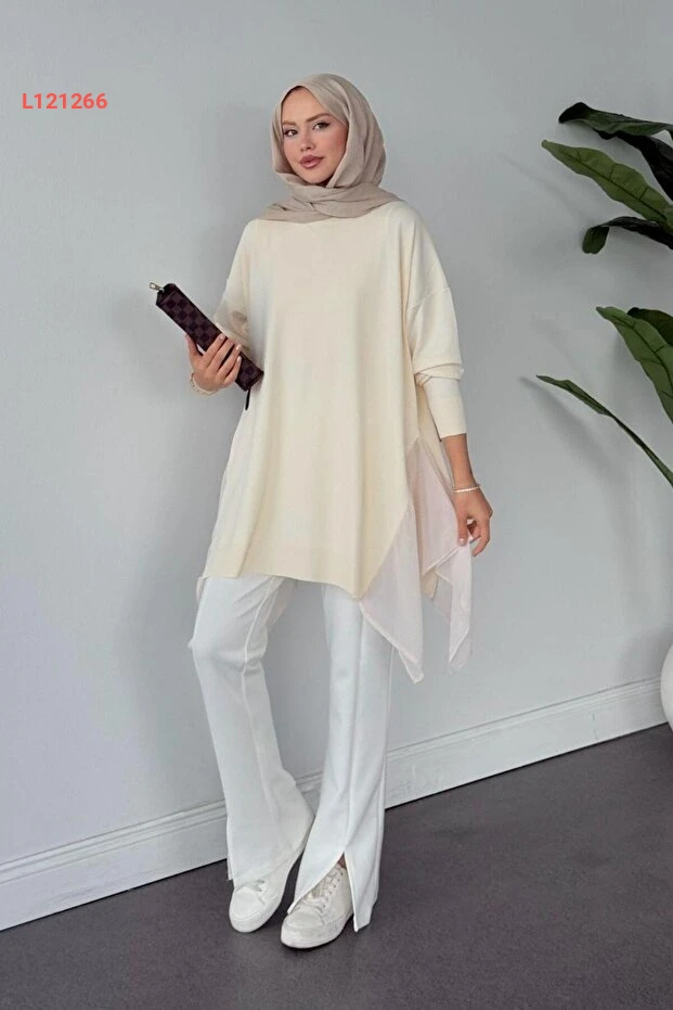تونك كريمي شيفون جانبي ميرسيريز من شولة مودا