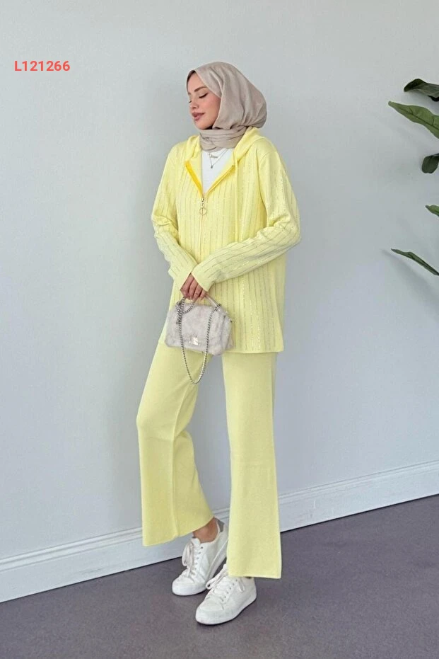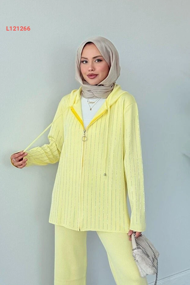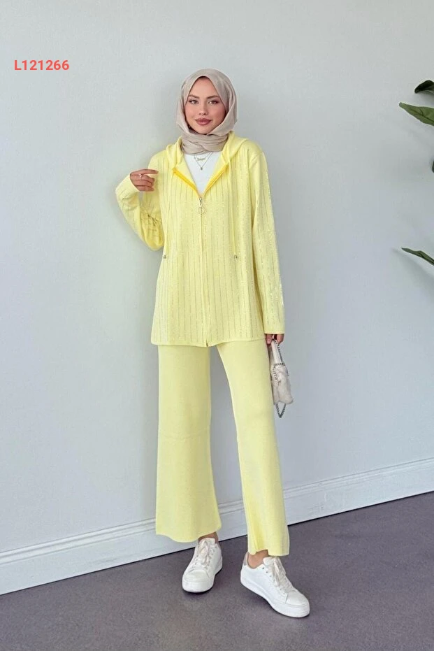 استمتع بإطلالة مميزة وجذابة مع طقم Şulemoda Giyim Eros ذو капюшون باللون الأصفر الجميل، المزود بحجارته اللامعة التي تضفي لمسة من الأناقة. يتميز التصميم براحته وجودته العالية، مما يجعله الخيار المثالي للتألق في المناسبات اليومية أو الخاصة بكل ثقة.