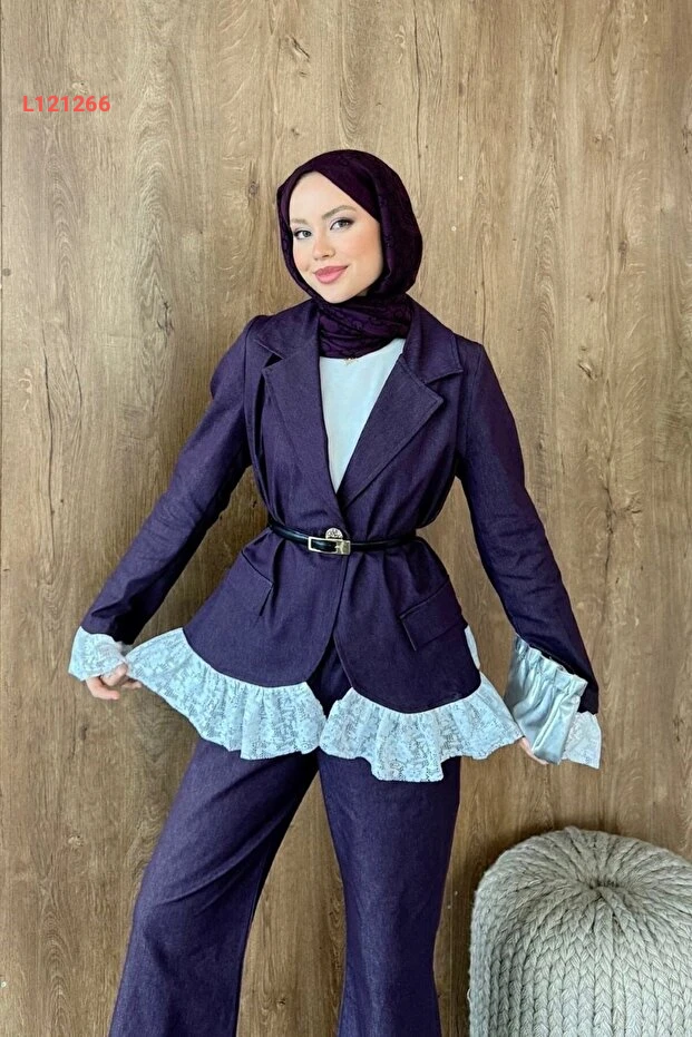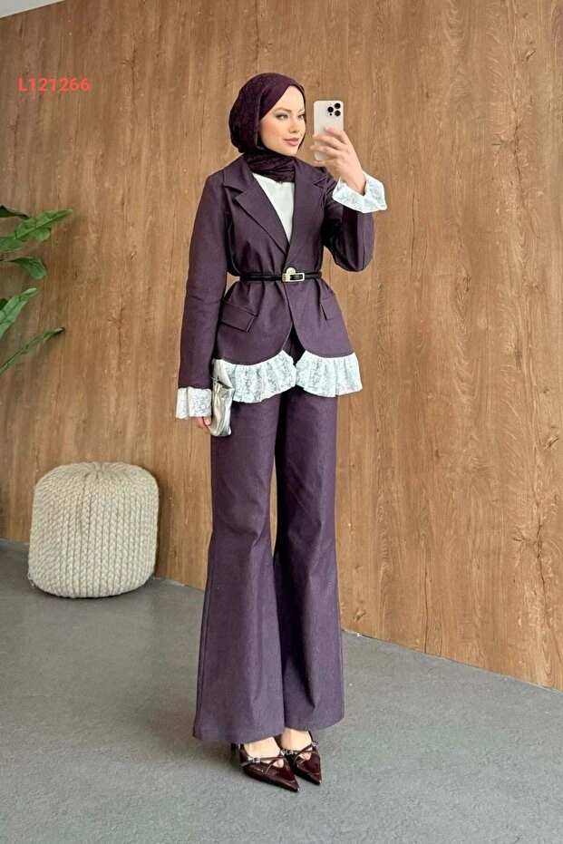 استمتع بالأناقة والراحة مع طقم Şulemoda المذهل بلون المودرن المائل إلى المرسوم، والذي يتميز بتفاصيل الدانتيل الرائعة. يجمع هذا التصميم بين الأناقة العصرية واللمسات الأنثوية، مما يجعله الخيار المثالي لمناسباتك الخاصة أو إطلالاتك اليومية. ارتدي طقم الدانتيل الفريد لتضفي لمسة ساحرة على أسلوبك!