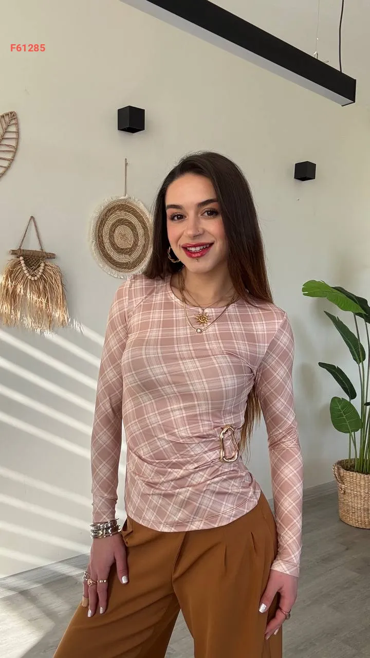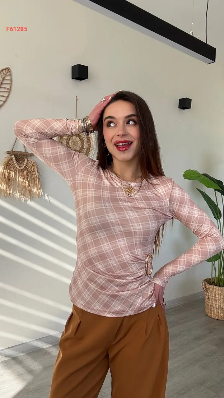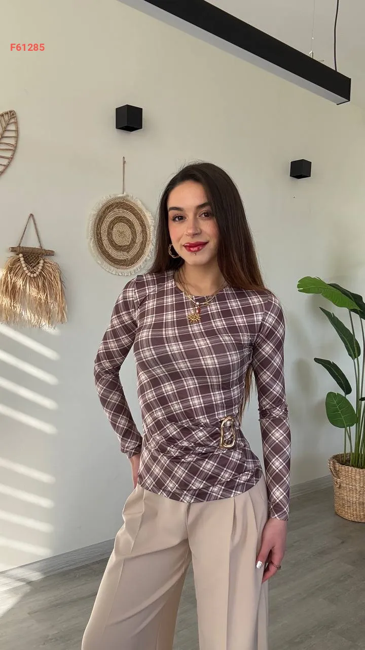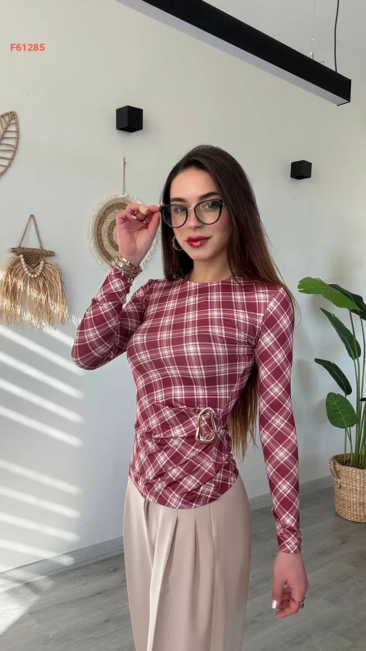 بلوزة كارو بإبزيم جانبي