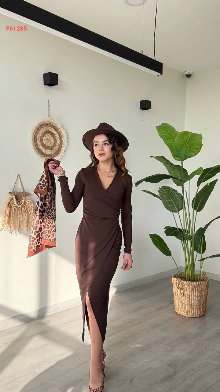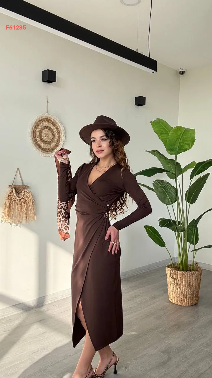 فستان طويل بسلسلة وبروش دهبي