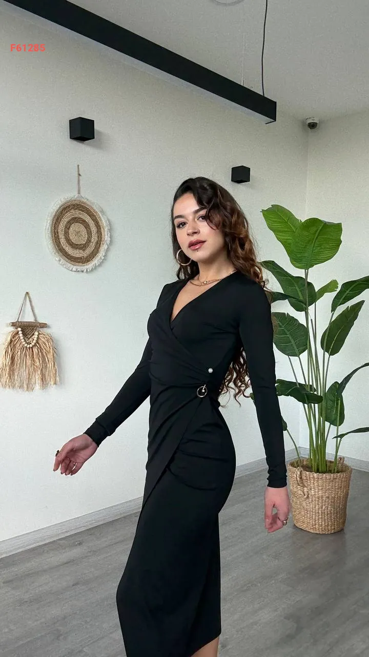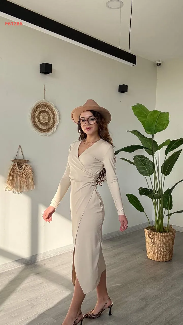 فستان بإبزيم جانبي وفتحة