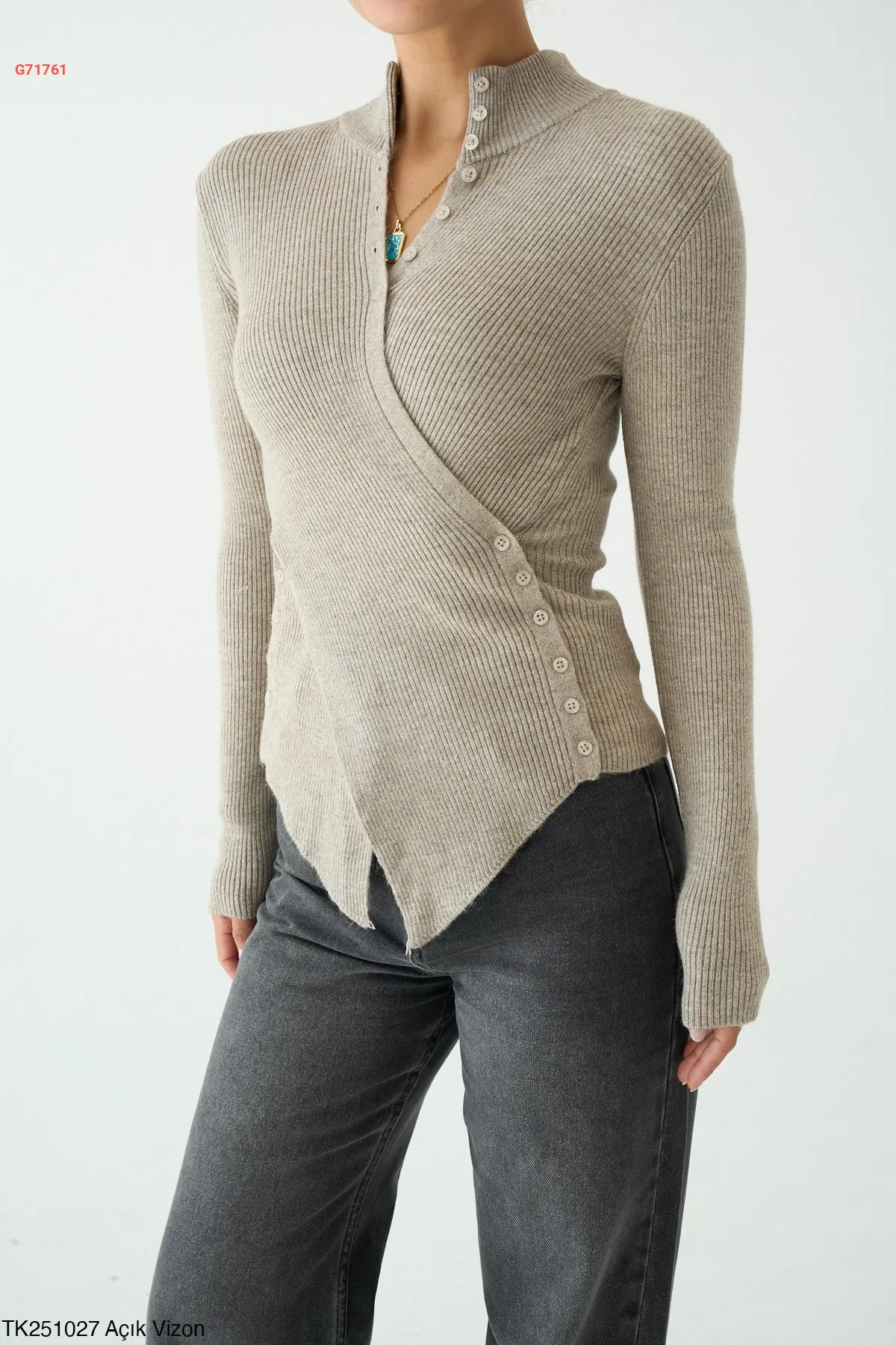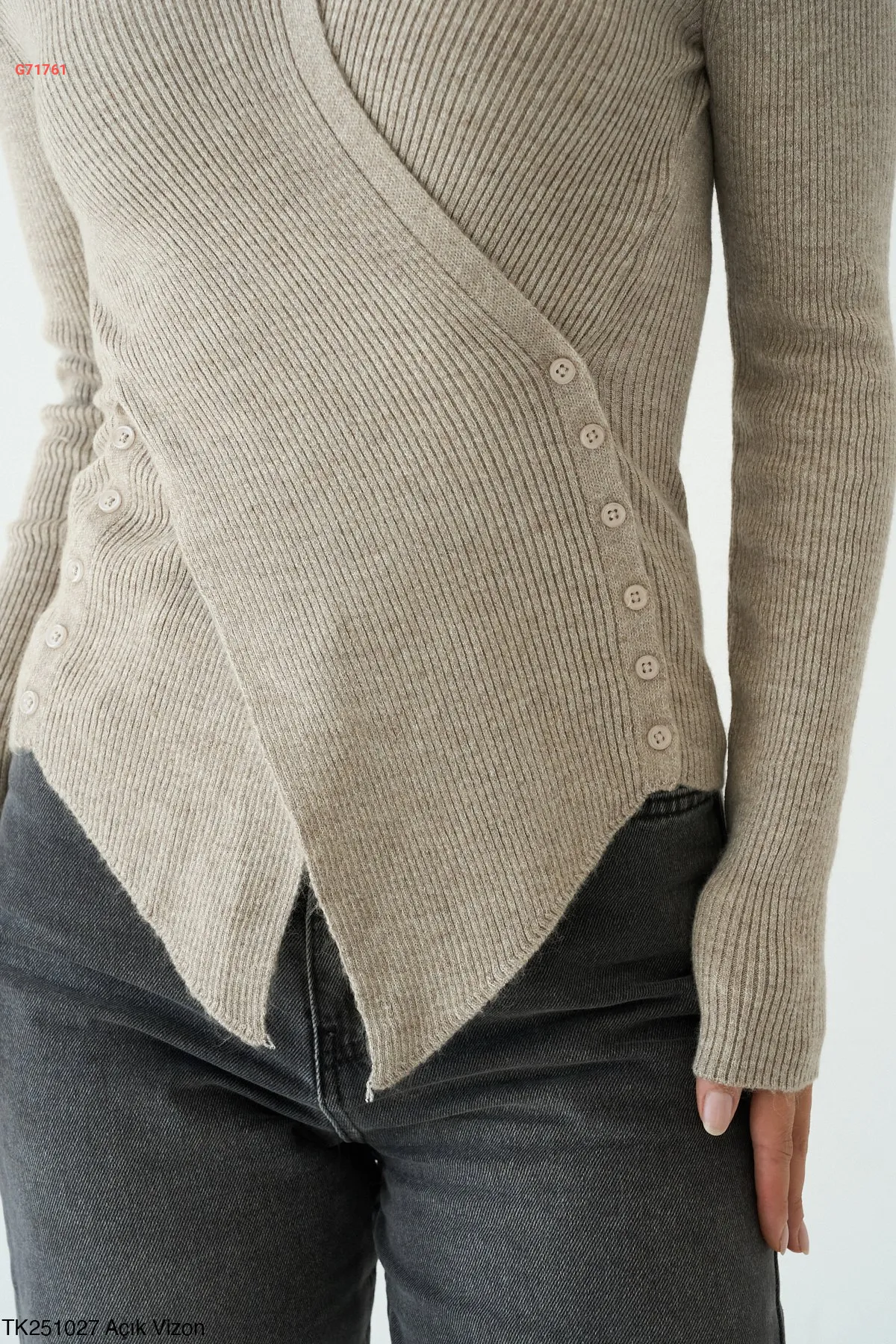 كنزة تريكو بأزرار جانبية وعالقبة