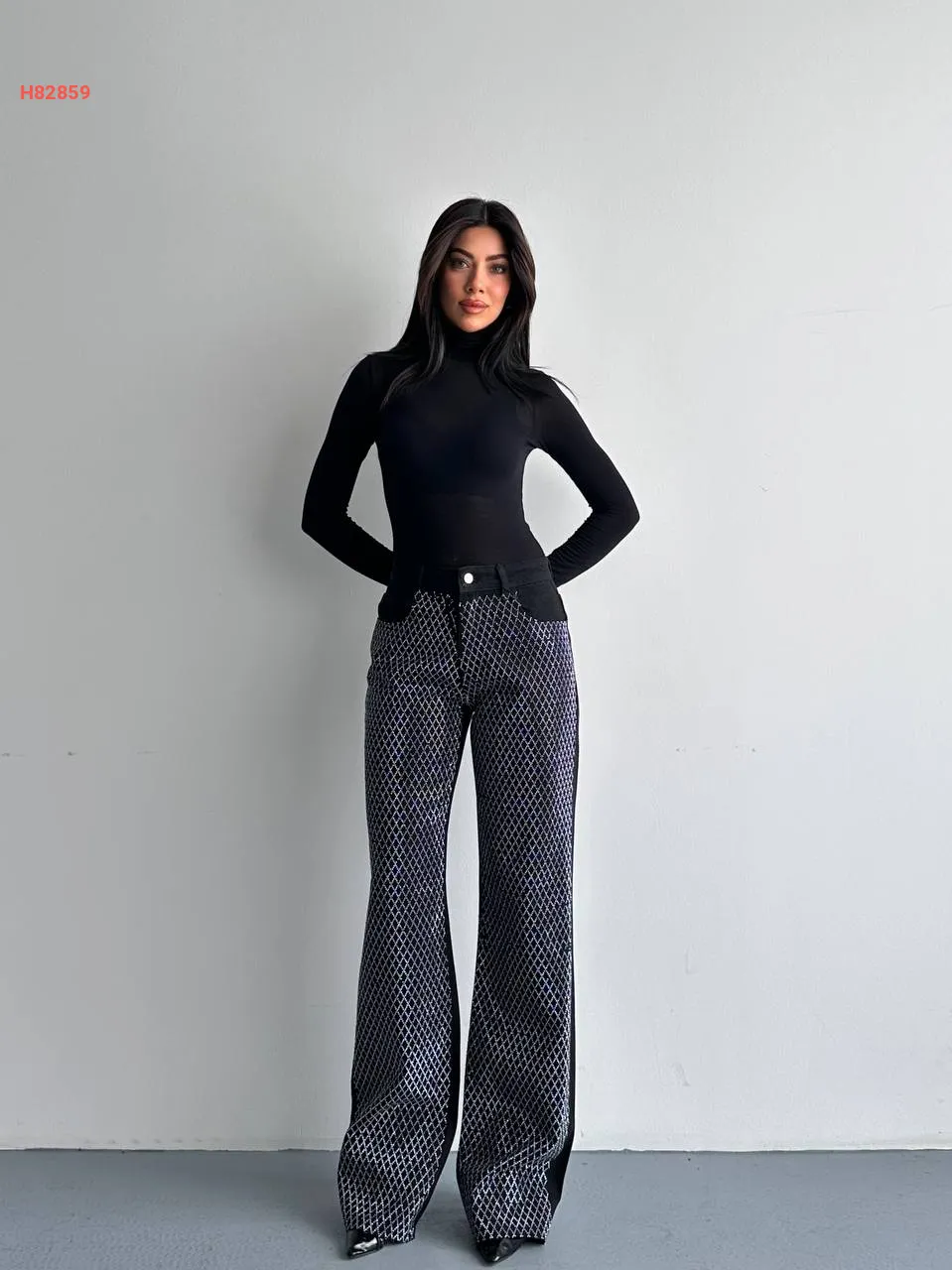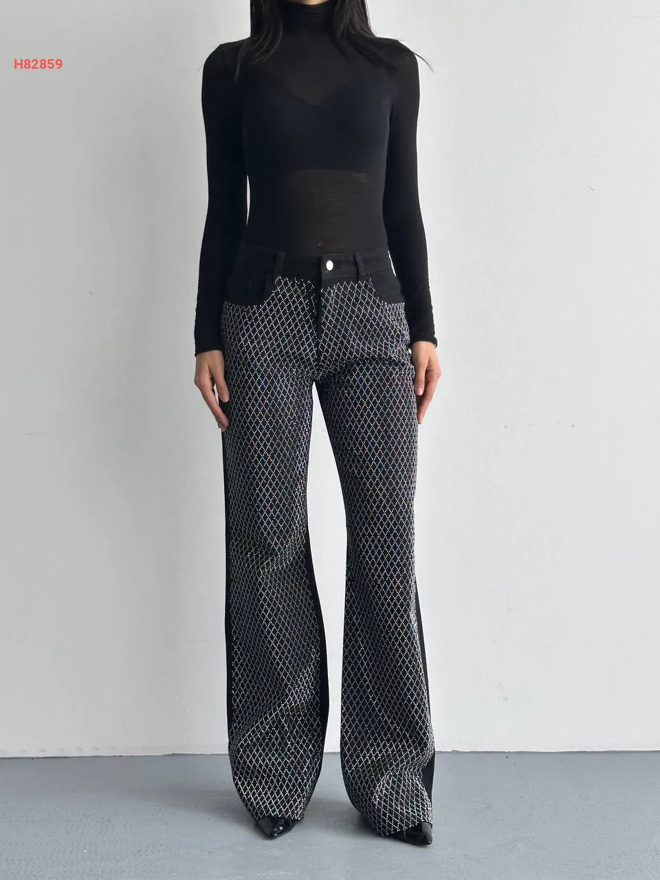 بنطال جينز تطريز فضي من الأمام