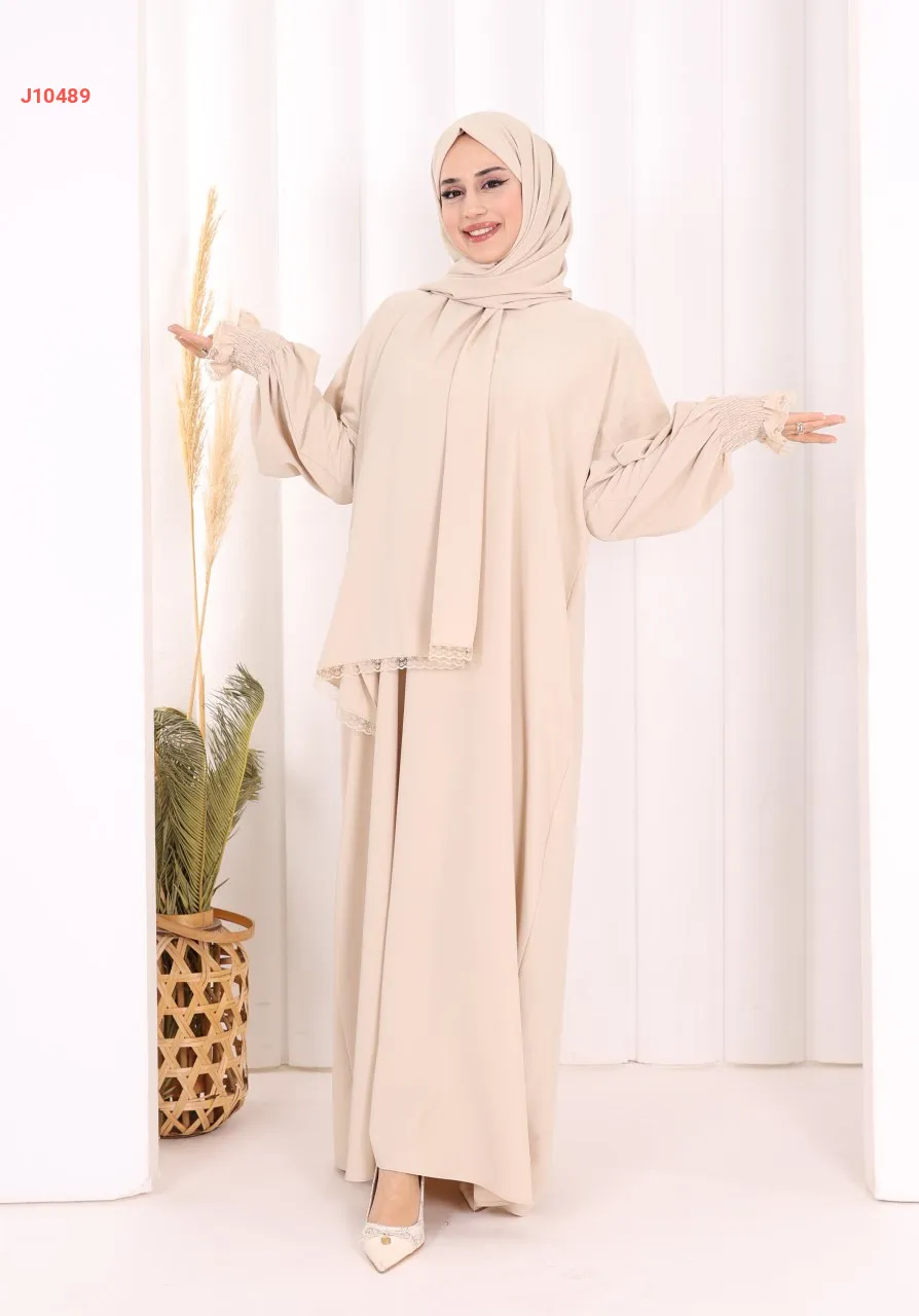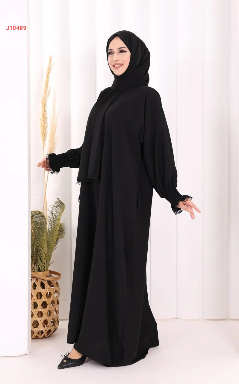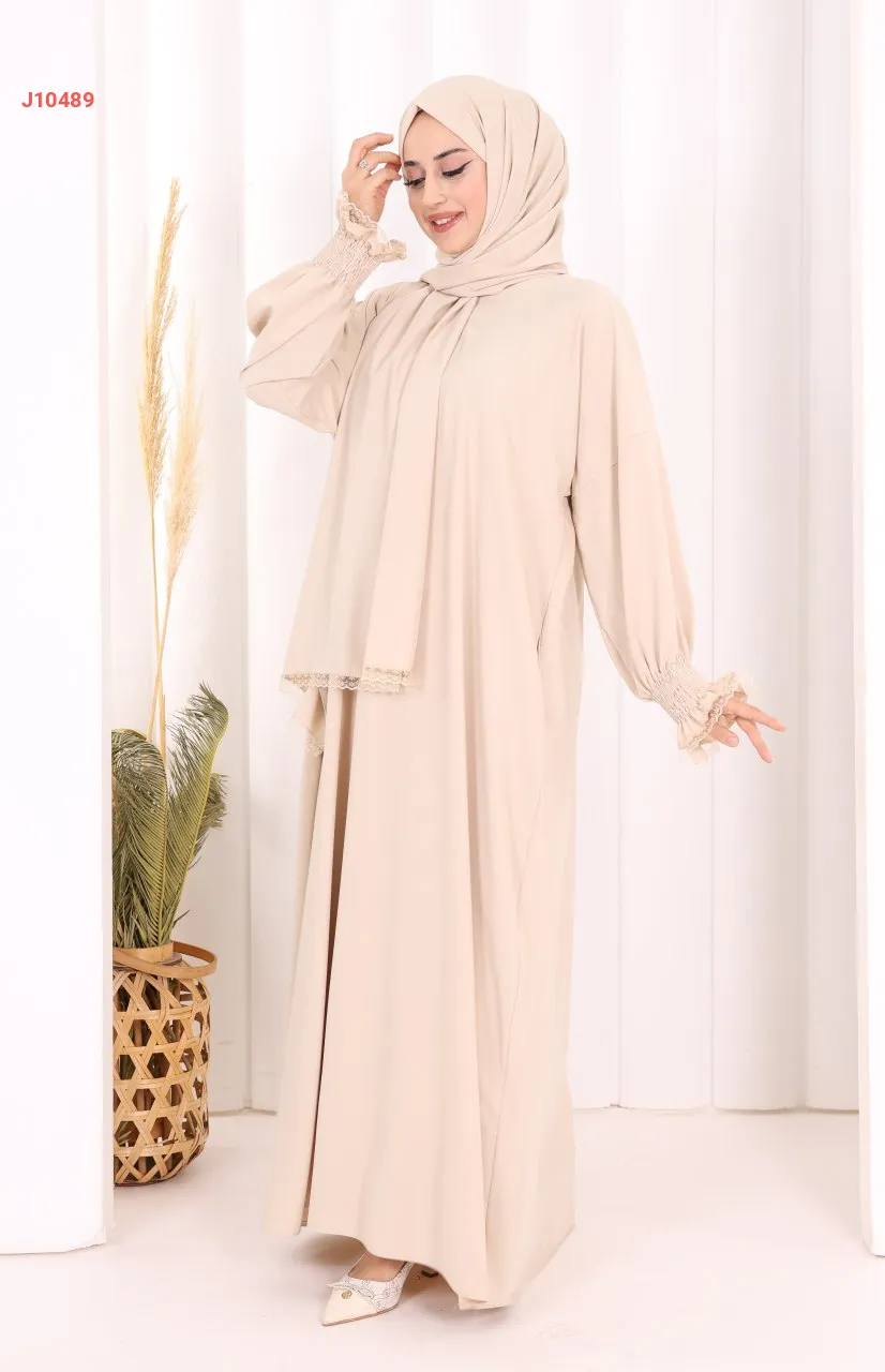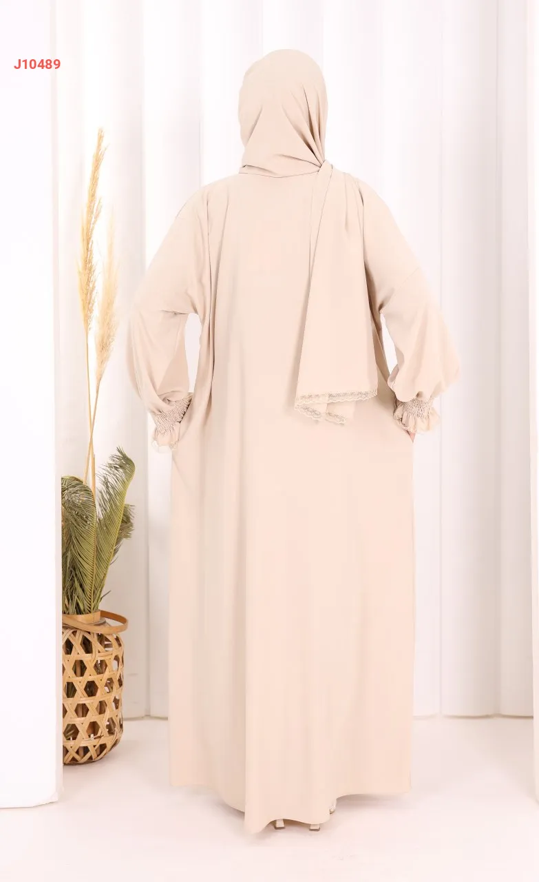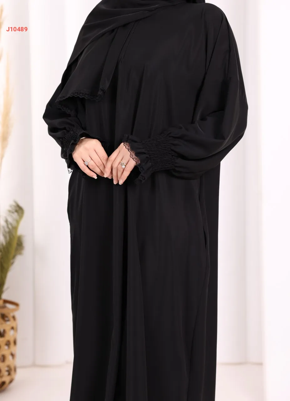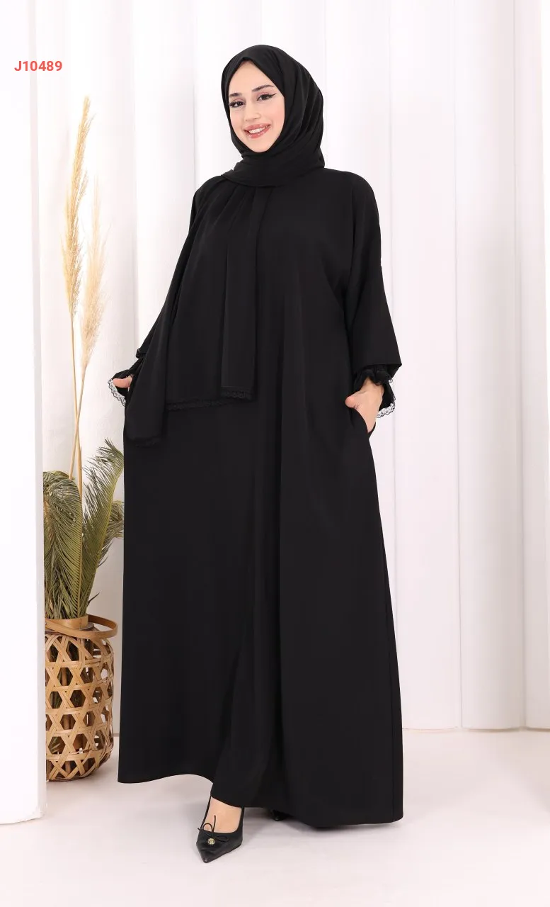 عباية سادة مع شال، وجيب ، بأكمام مزمومة