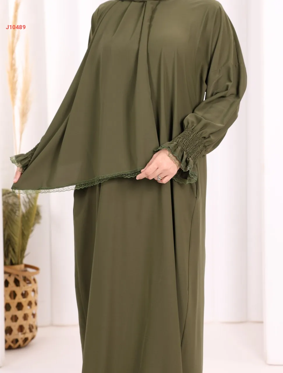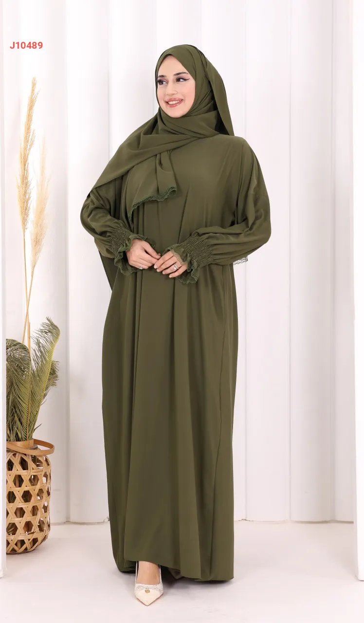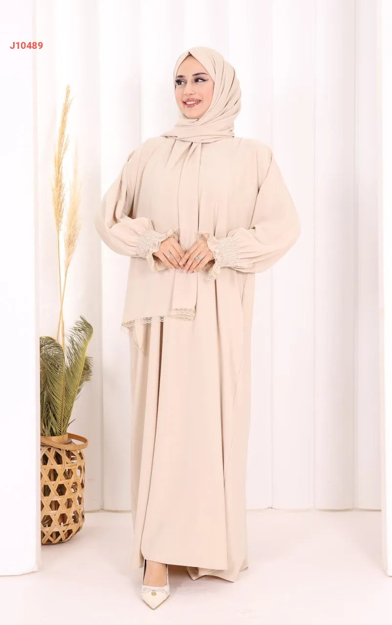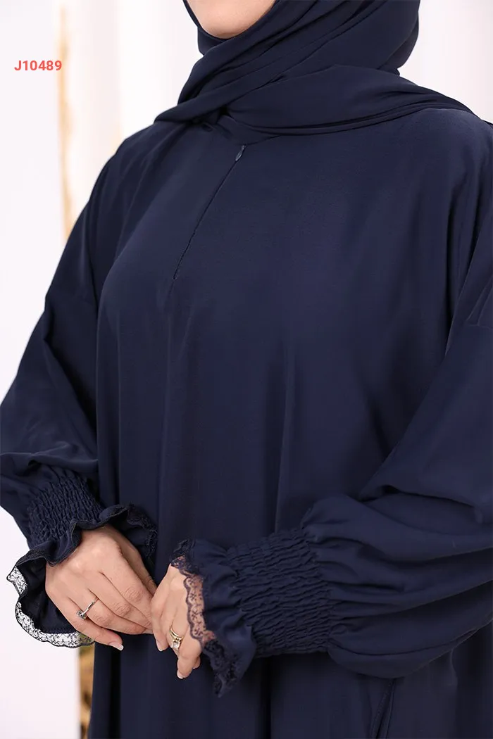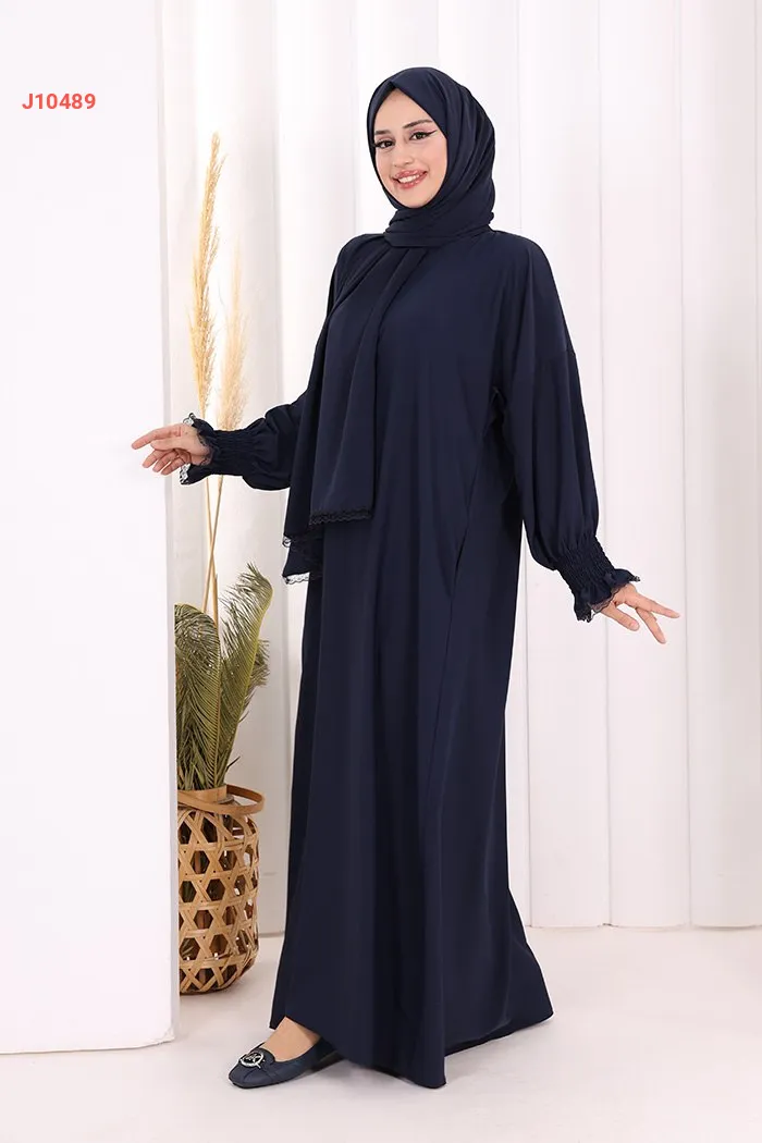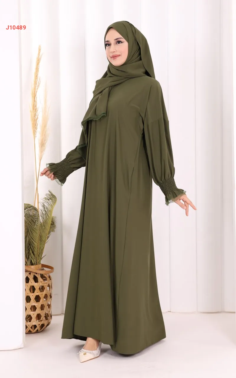 عباية سادة مع شال، وجيب ، بأكمام مزمومة