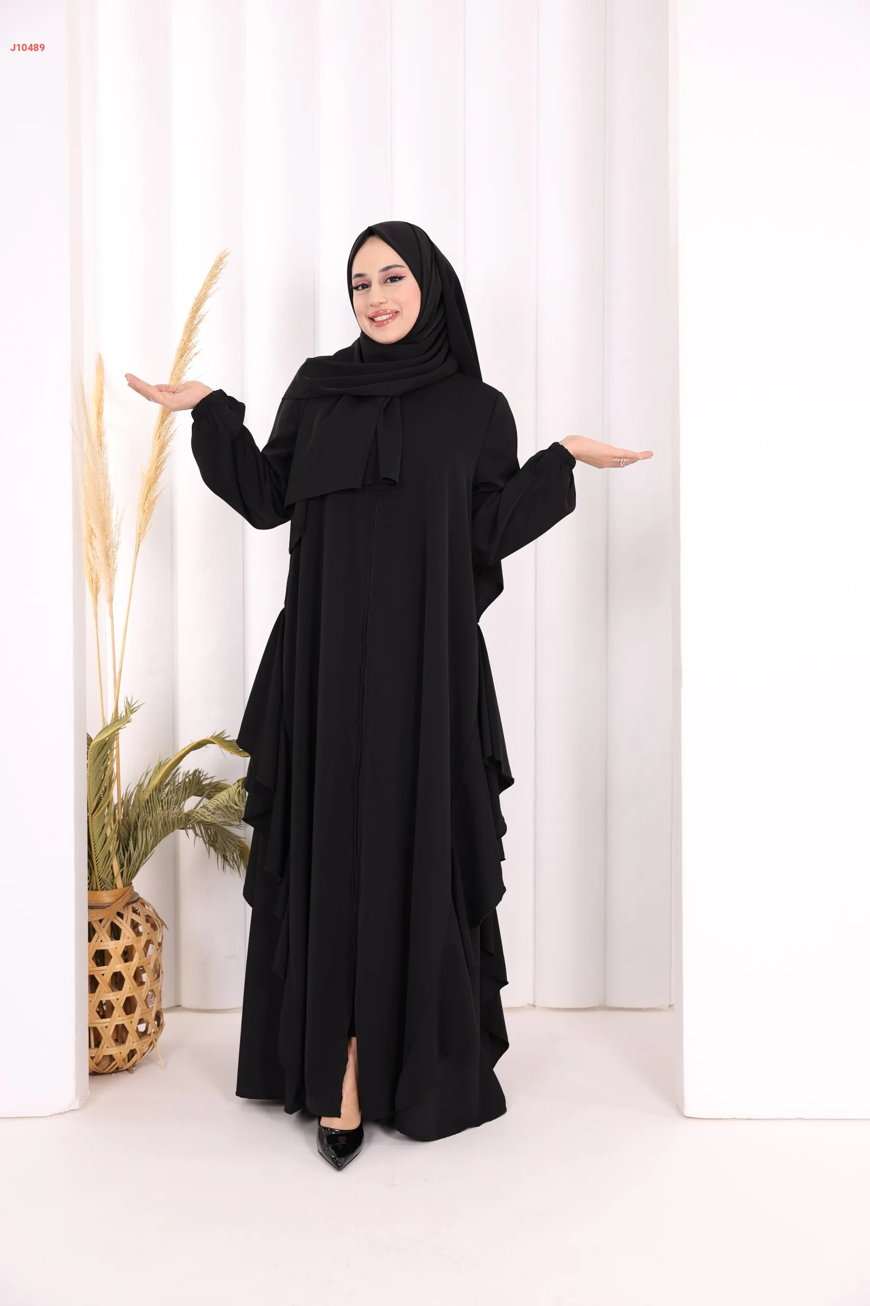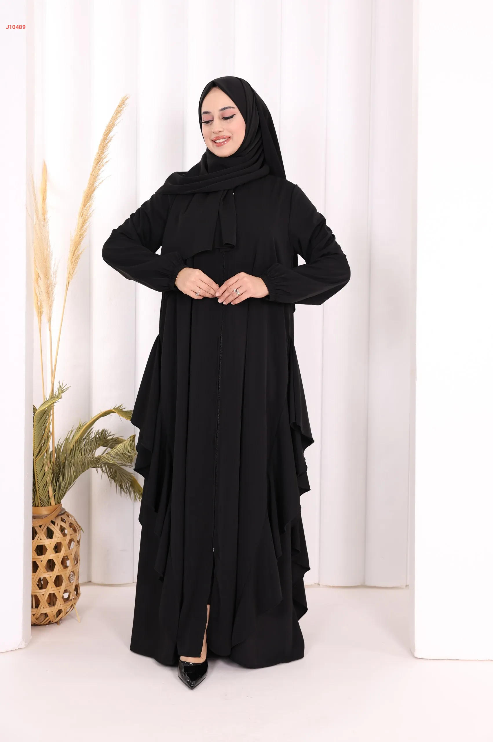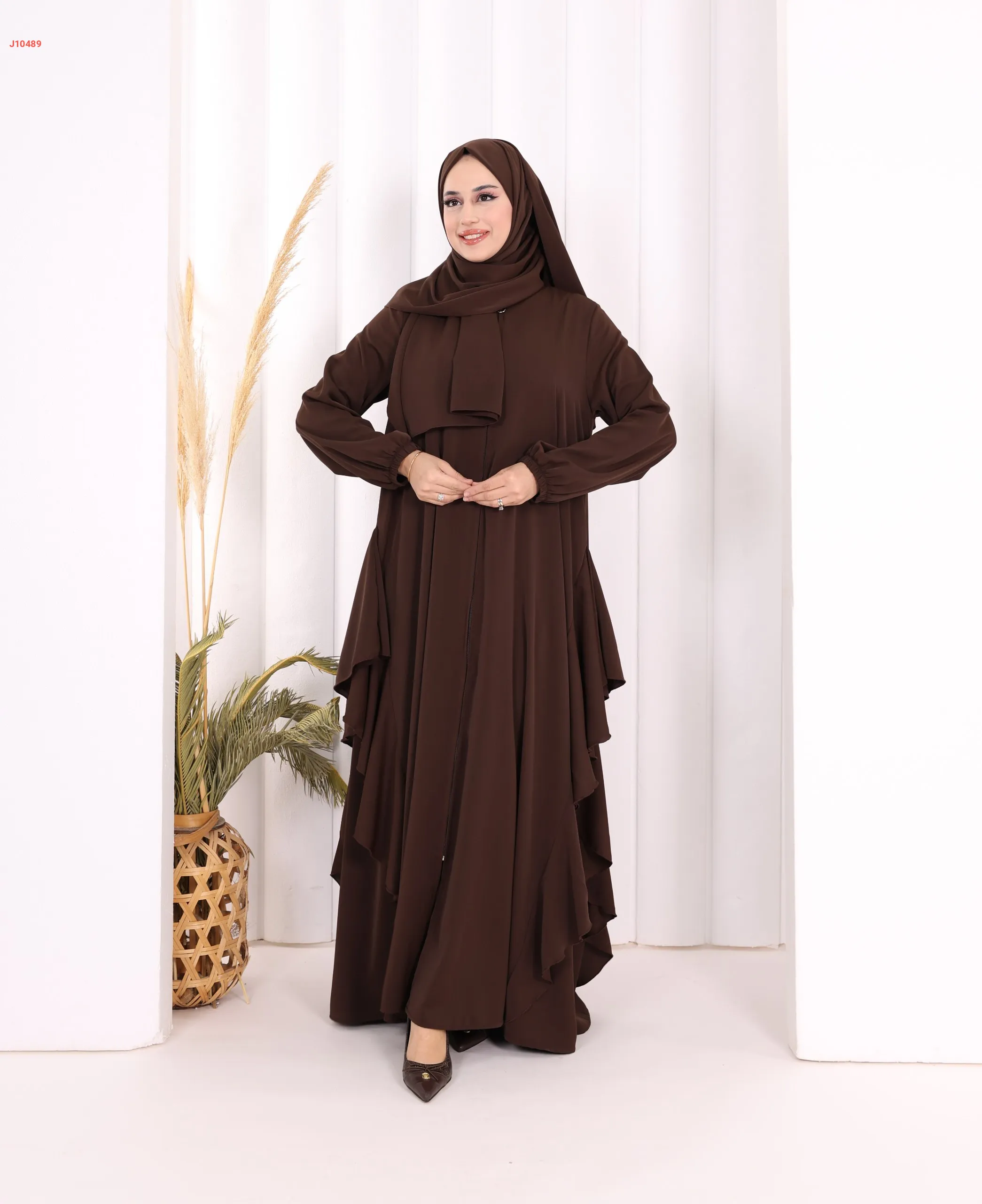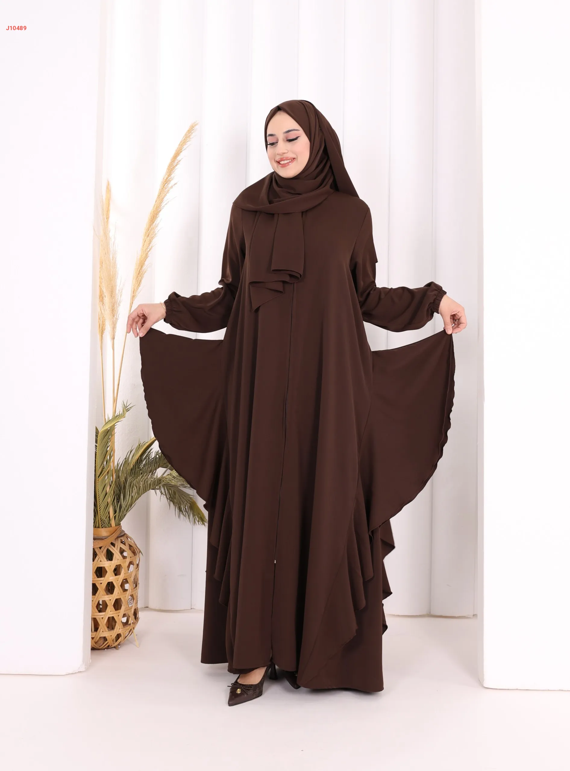عباية كلوش سادة مع شال ، بكشكشة من الأسفل