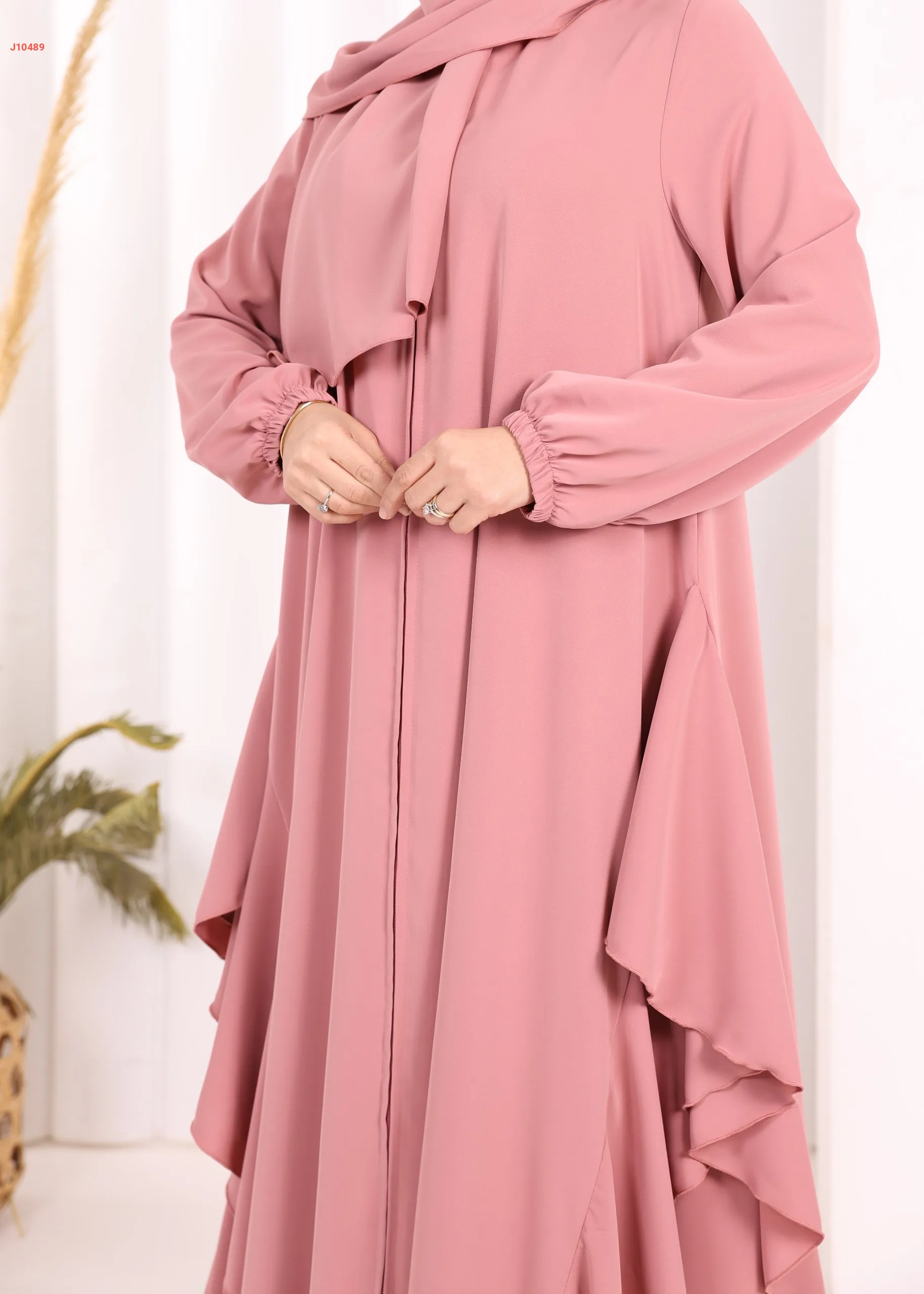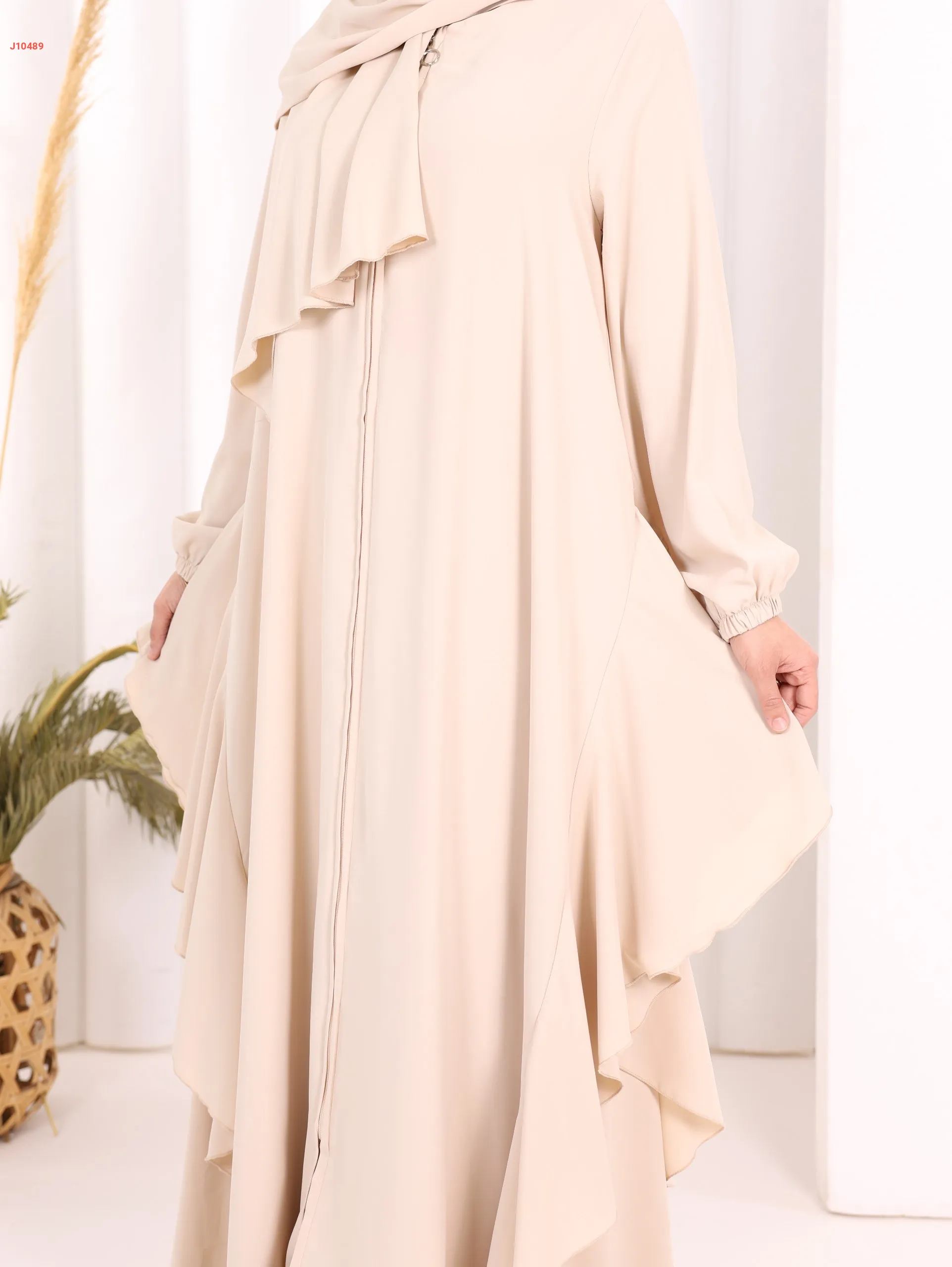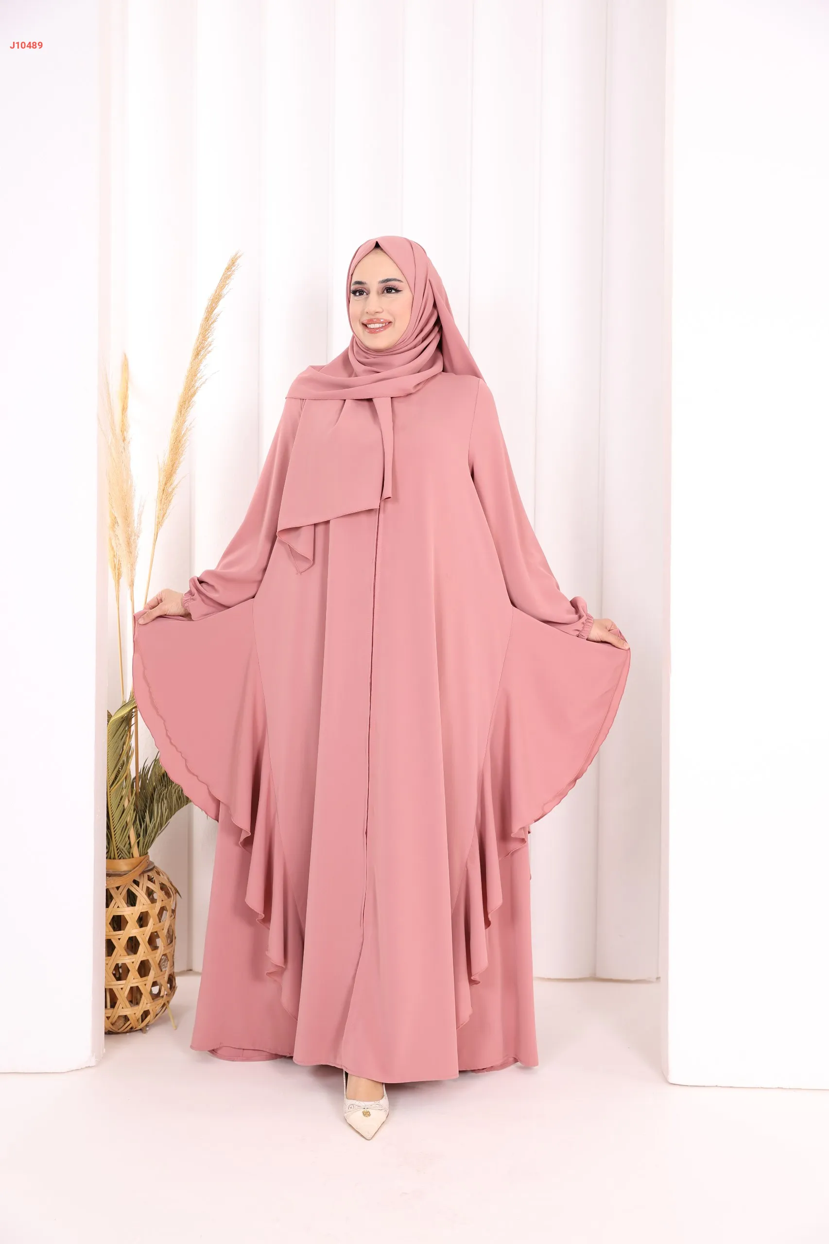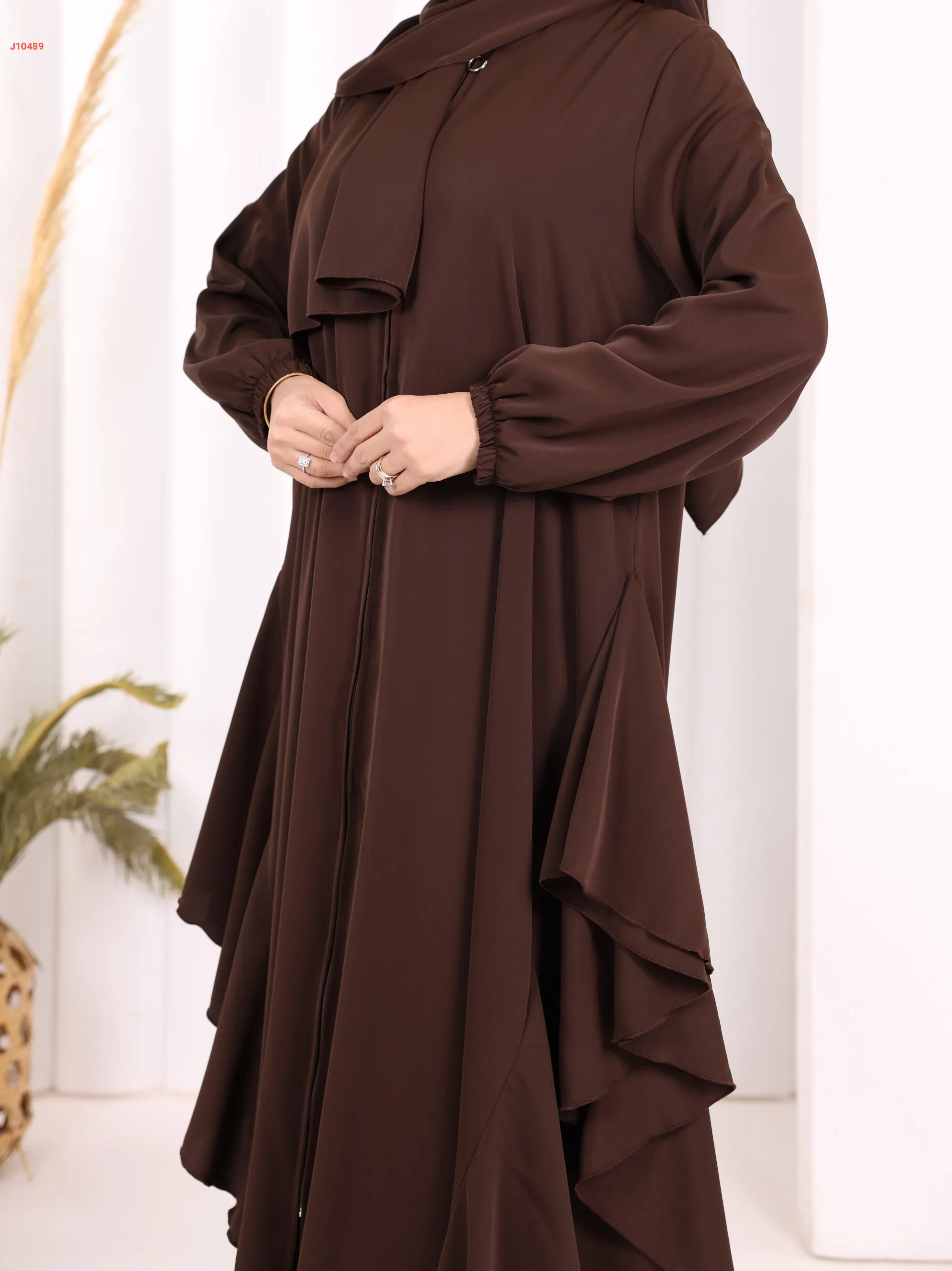 عباية كلوش سادة مع شال ، بكشكشة من الأسفل