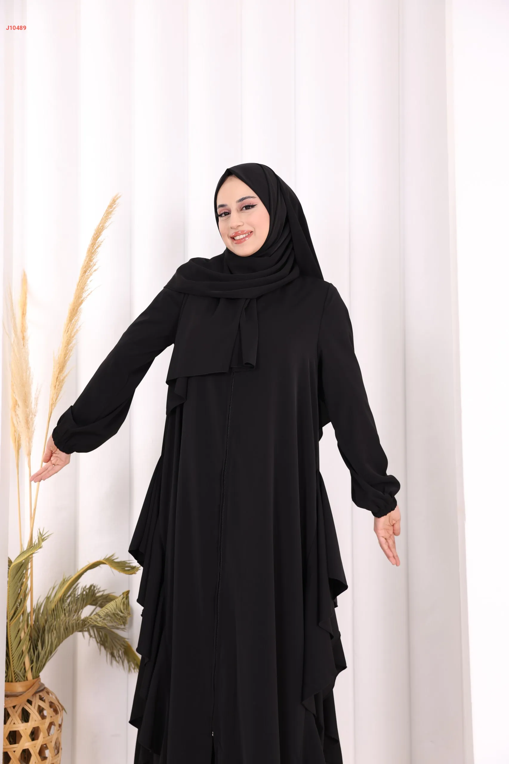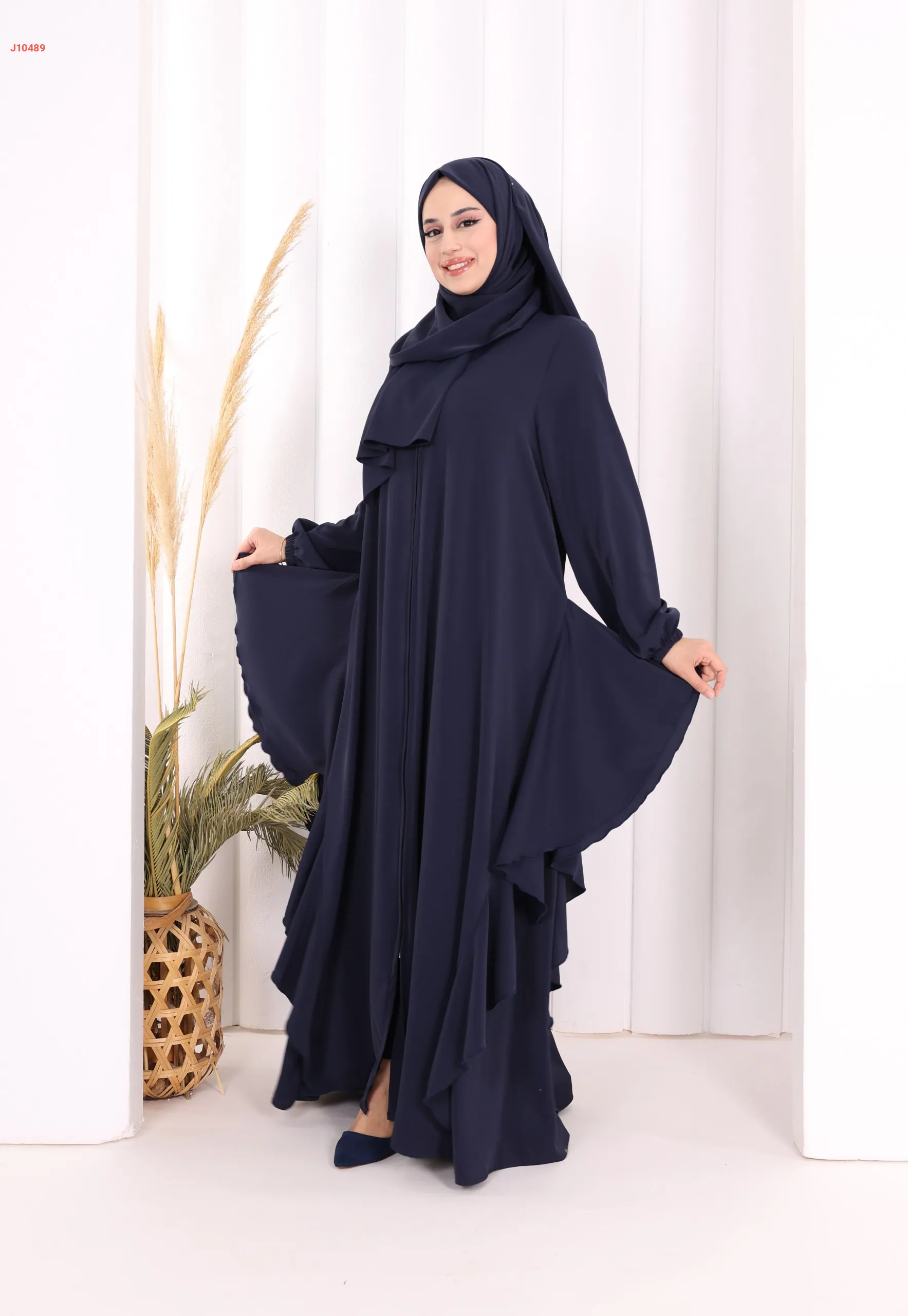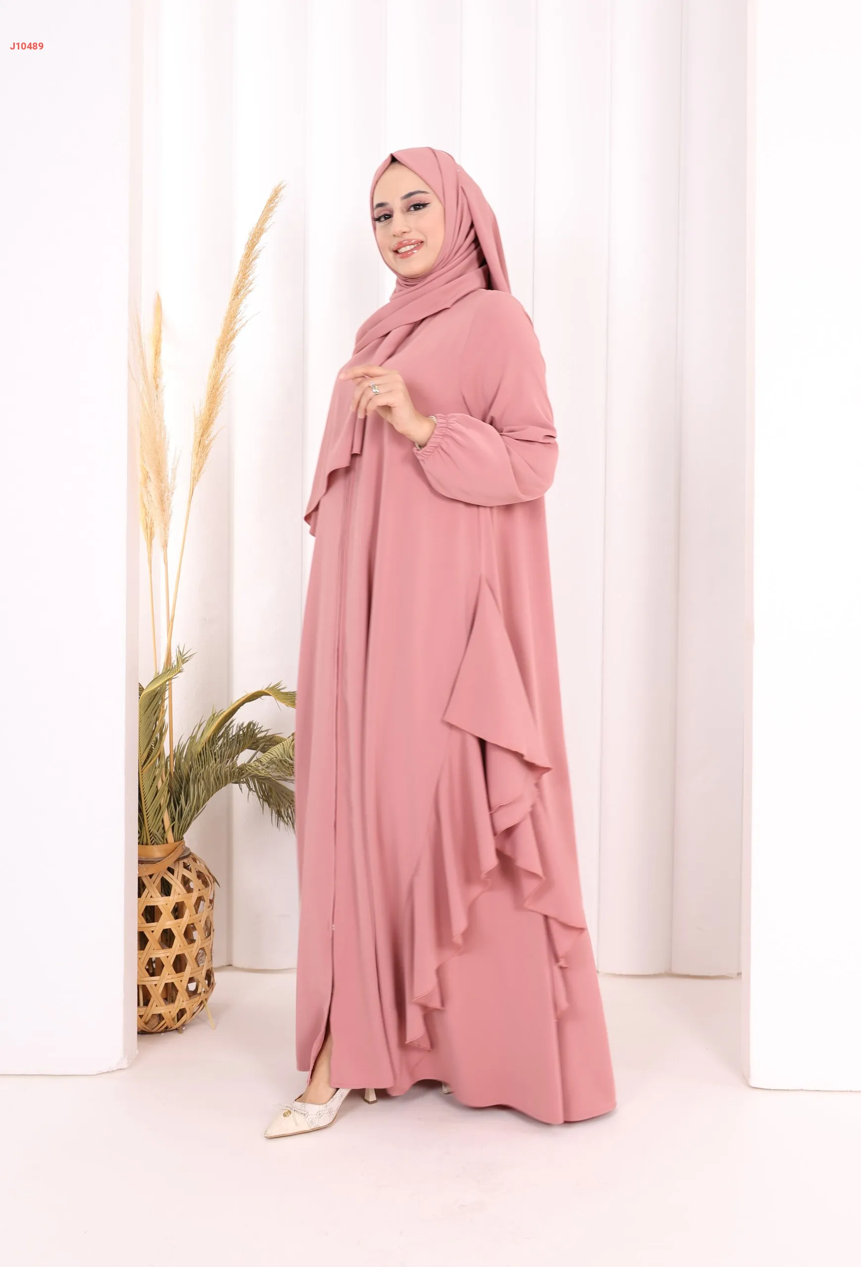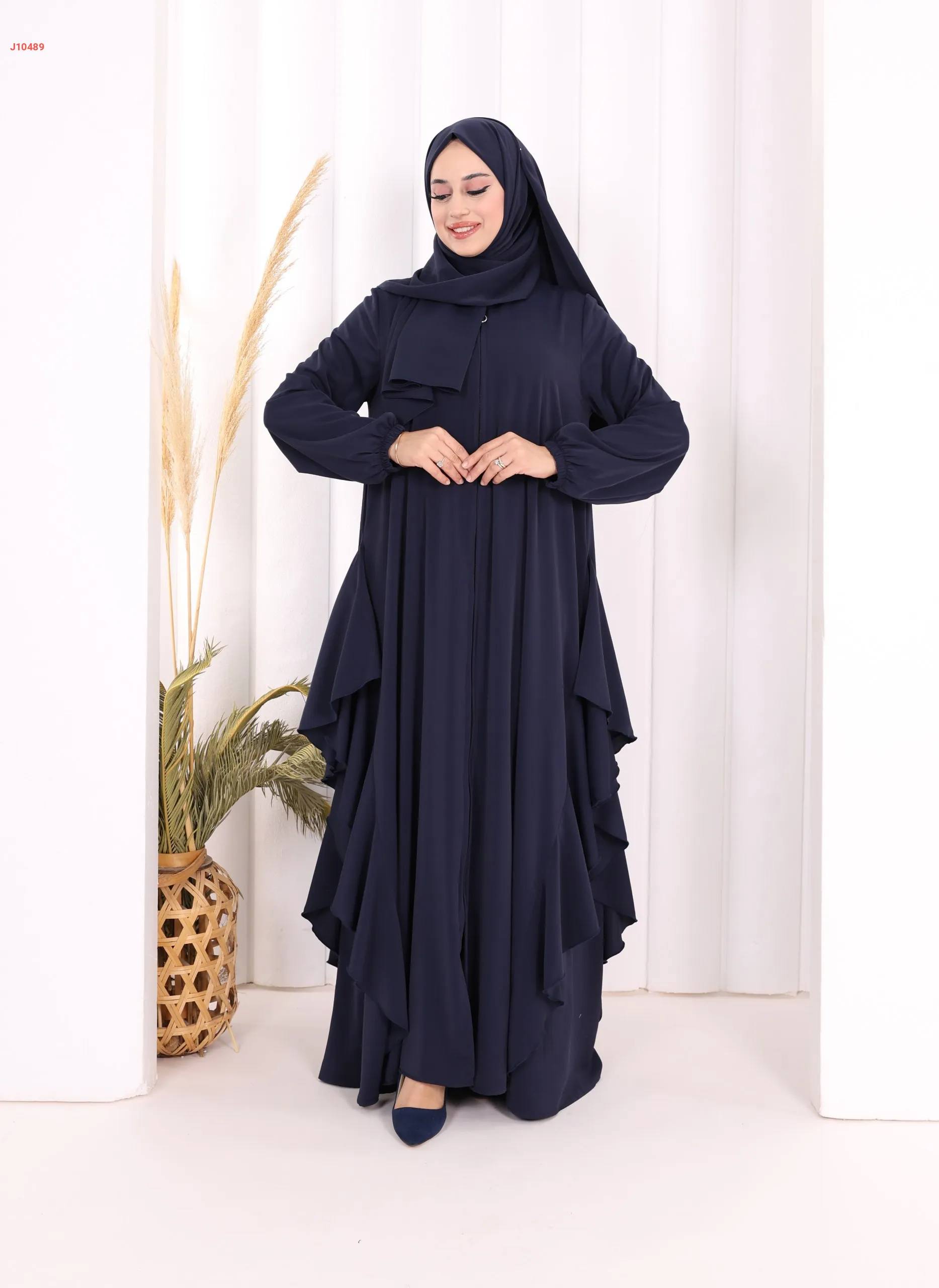 عباية كلوش سادة مع شال ، بكشكشة من الأسفل