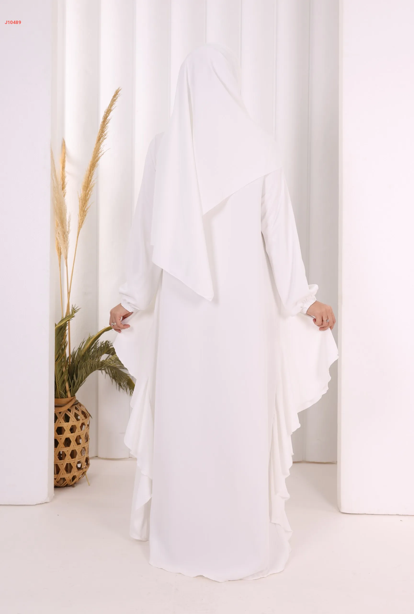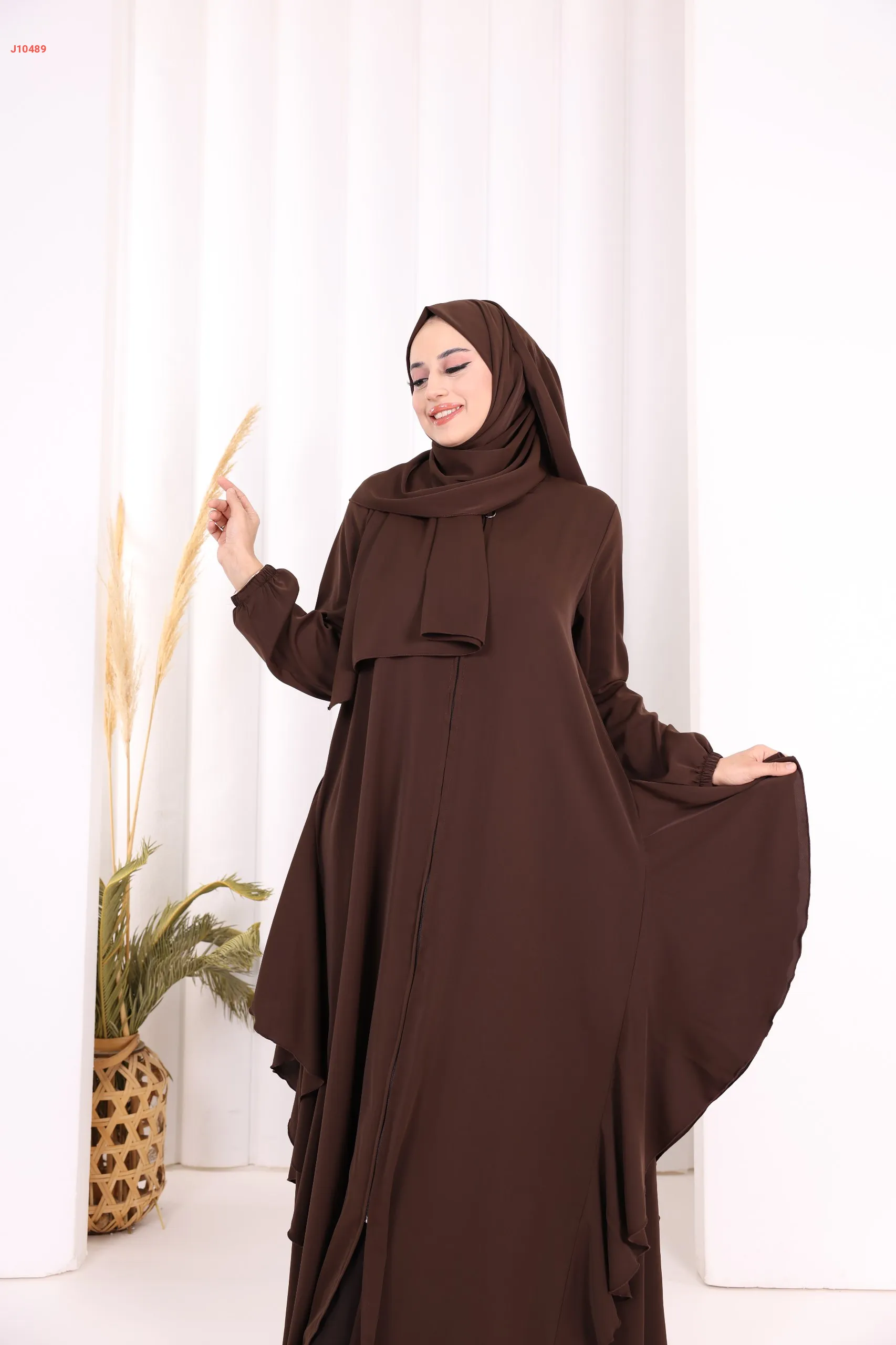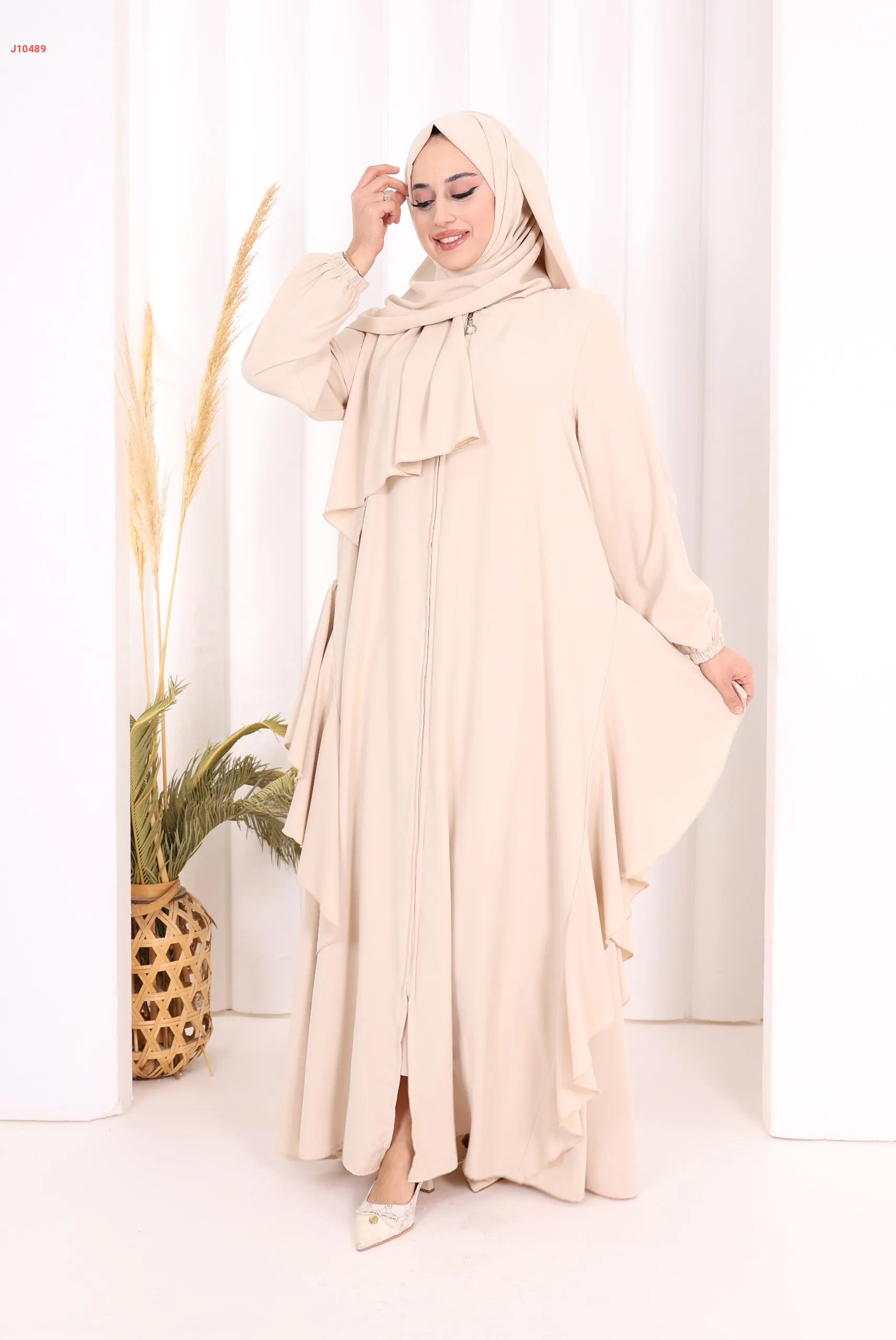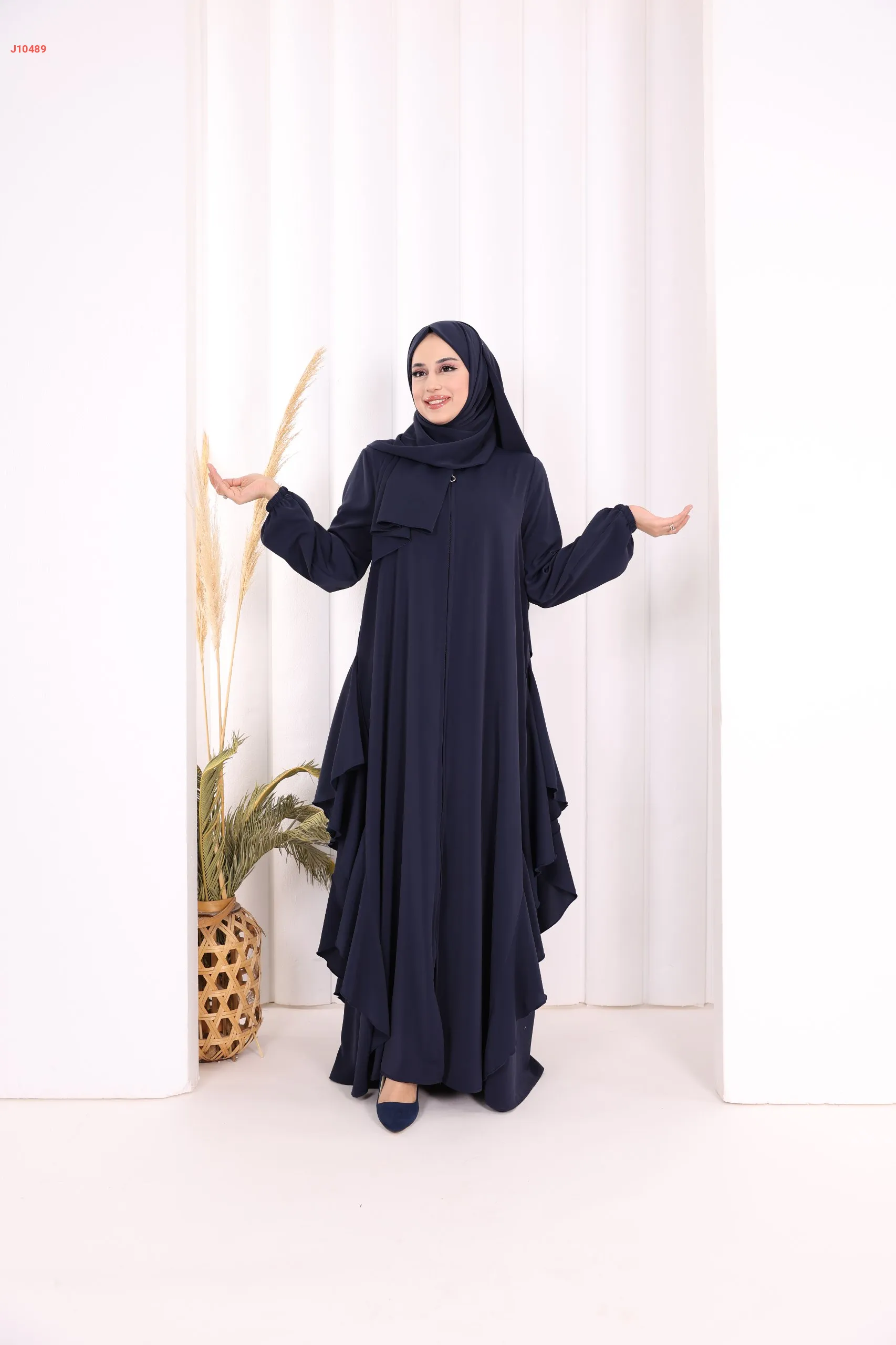 عباية كلوش سادة مع شال ، بكشكشة من الأسفل
