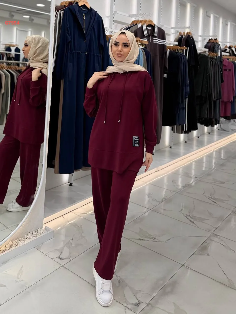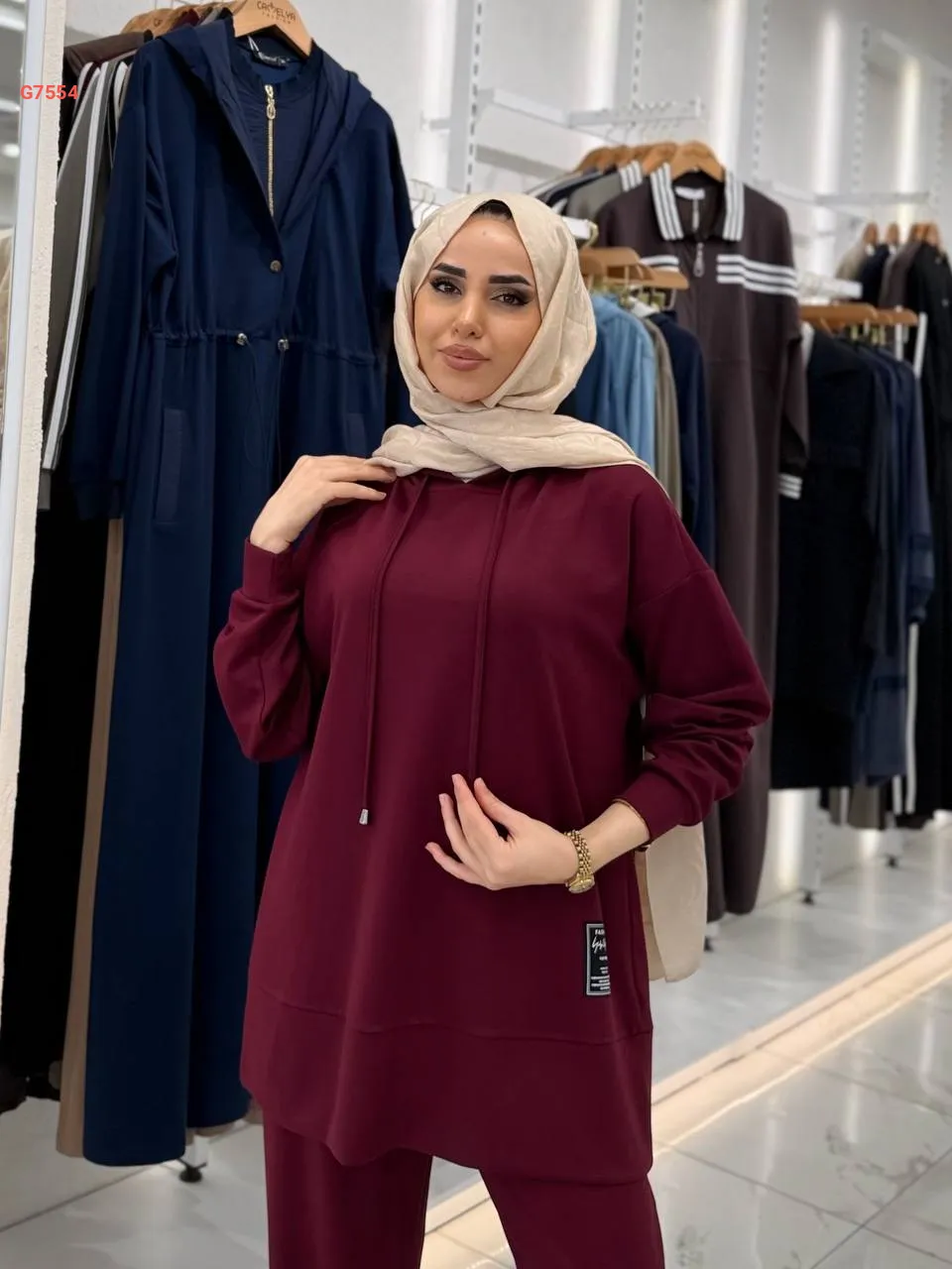 بيجامة سادة بغطاء رأس مقاسات كبيرة