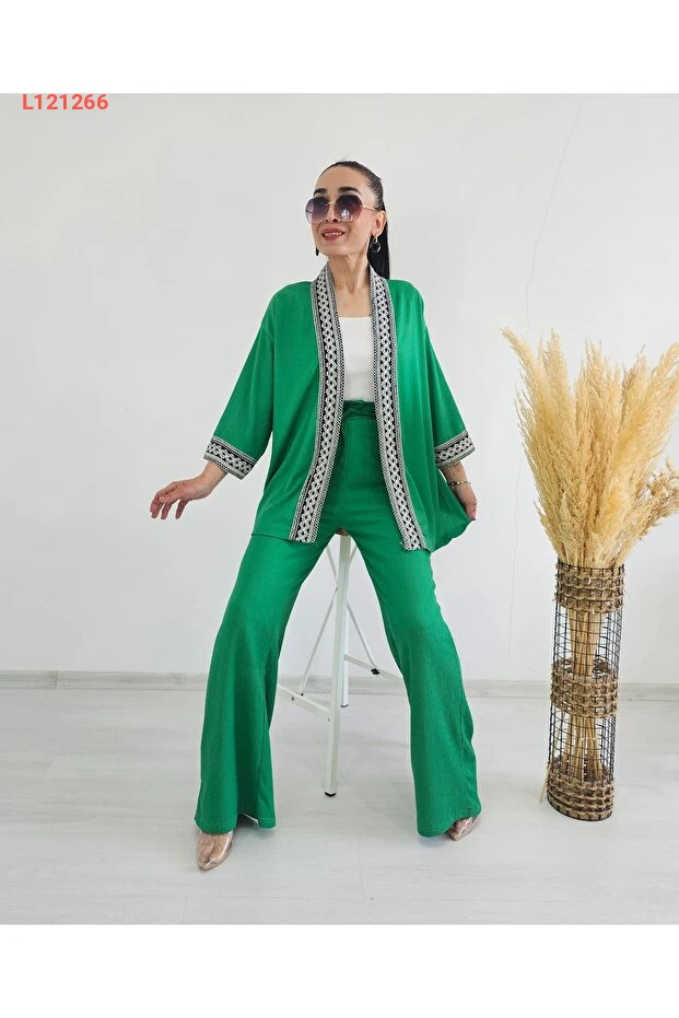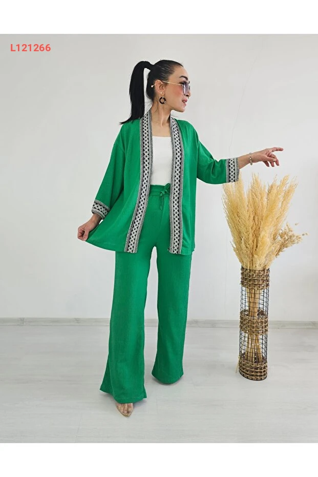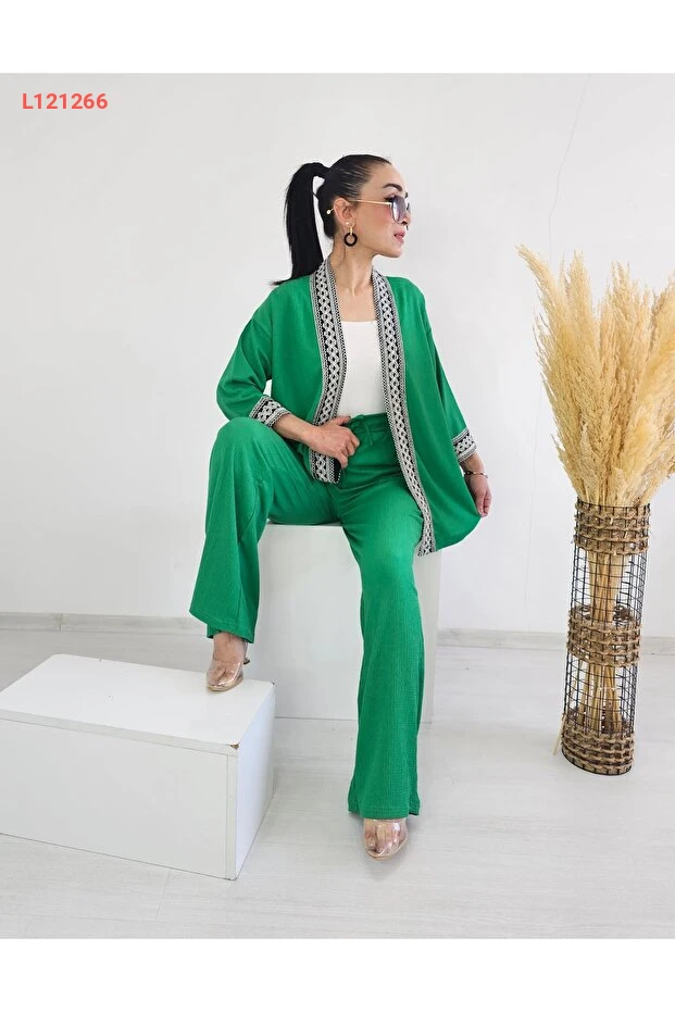 استمتع بإطلالة أنيقة ومريحة مع طقم الكيمونو الواسع البوتيكي بألوانه الزاهية والتفاصيل المطرزة الفريدة. تصميمه العصري يجعله مثاليًا للمناسبات اليومية أو السهرات، بينما يوفر لك حرية الحركة والراحة الفائقة. أضيفي لمسة من الأناقة العصرية إلى خزانة ملابسك!