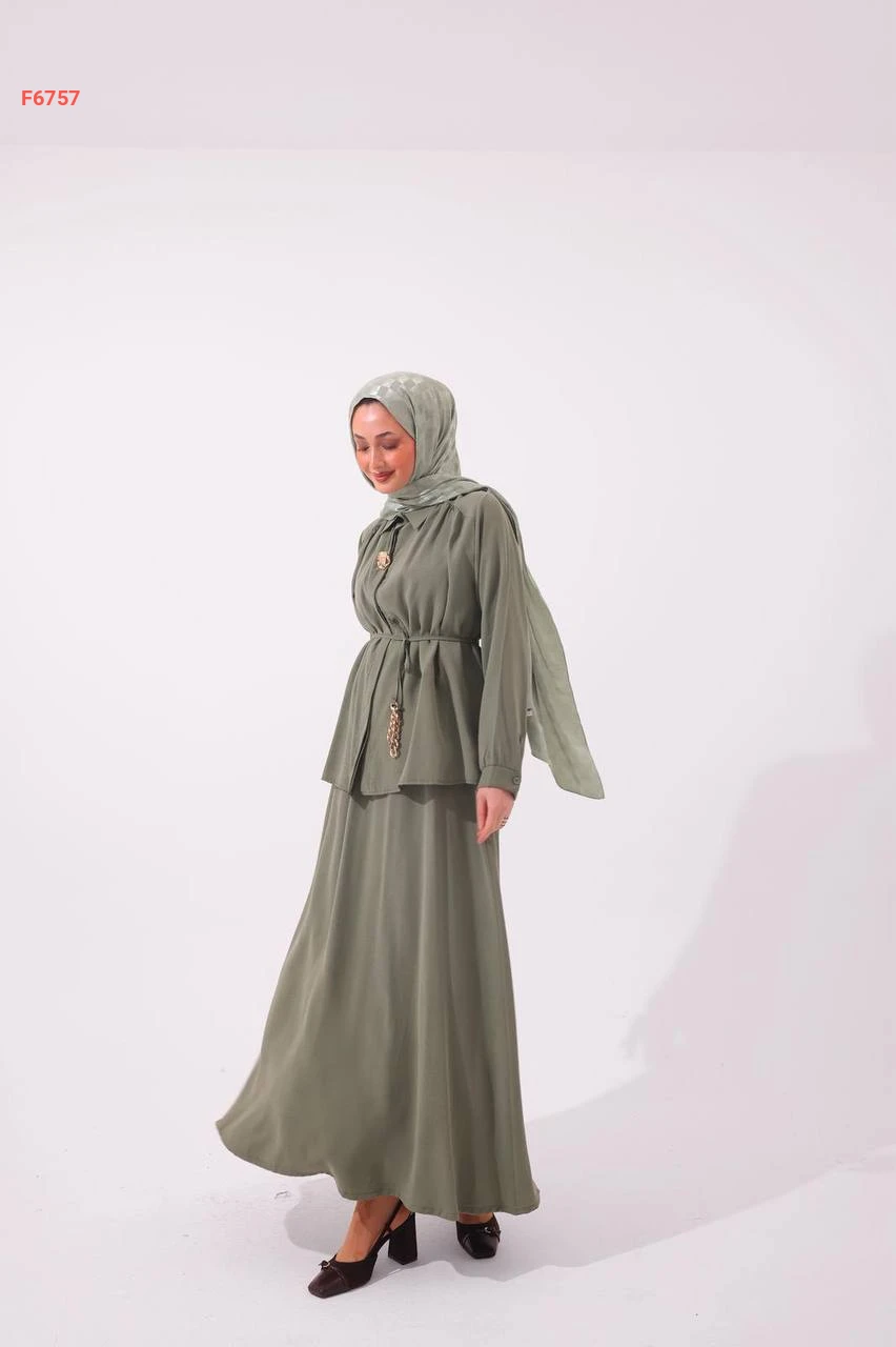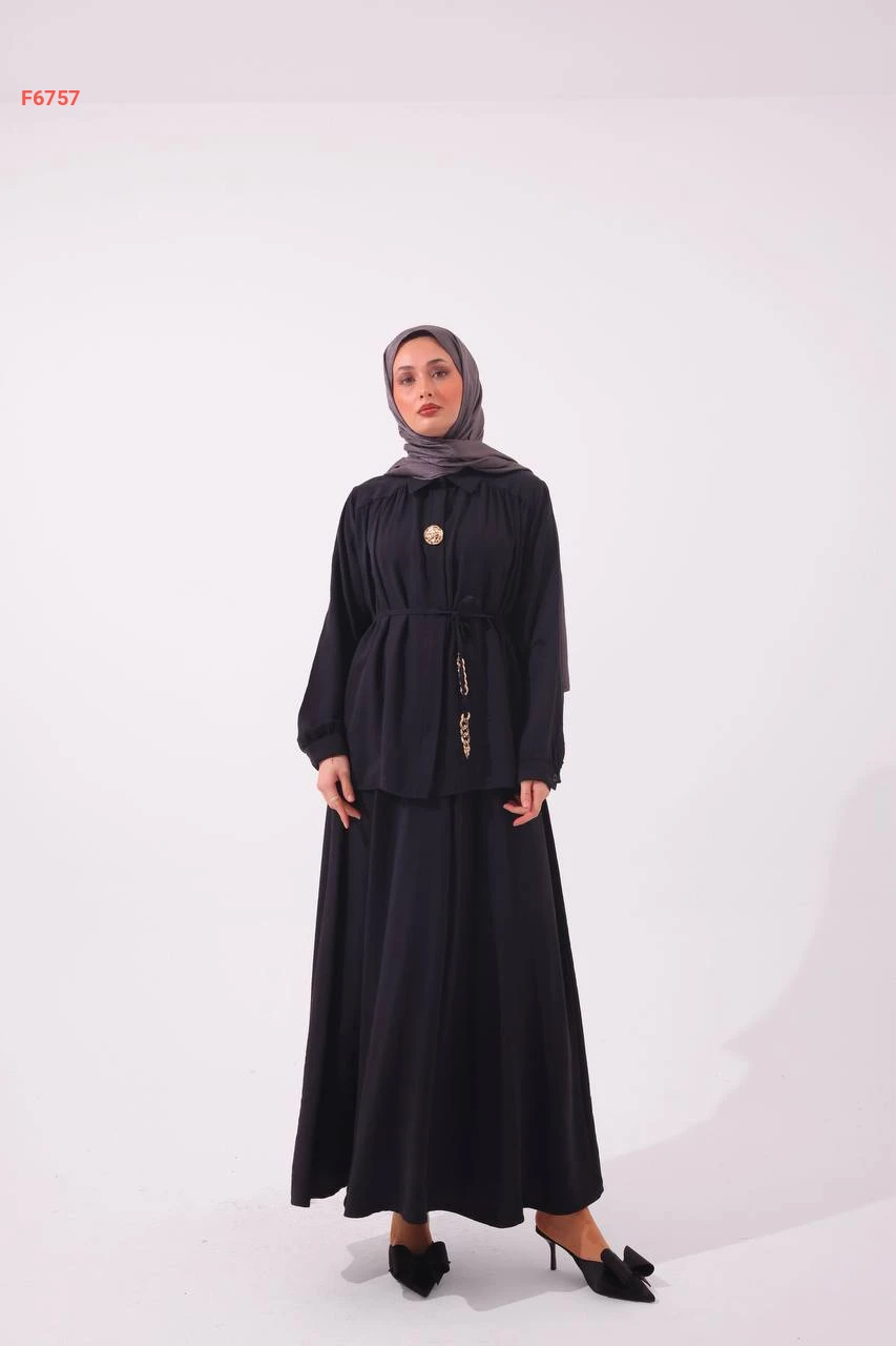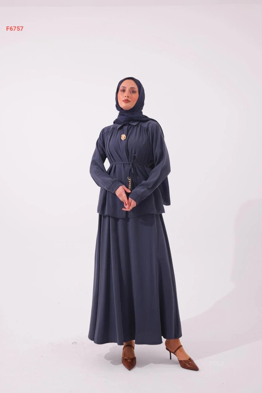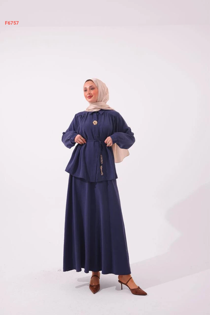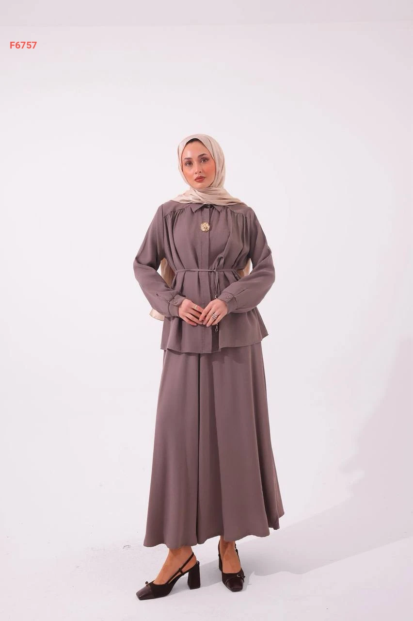 طقم تنورة وقميص مع زنار باكسسوار وبروش