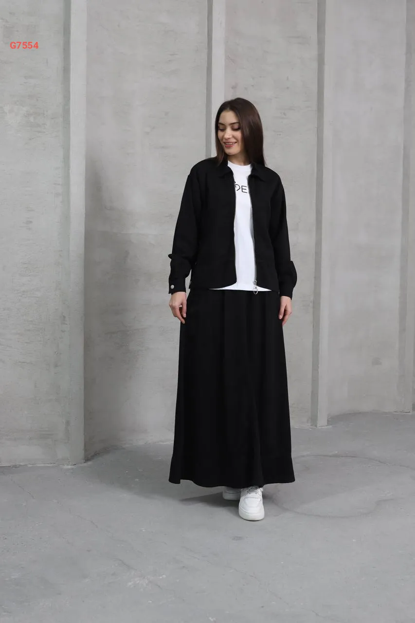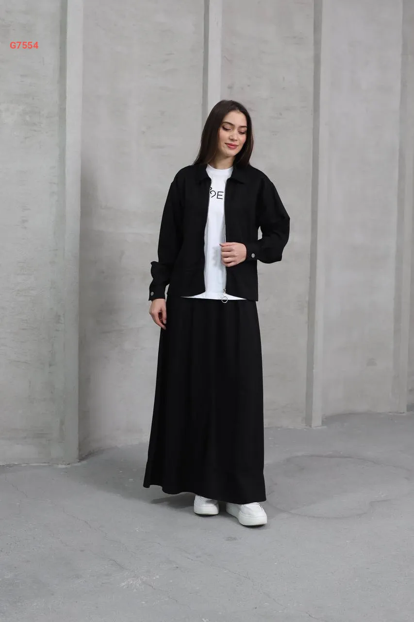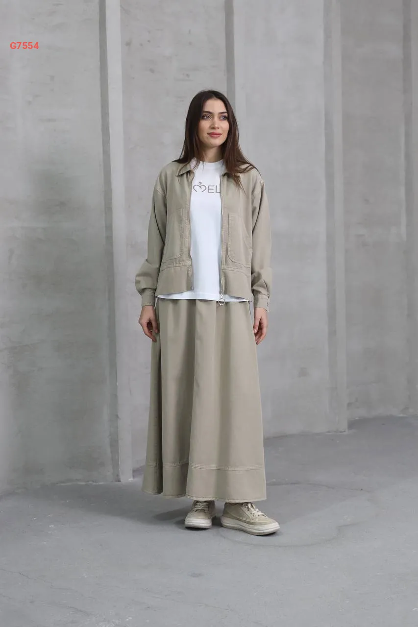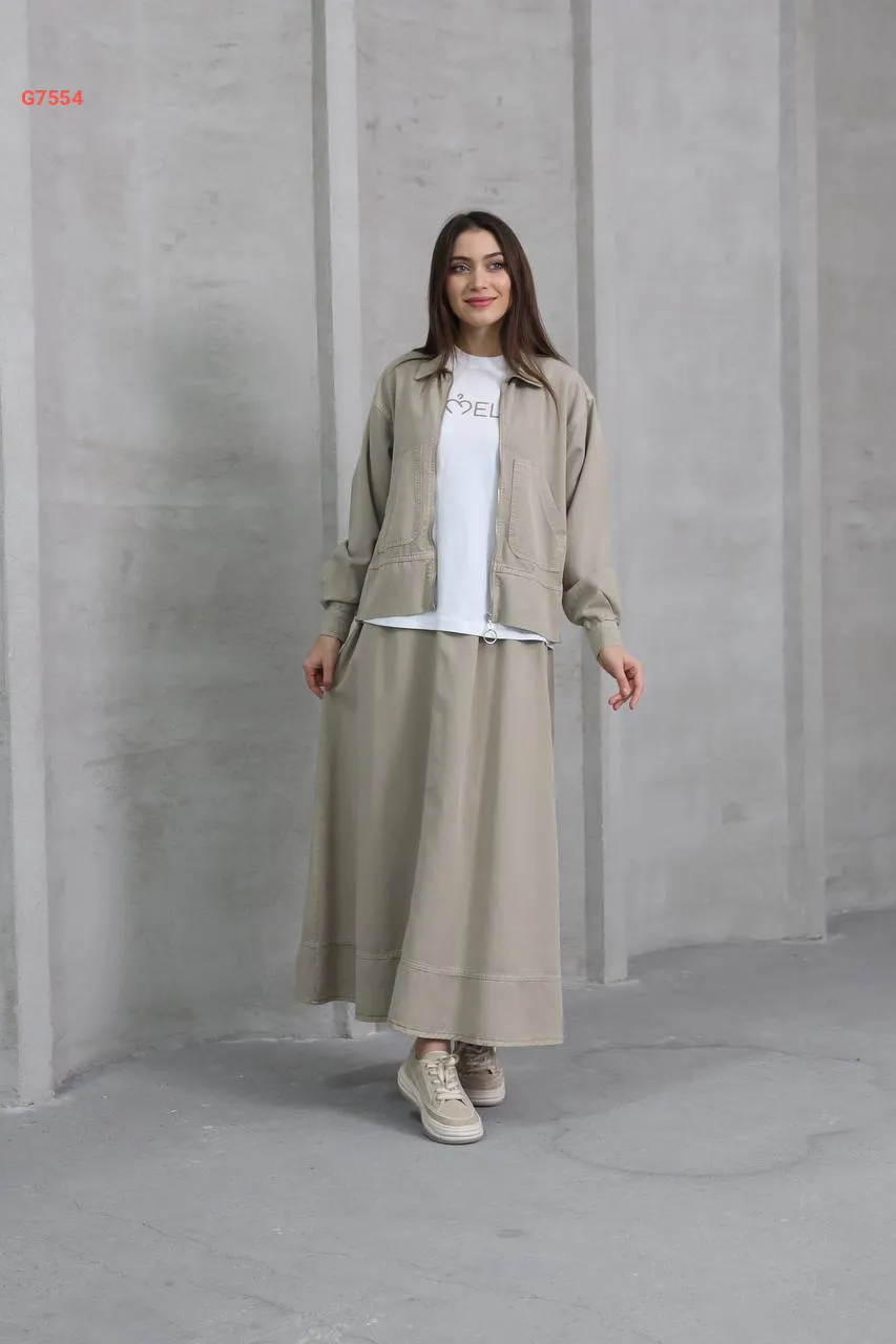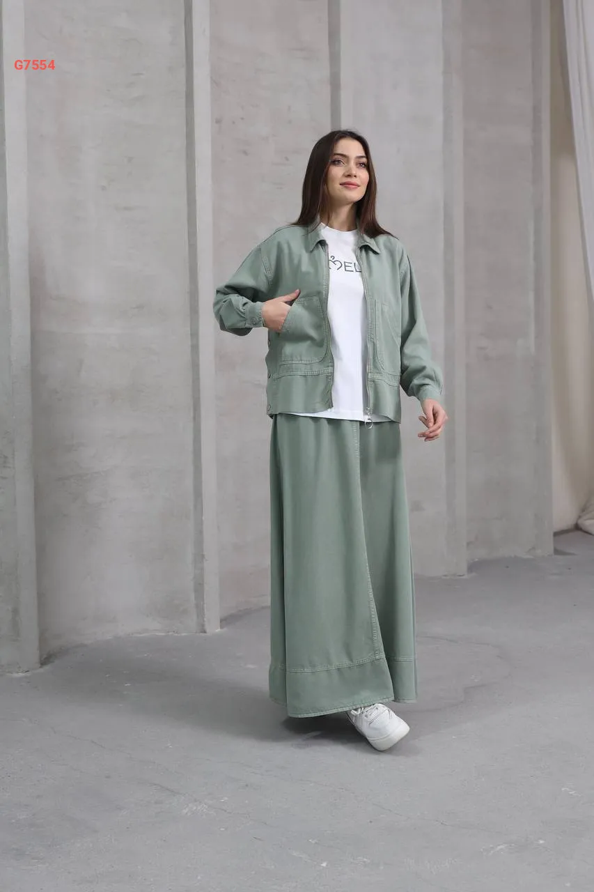 طقم تنورة، بسحاب وجيب ، مع ازرار من الجانب