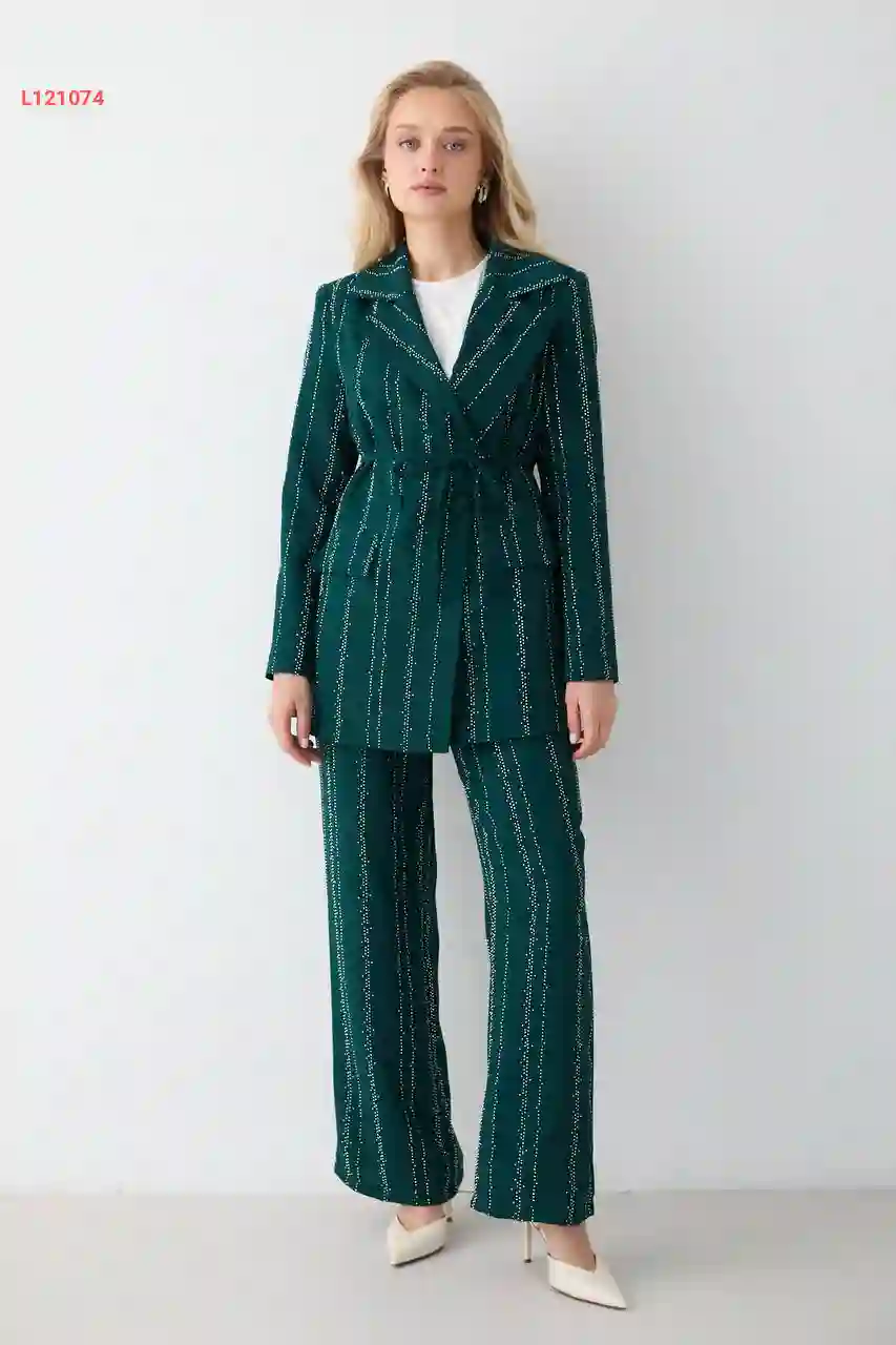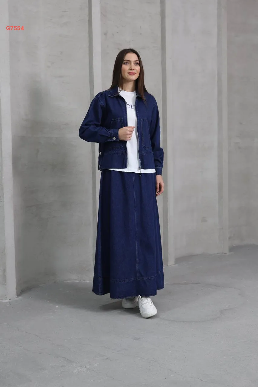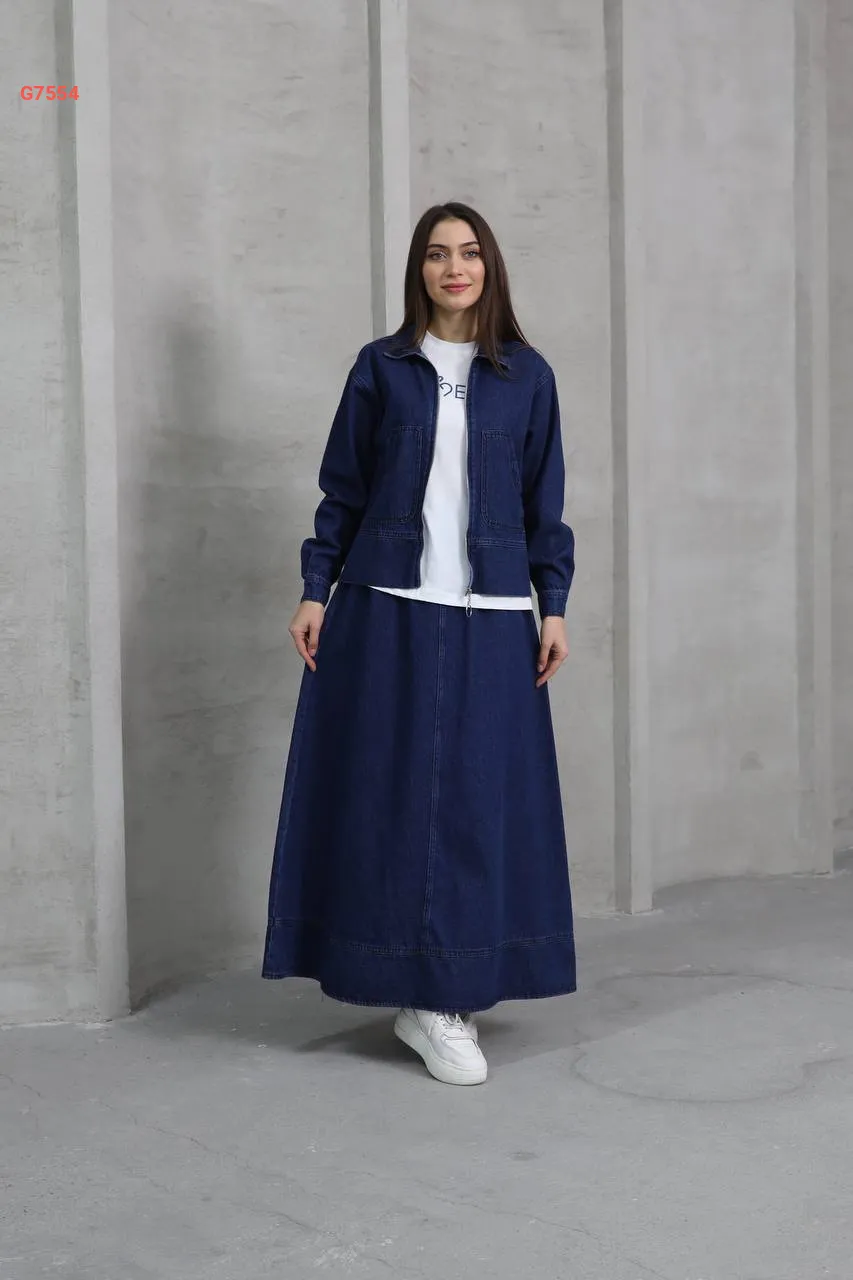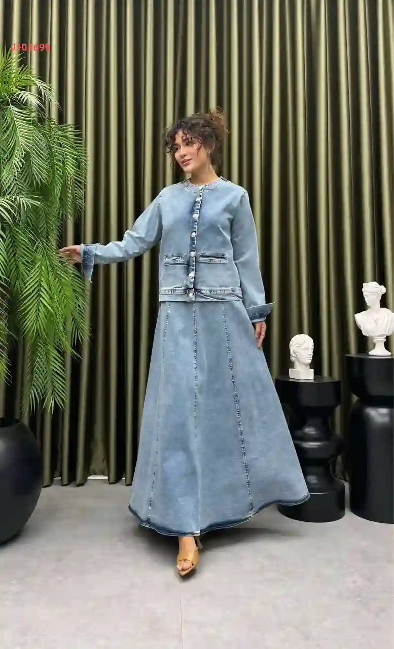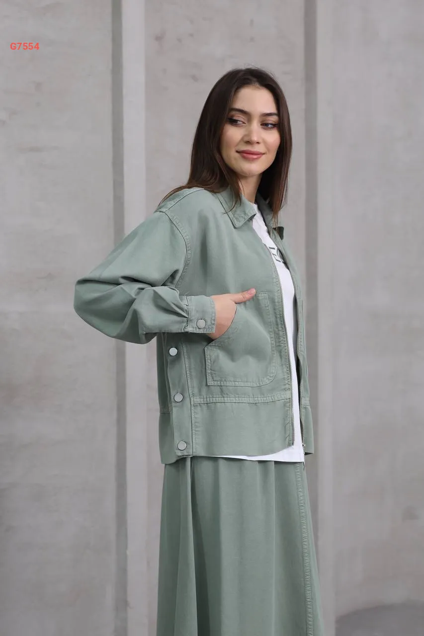 طقم تنورة، بسحاب وجيب ، مع ازرار من الجانب