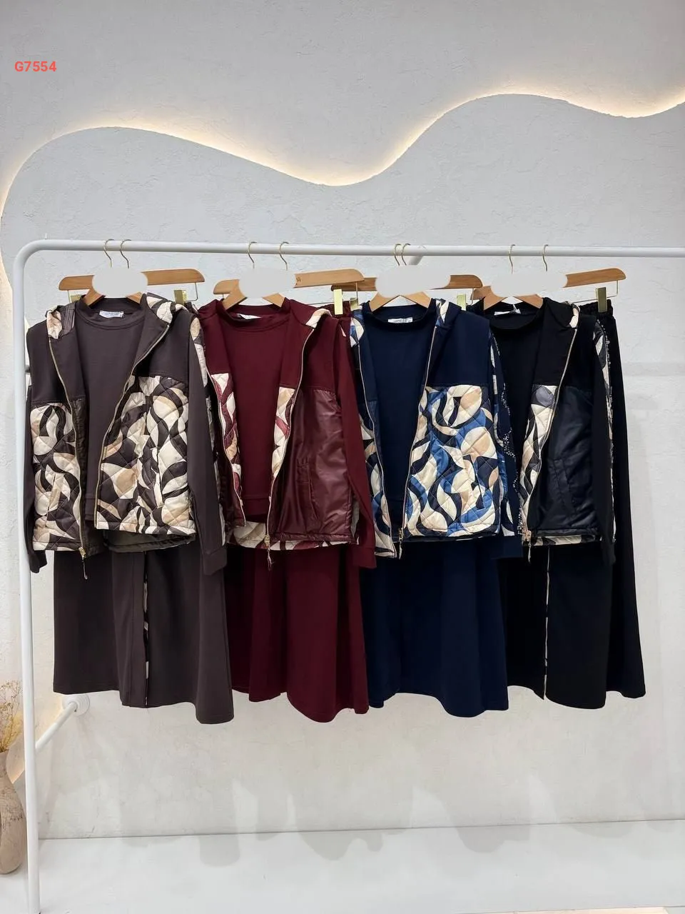 طقم تنورة 3 قطع مع فيست ، وجيب