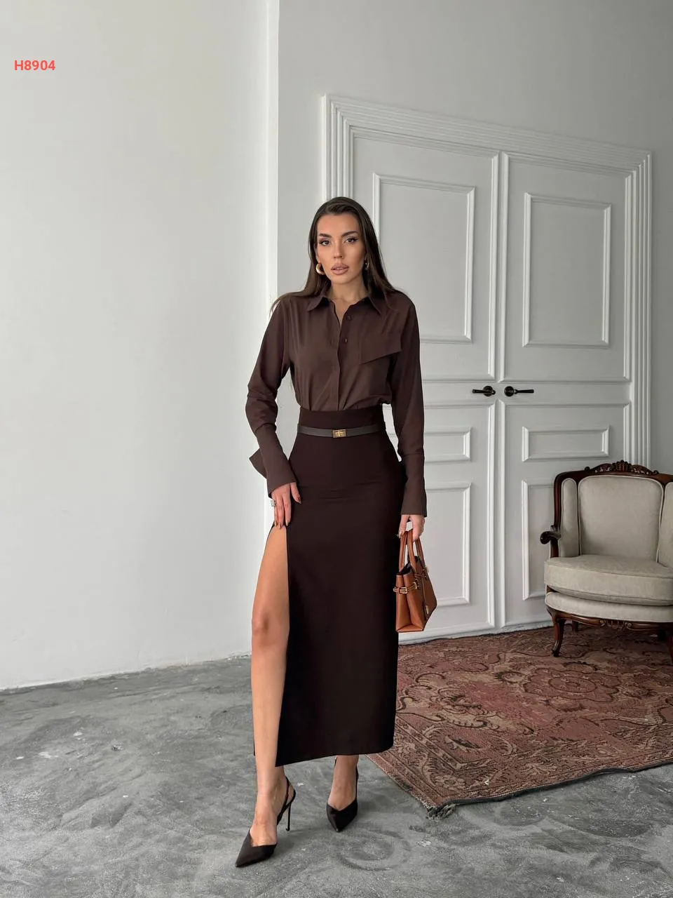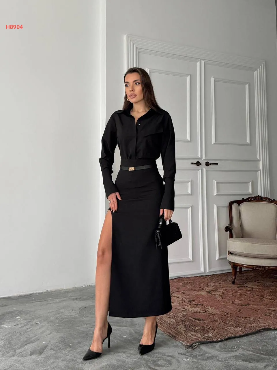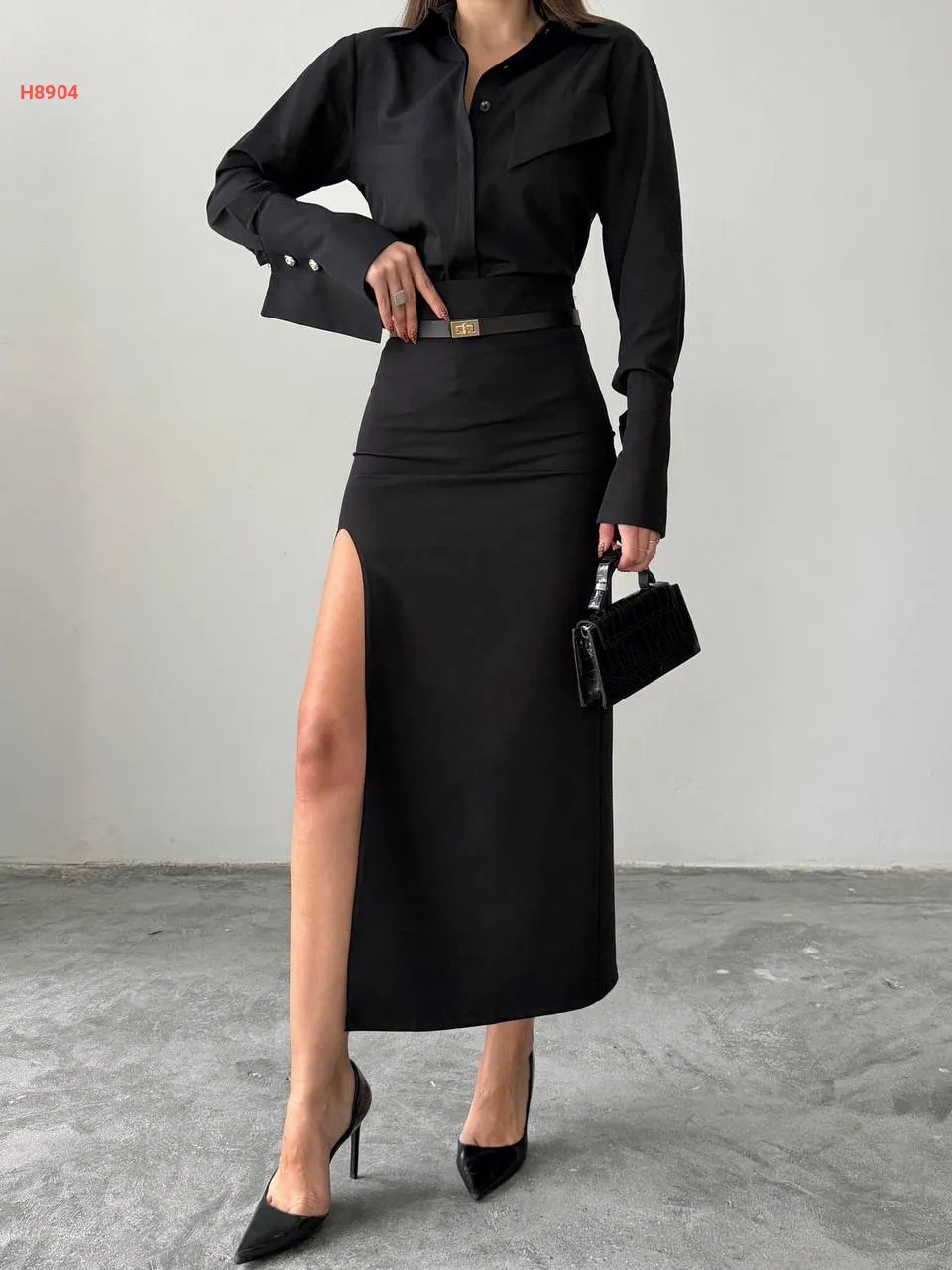 طقم تنورة بفتحة مع قميص بوبلين