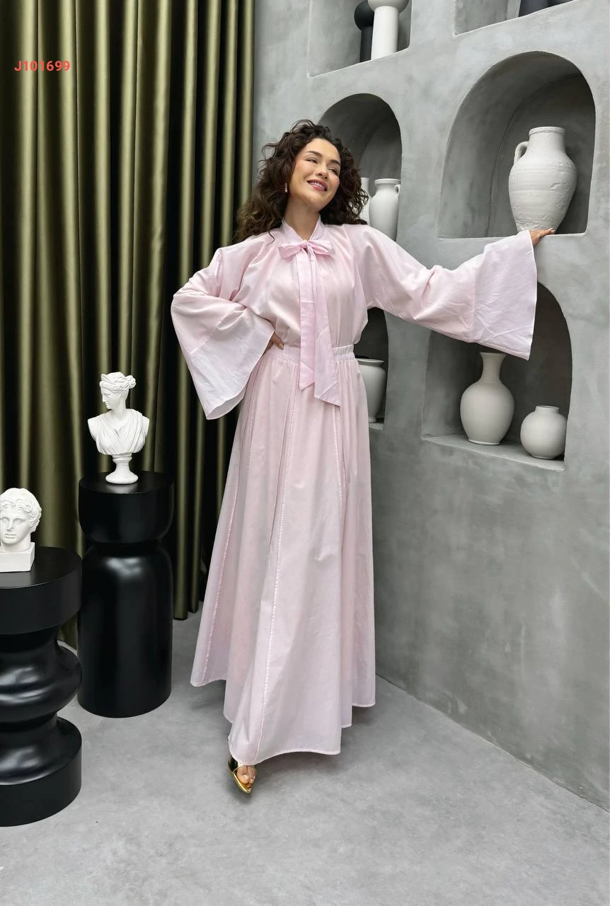 طقم تنورة فوال وبلوزة بربطة عنق