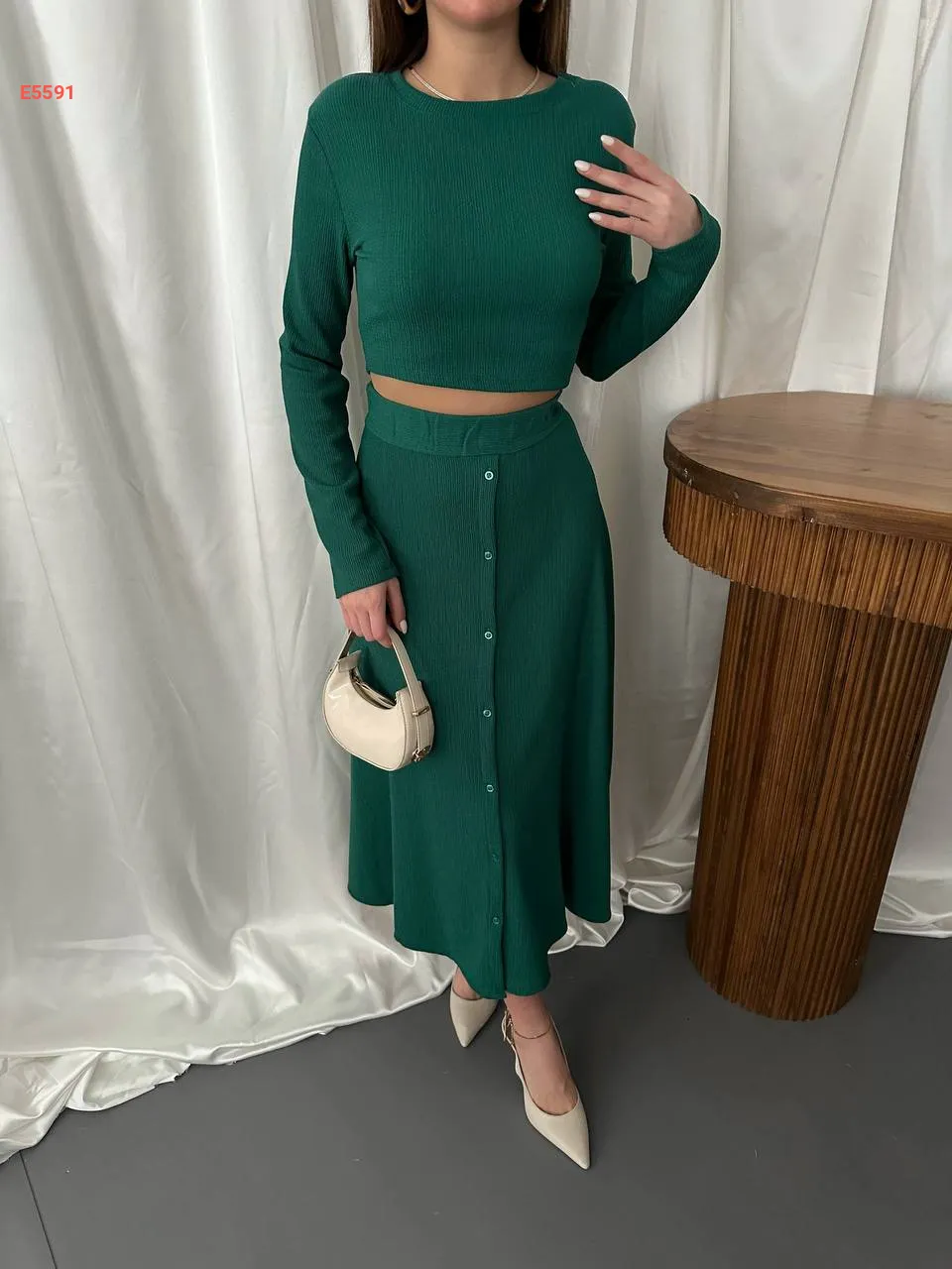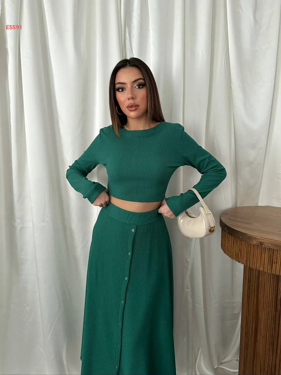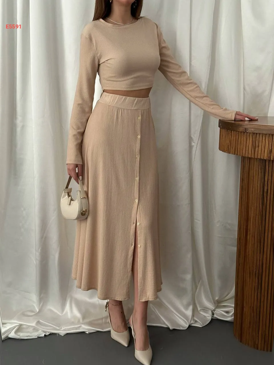 طقم تنورة بأزرار مع توب