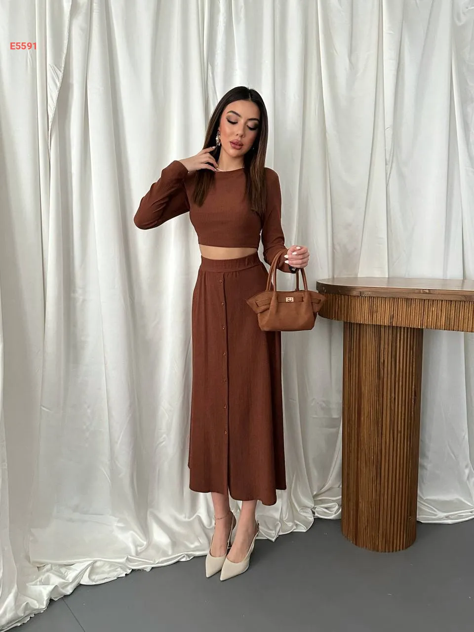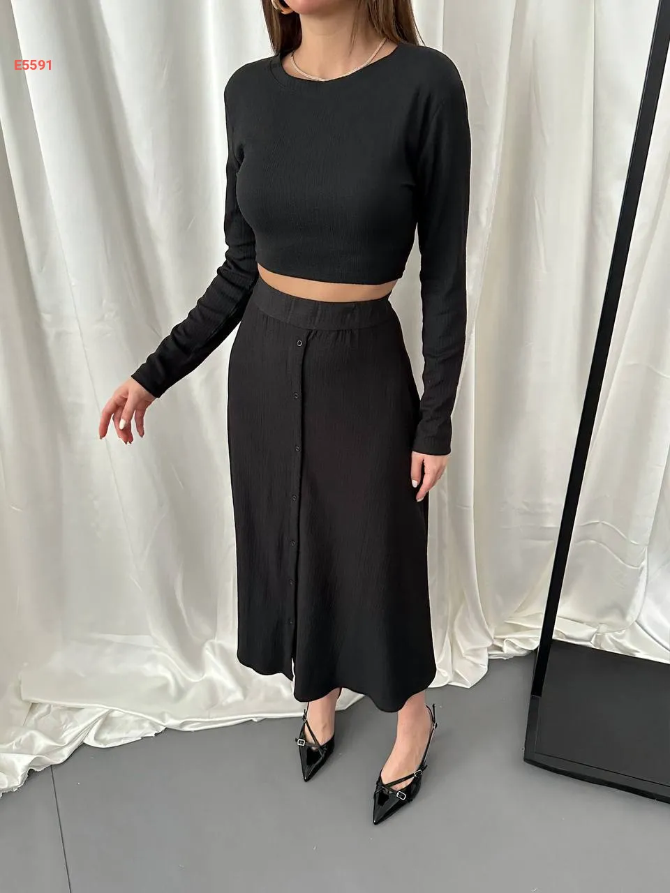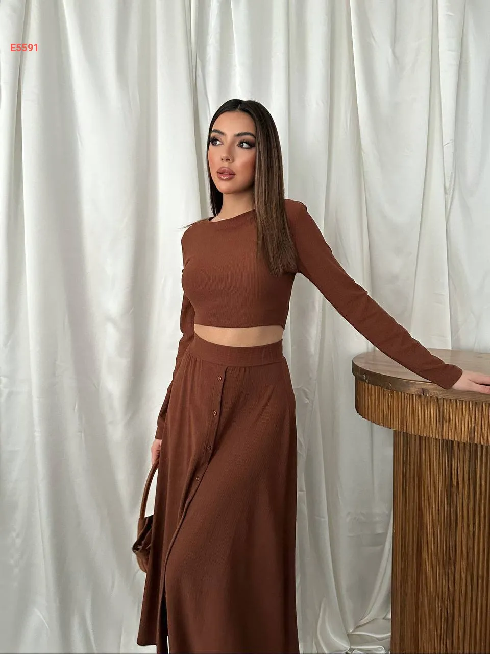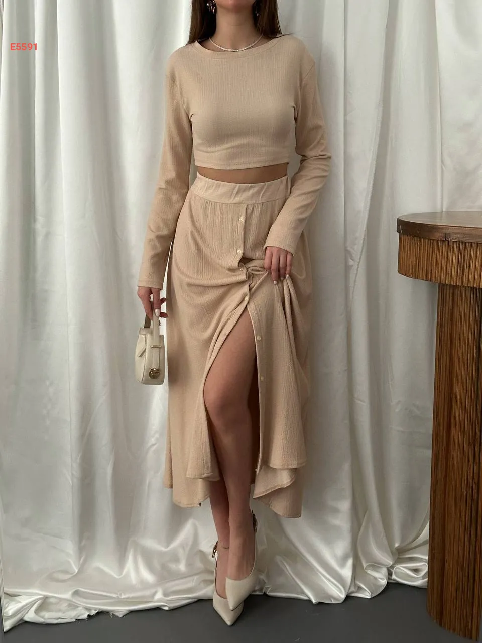 طقم تنورة بأزرار مع توب