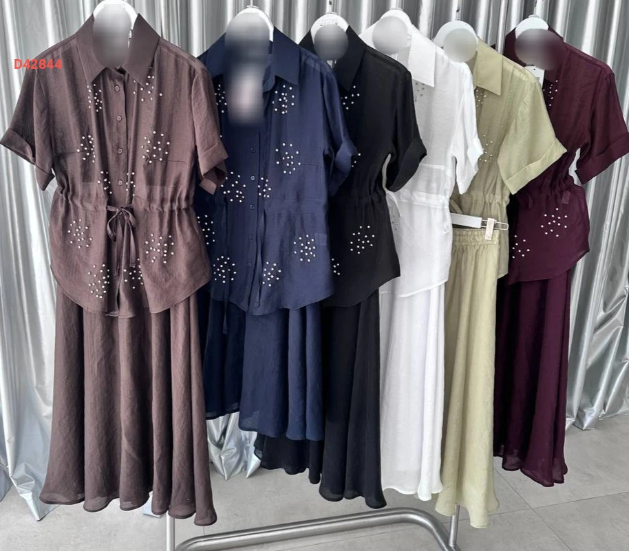طقم تنورة مع قميص صيفي مطرز