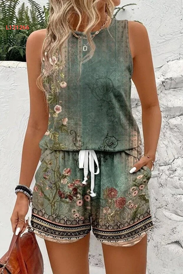 استمتعي بإطلالة مبهجة مع طقم Mossta الكولسوز ذو الطباعة الزهرية، الذي يجمع بين الأناقة والراحة بفضل تصميمه المصنوع من قماش السوبرم الناعم. يأتي الطقم الأخضر الجذاب مع بلوزة عصرية وشورت مريح، مما يجعله الخيار المثالي لأيام الصيف المشمسة أو النزهات مع الأصدقاء. ارتدي هذا الطقم وتألقي بأسلوبك الفريد!