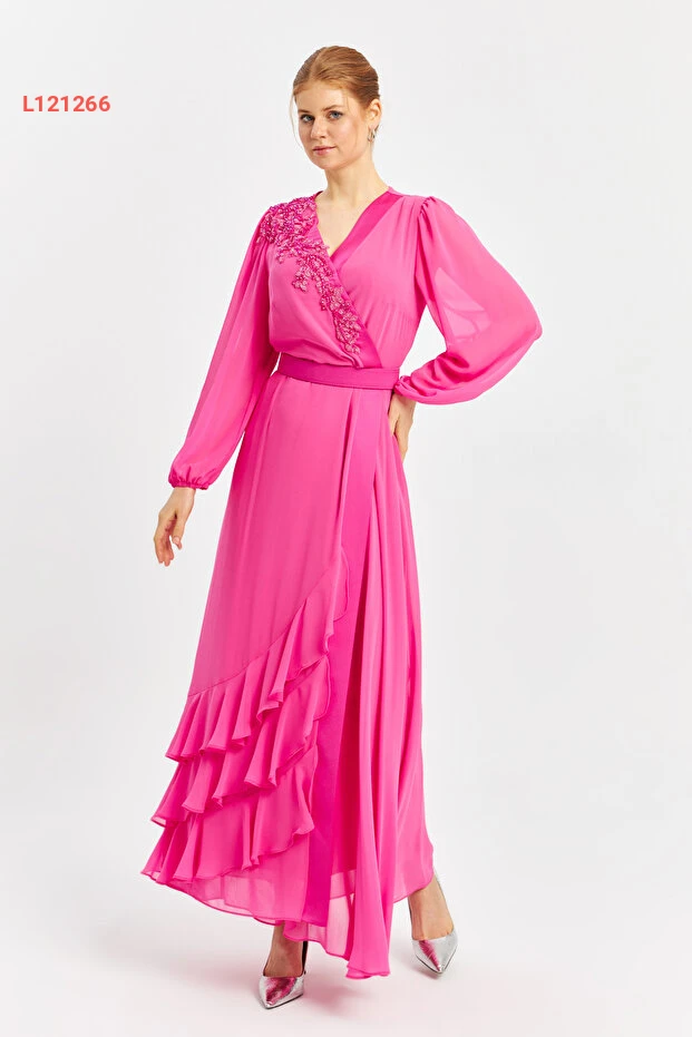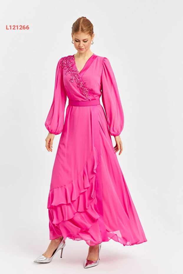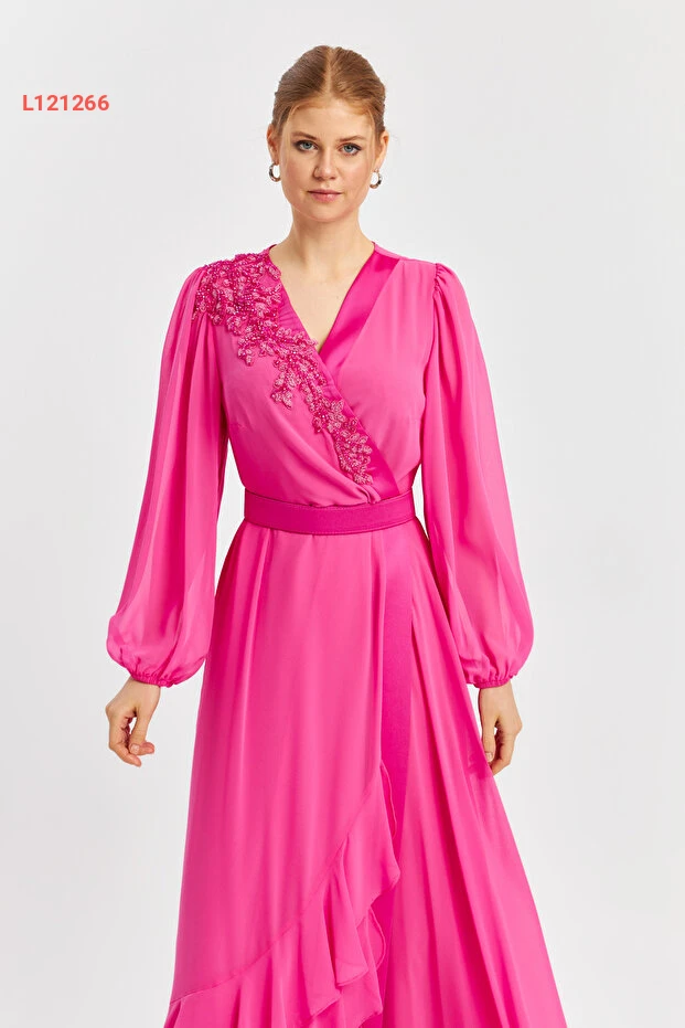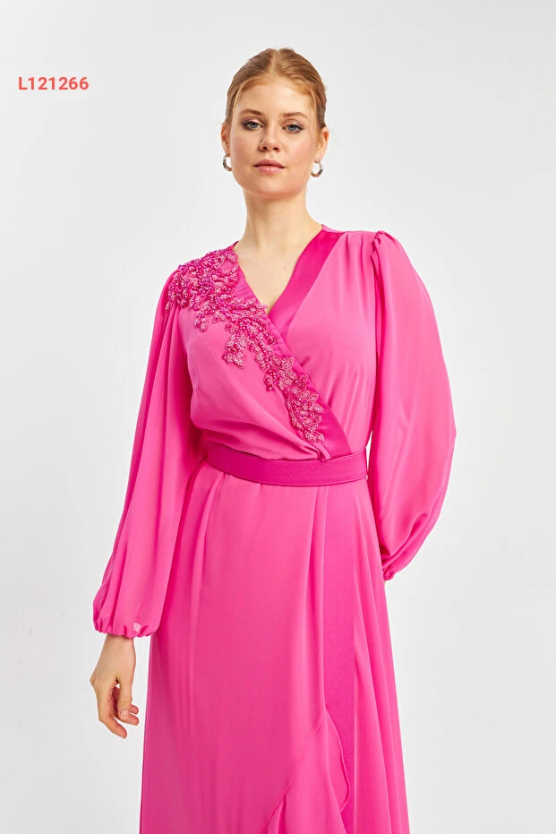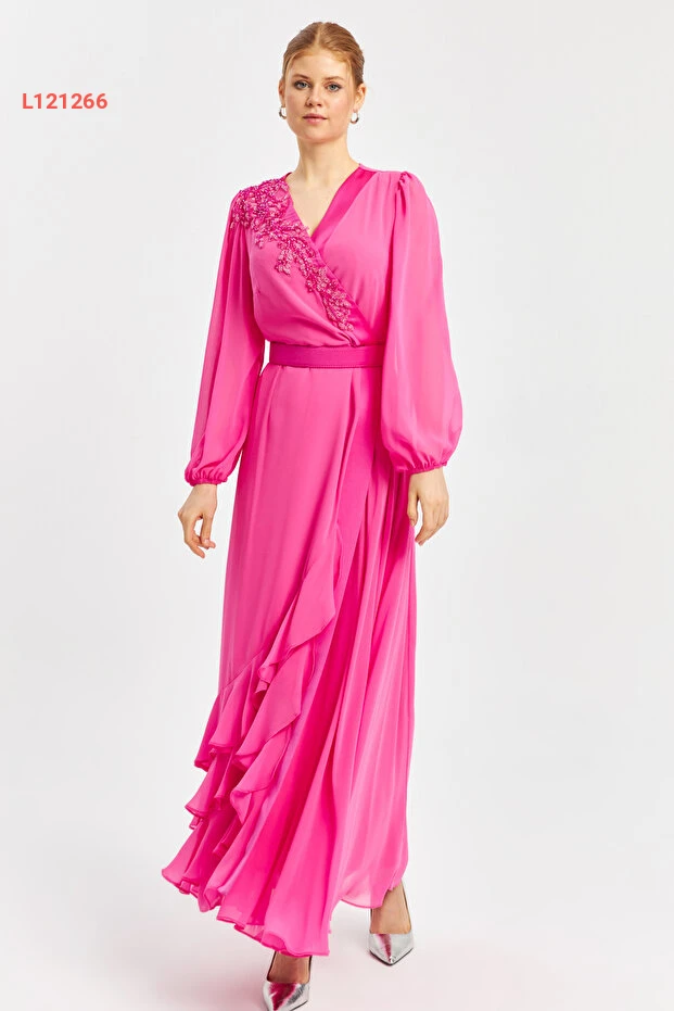 استمتعي بأناقة ساحرة مع فستان الشيفون الطويل ذو الياقة المكشوفة والتفاصيل المطرزة وحزام الخصر. تصميمه الأنيق يضيف لمسة من الفخامة، مما يجعله الخيار المثالي للمناسبات الخاصة. اجعلي إطلالتك مميزة مع هذا الفستان الذي يجمع بين الراحة والتميز.