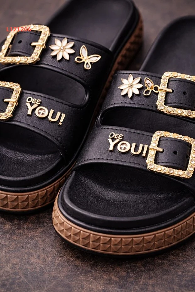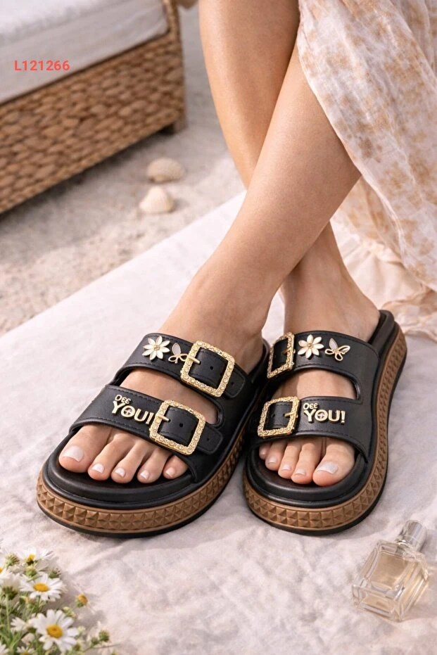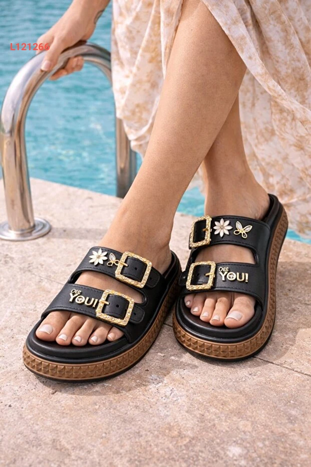 صندل "سليب كات" العالي القاعدة بتفاصيل ذهبية، مثالي للشاطئ وحمام السباحة
