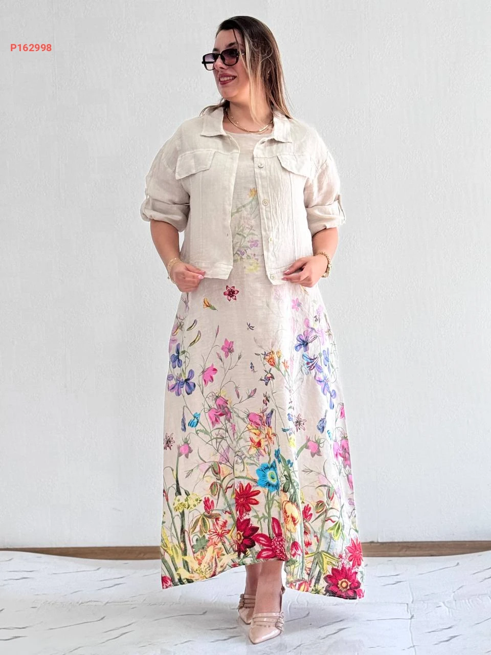 فستان "ماكسي" صيفي ناعم بنقوش زهور ملونة مبهجة