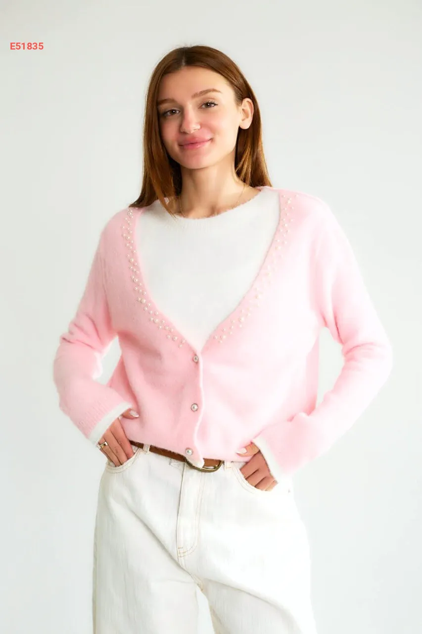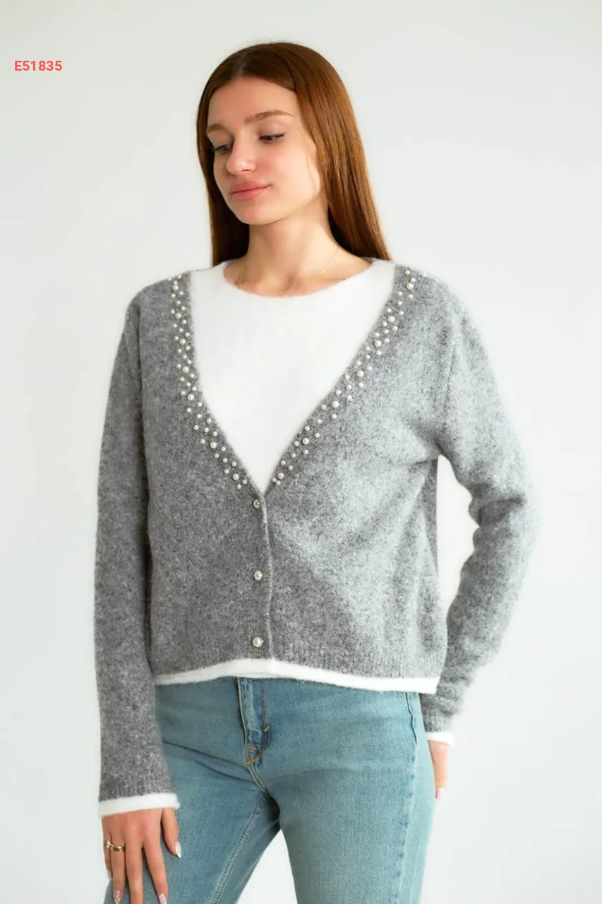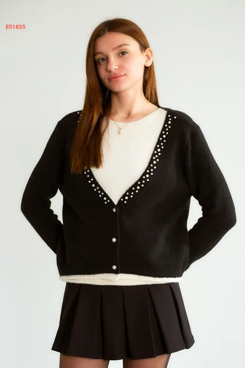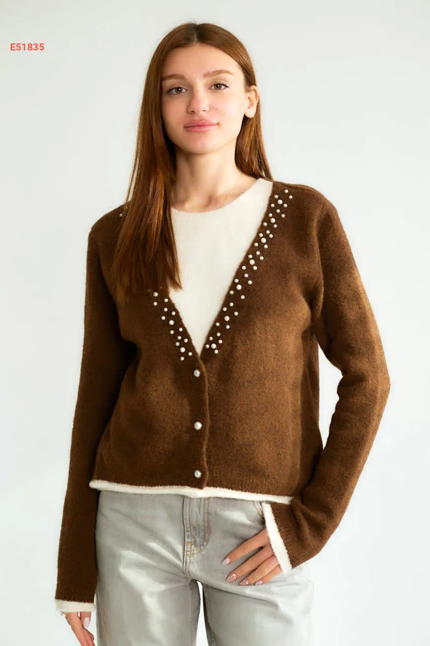 جاكيت صوف ناعم مشكوك لولو على الياقة